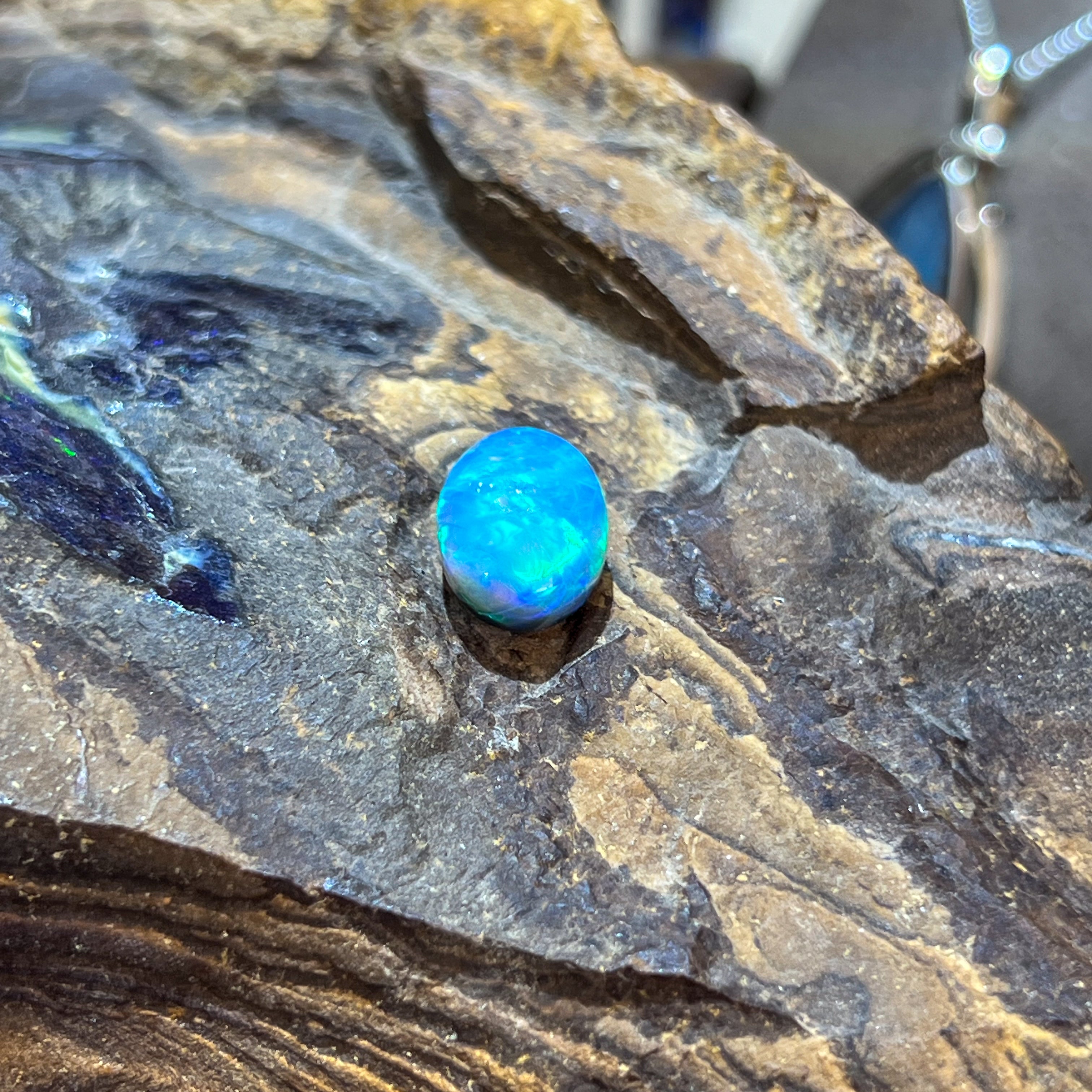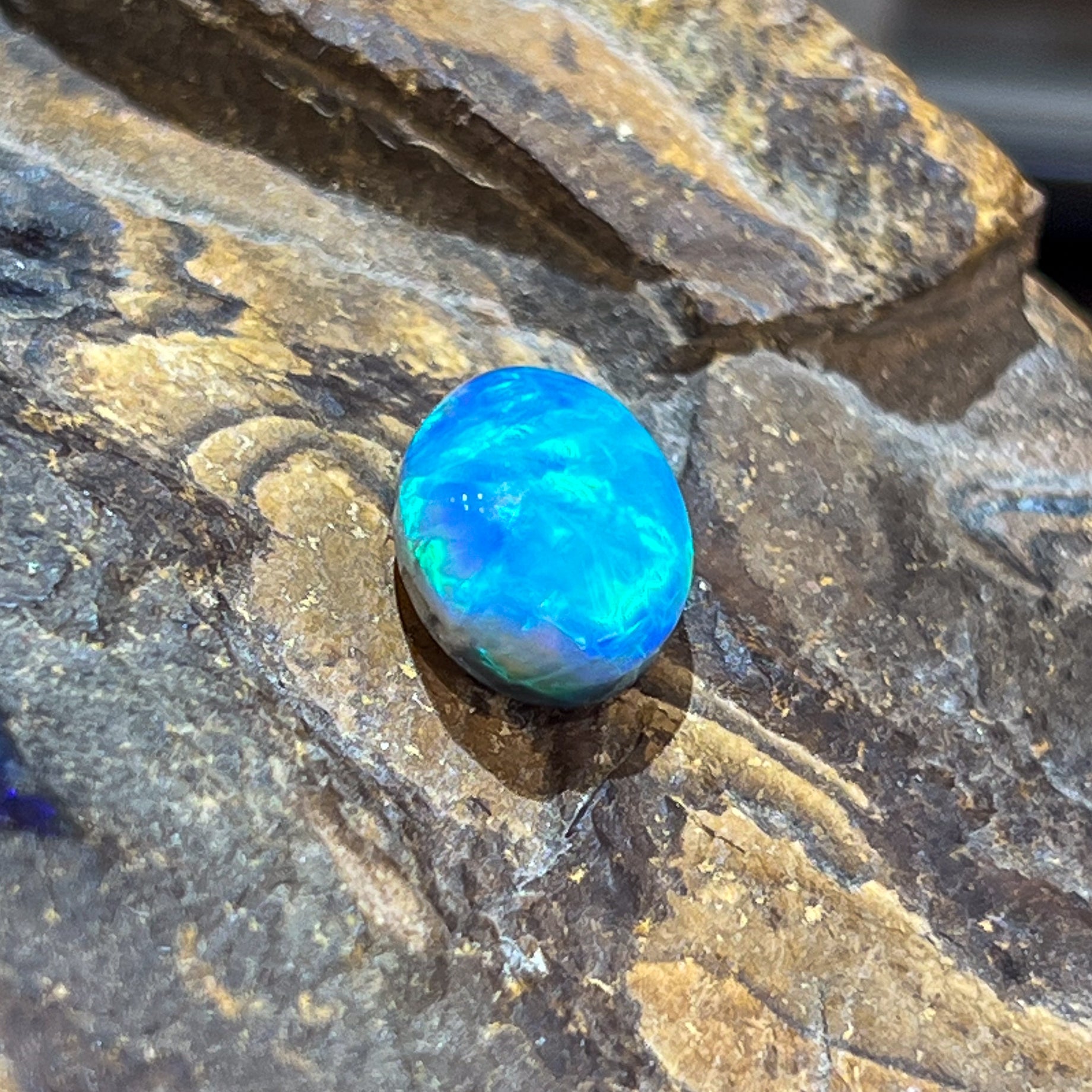 Blue fire opals usually have small silica spheres. But the blue fire opals in Australia, the silica spheres are larger, resulting in their warm colours. Blue fire opals form if an opal has both small crystalline and large silica spheres.