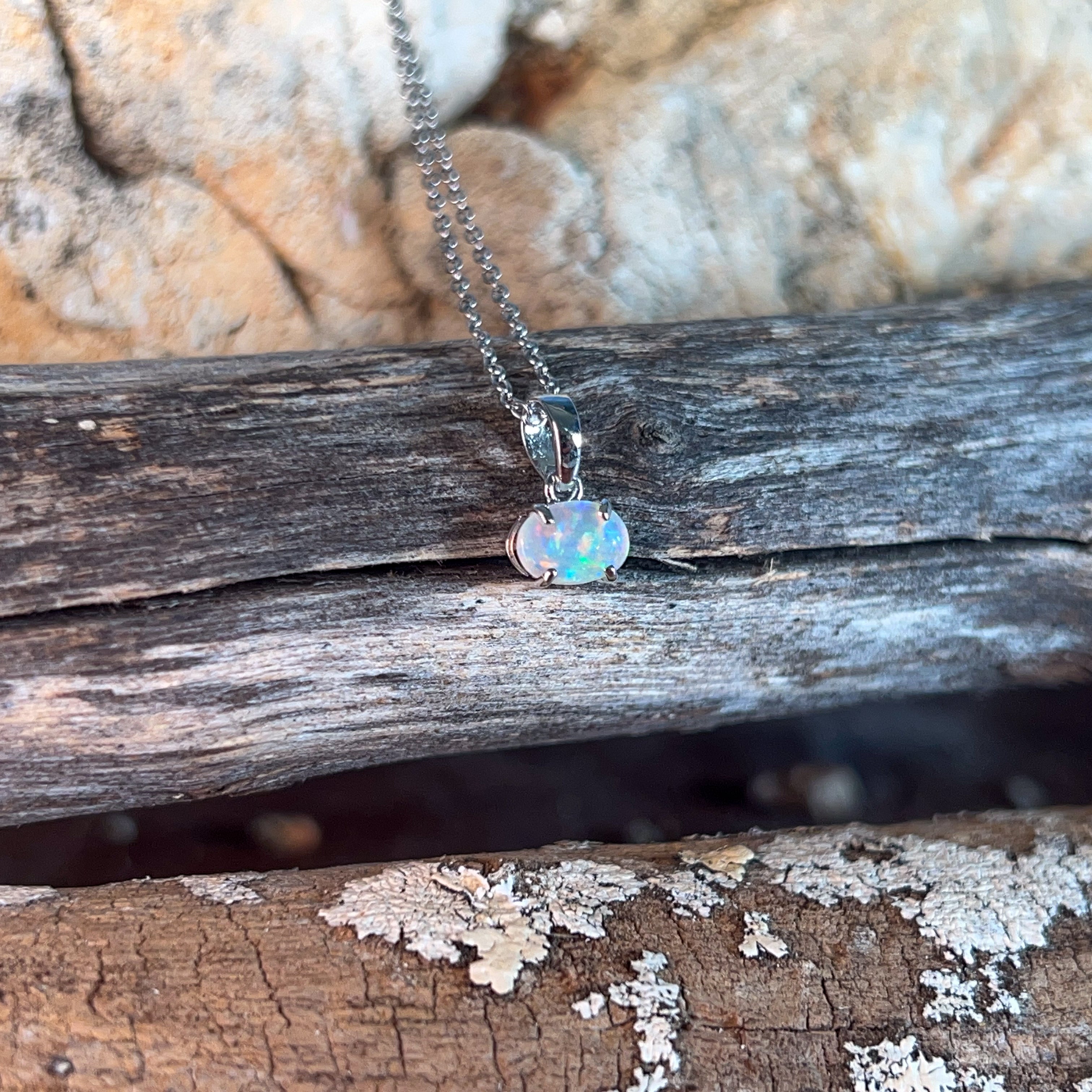 One 9kt White Gold claw set Opal classic pendant