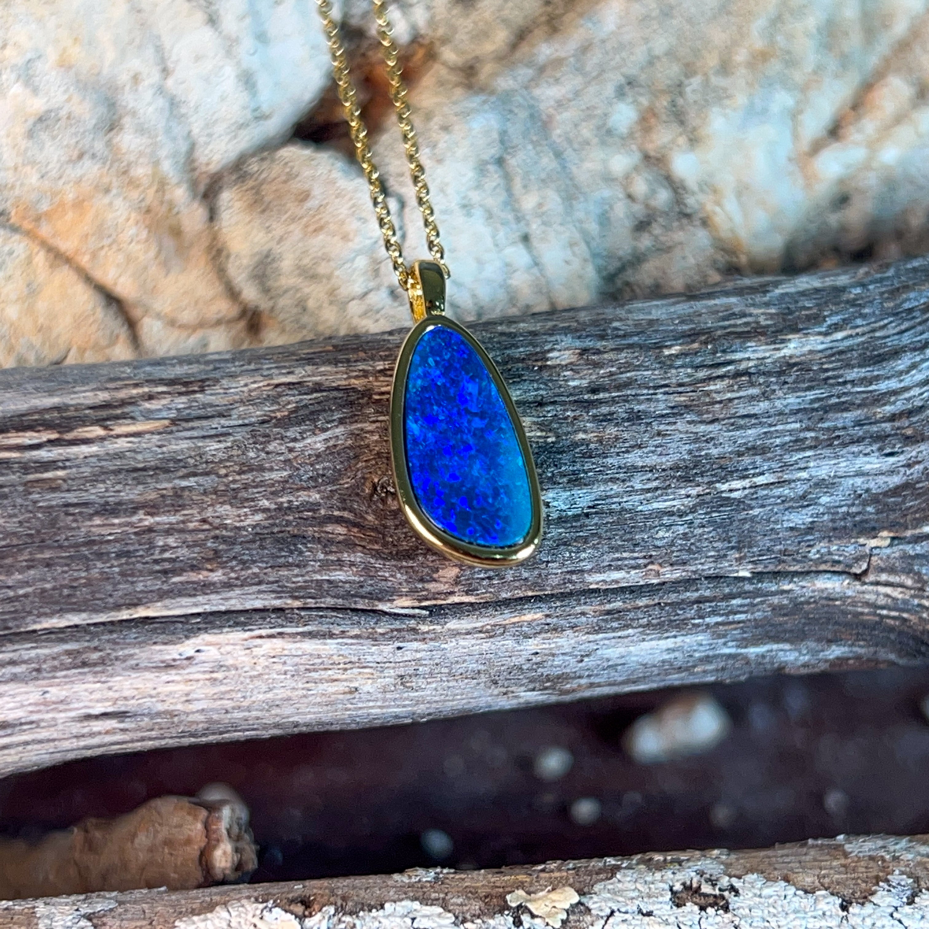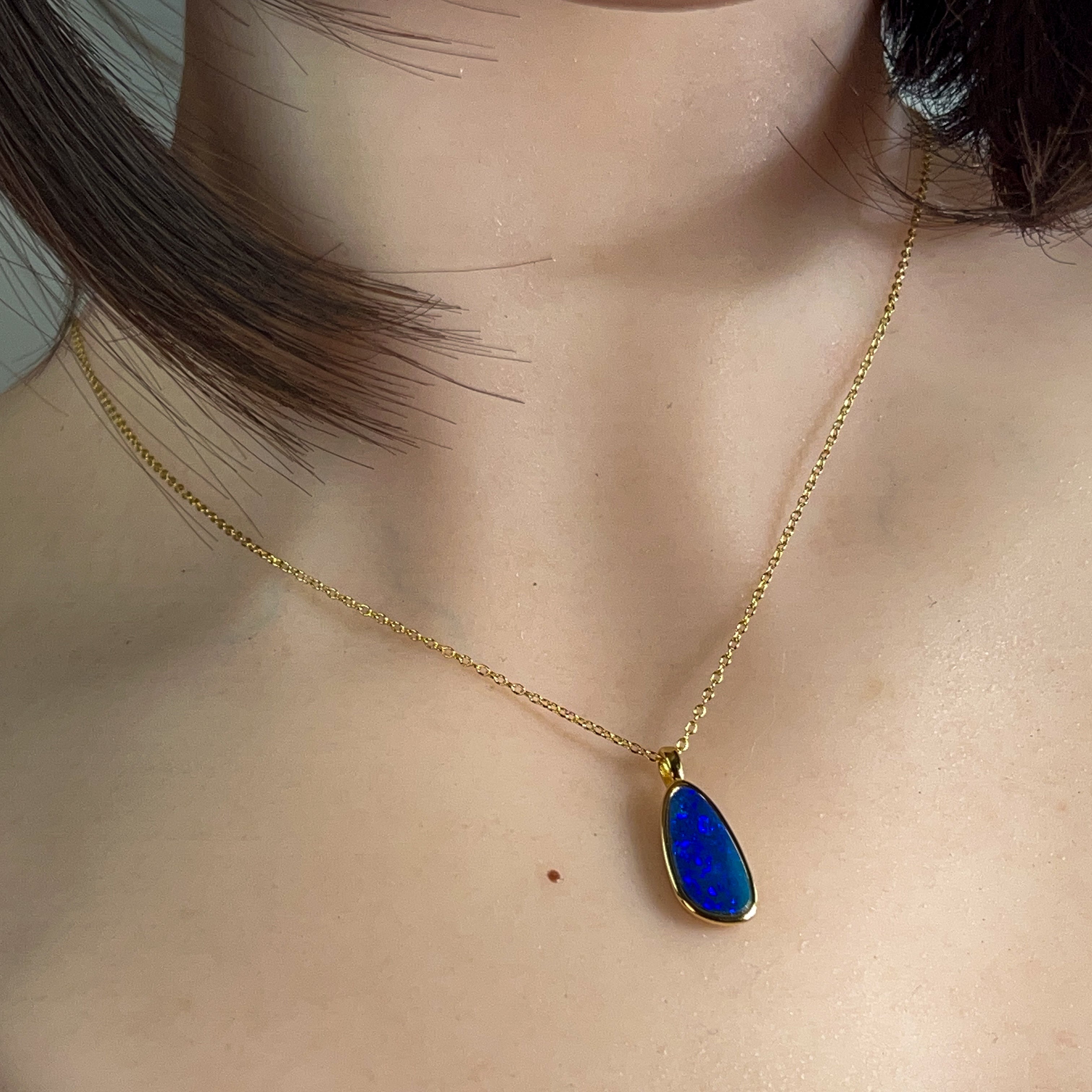 Gold plated sterling silver opal doublet 17x9mm pendant