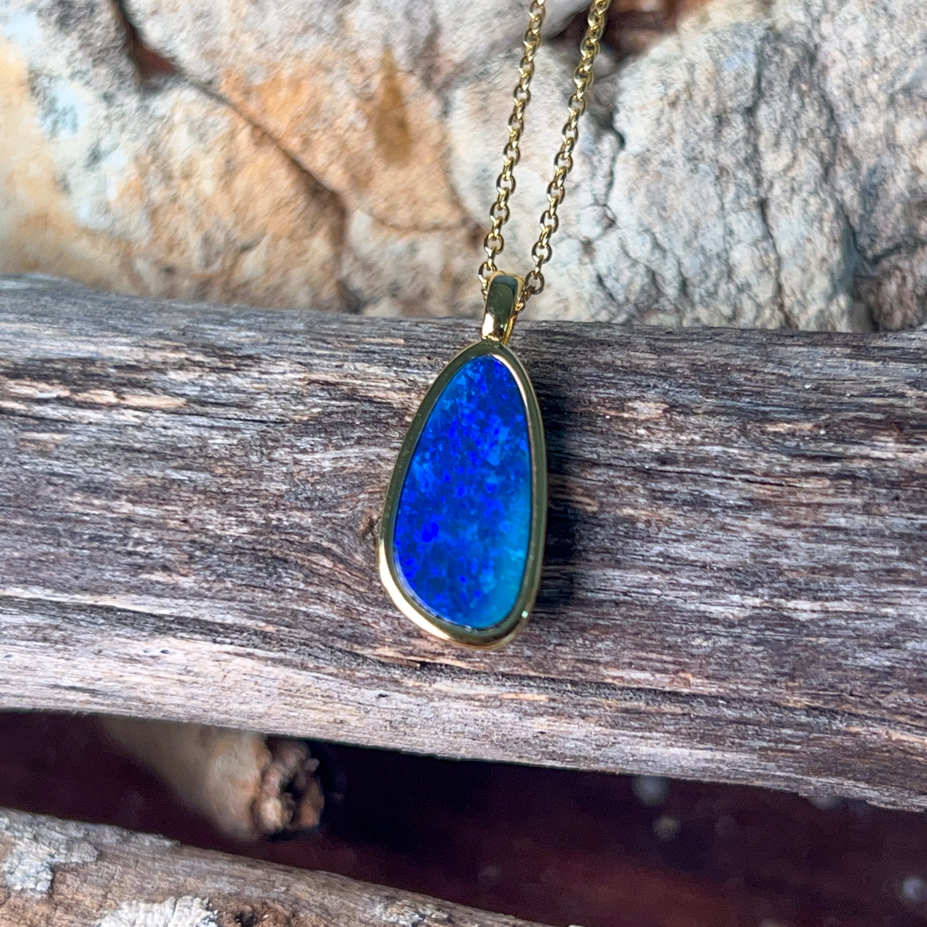 Elevate your jewellery collection with this stunning gold plated sterling silver opal doublet pendant. Featuring a captivating 17x9mm opal doublet, this piece combines the mesmerising play-of-colour that opals are renowned for with the timeless elegance of sterling silver and luxurious gold plating. The doublet construction offers exceptional brilliance and depth, making it an eye-catching statement piece that works beautifully as a standalone pendant or layered with other necklaces. Perfect for those who appreciate fine craftsmanship and the natural beauty of genuine gemstones, this pendant brings sophistication and colour to any outfit. Whether you're treating yourself or searching for a meaningful gift, this versatile design transcends occasions and complements both casual and formal wear.