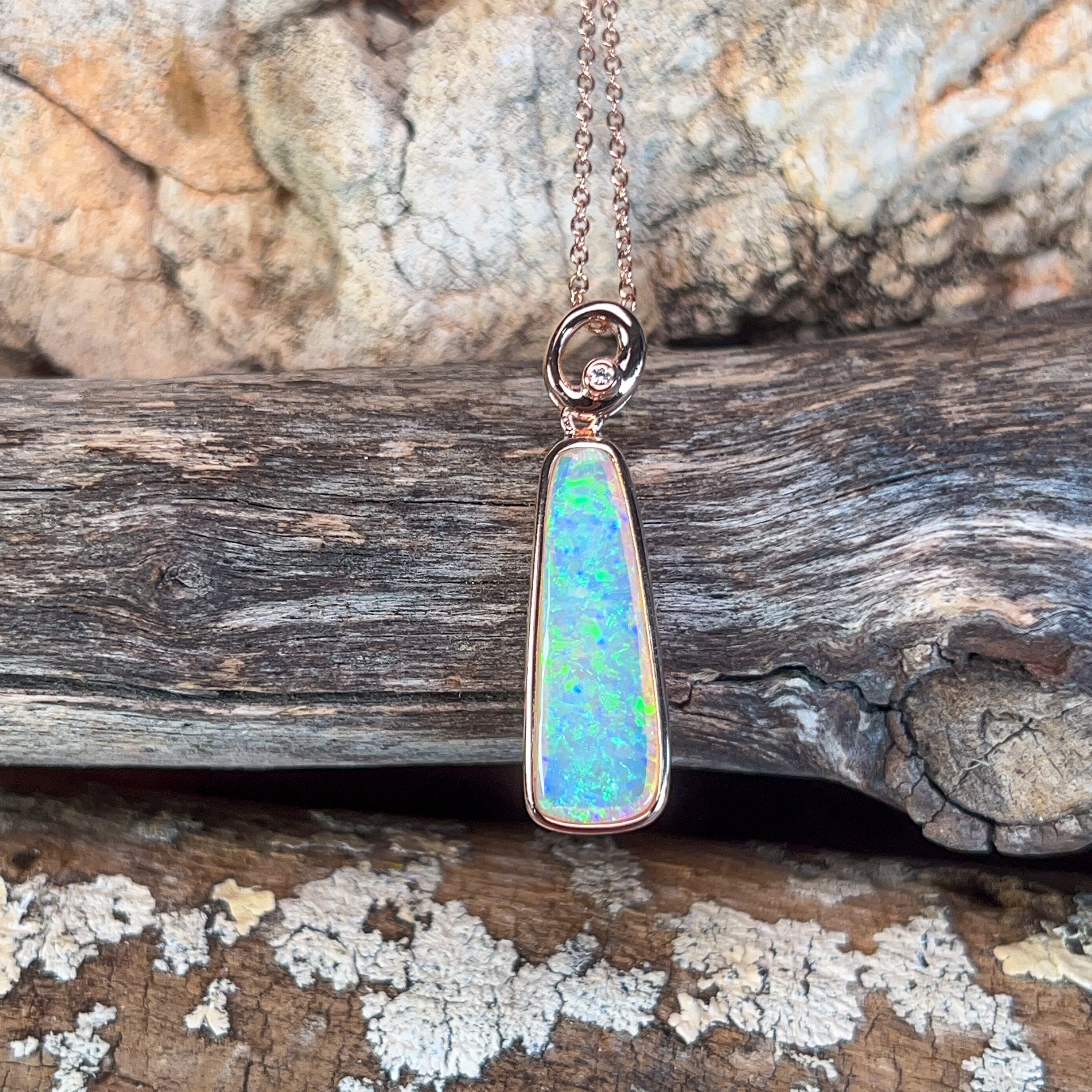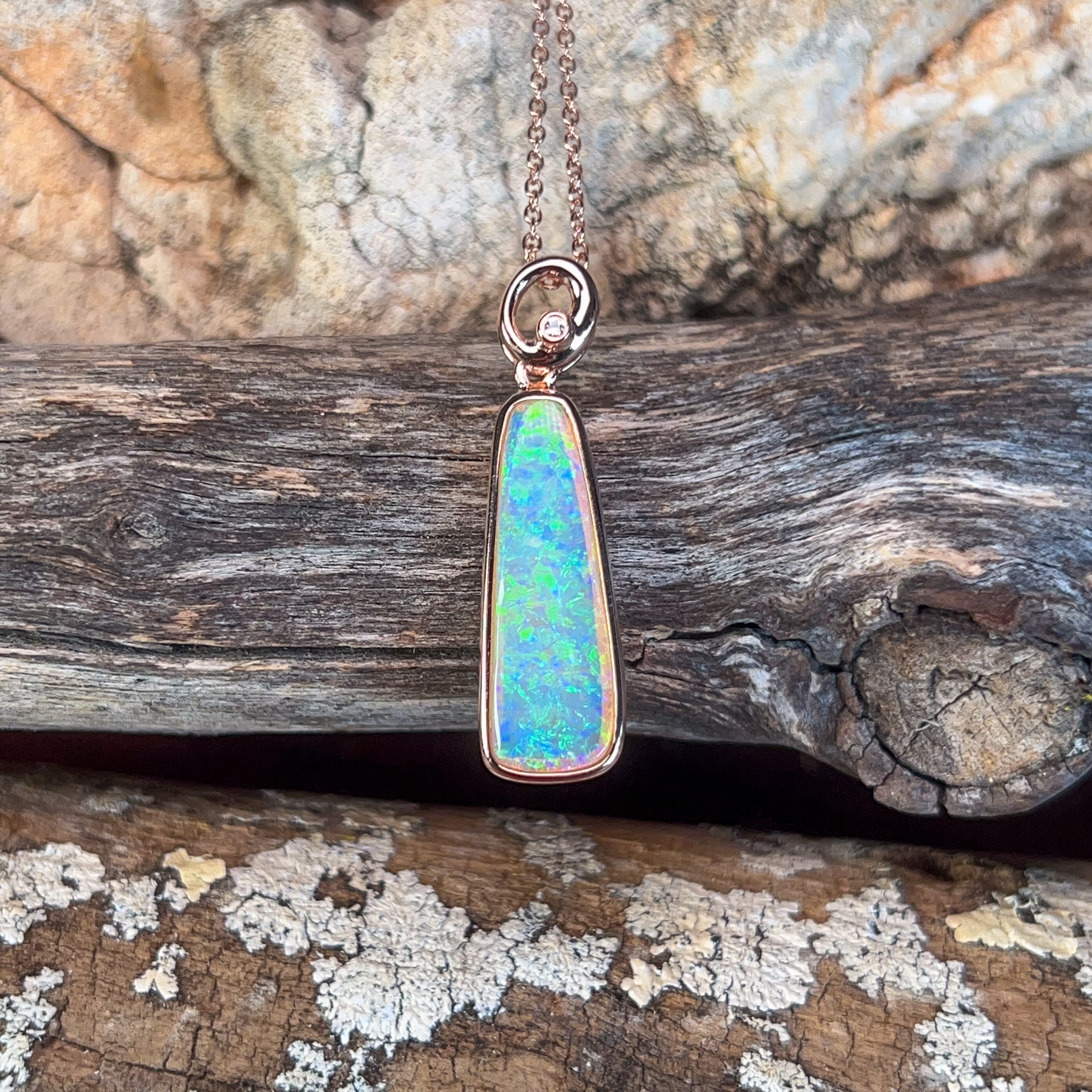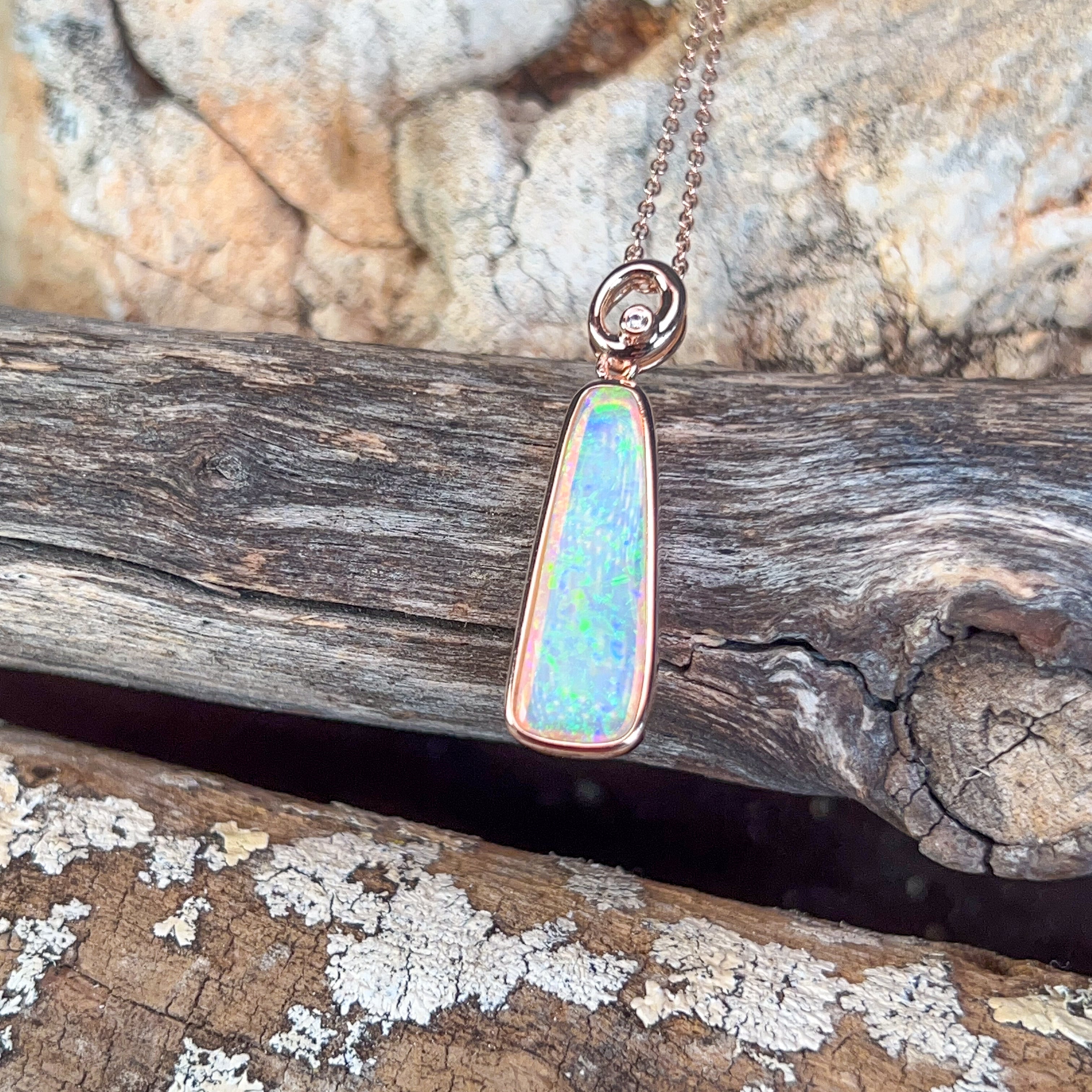 Rose Gold plated Silver 2.45ct Crystal Opal long pendant