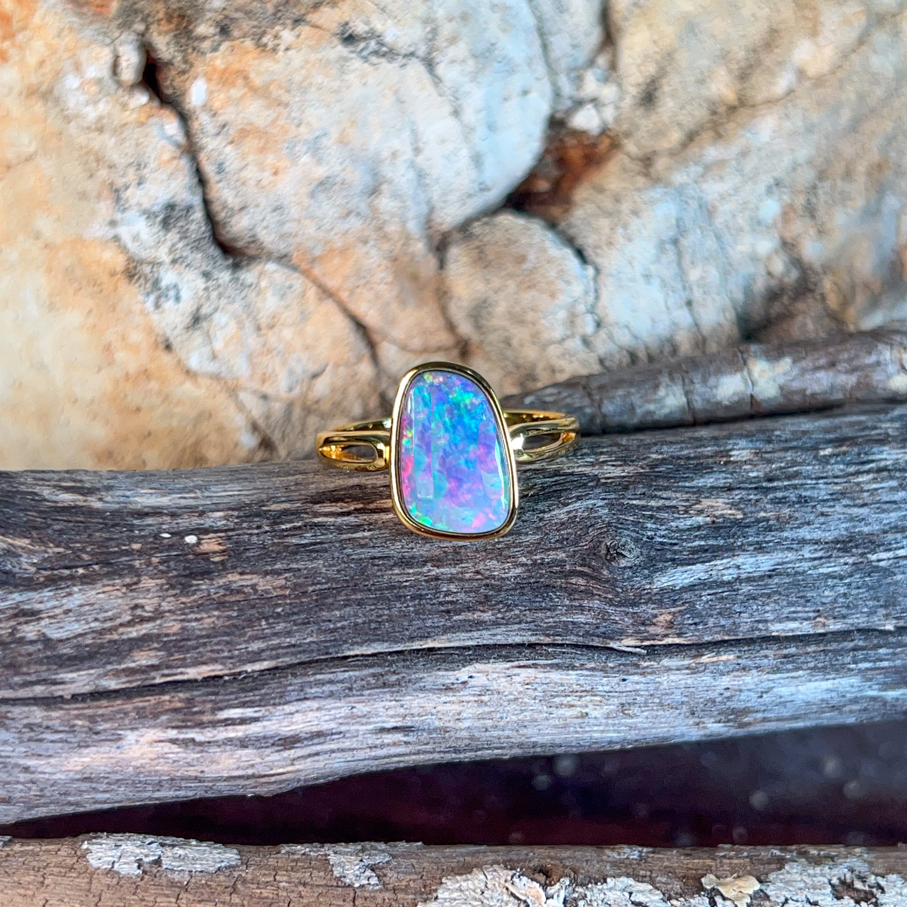 One Gold Plated Sterling Silver bezel set Opal ring