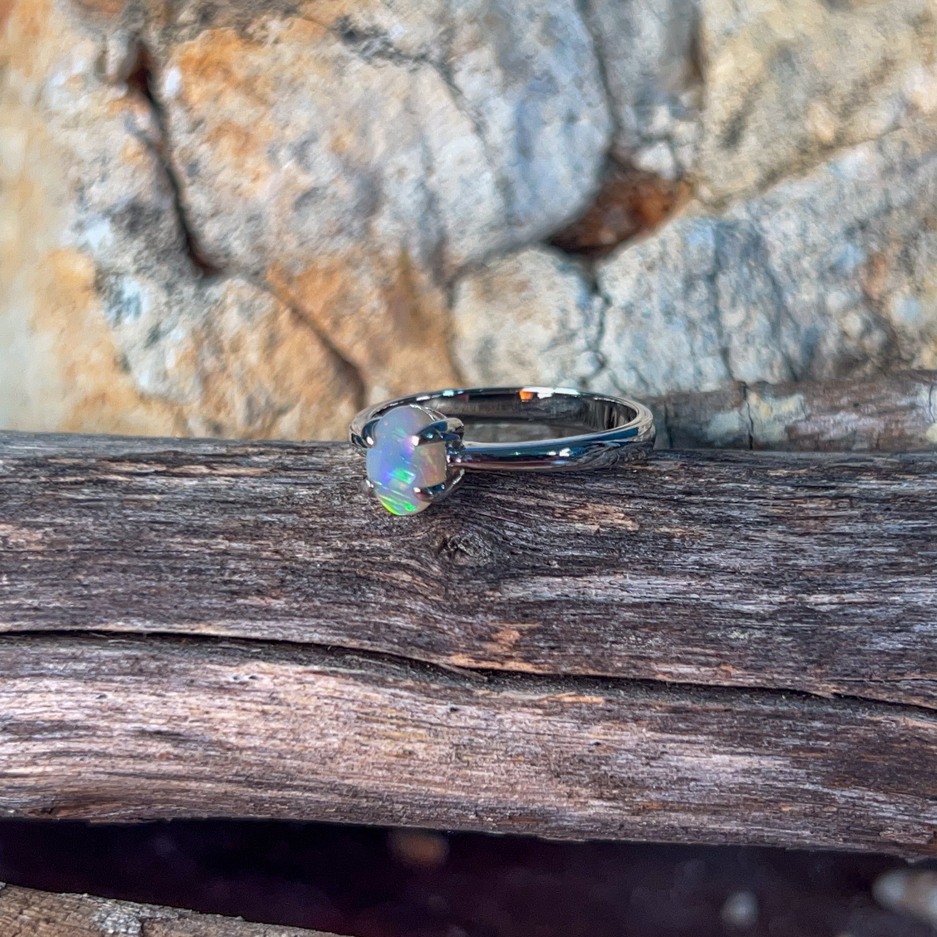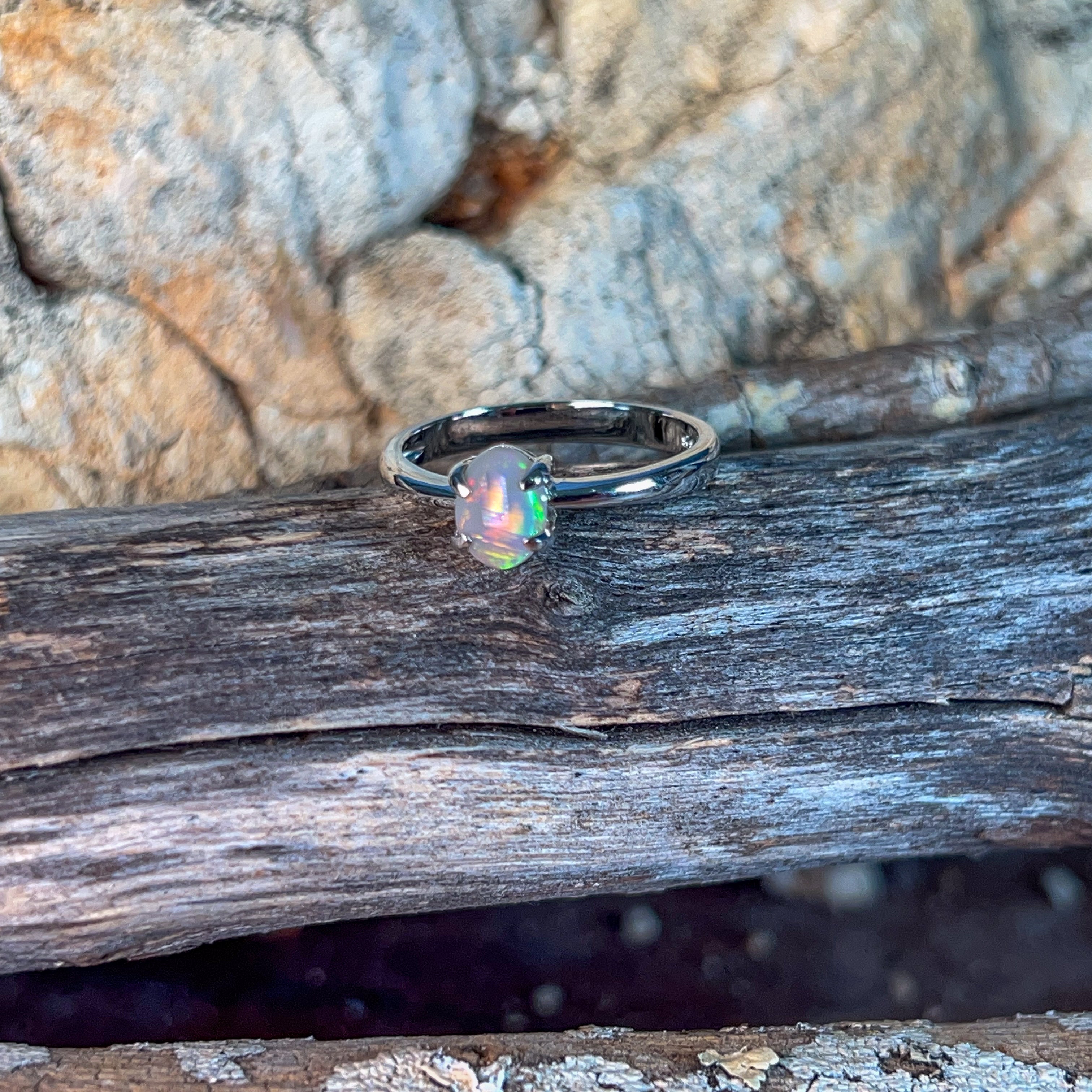 Elevate your everyday elegance with this exquisite sterling silver solitaire ring, showcasing a stunning 0.55ct black opal at its heart. The delicate design lets the opal's mesmerizing play-of-colour take centre stage, while the refined silver setting ensures timeless sophistication. Perfect for those who appreciate understated luxury, this dainty piece transitions effortlessly from day to night, making it an investment in refined style that you'll treasure for years to come.