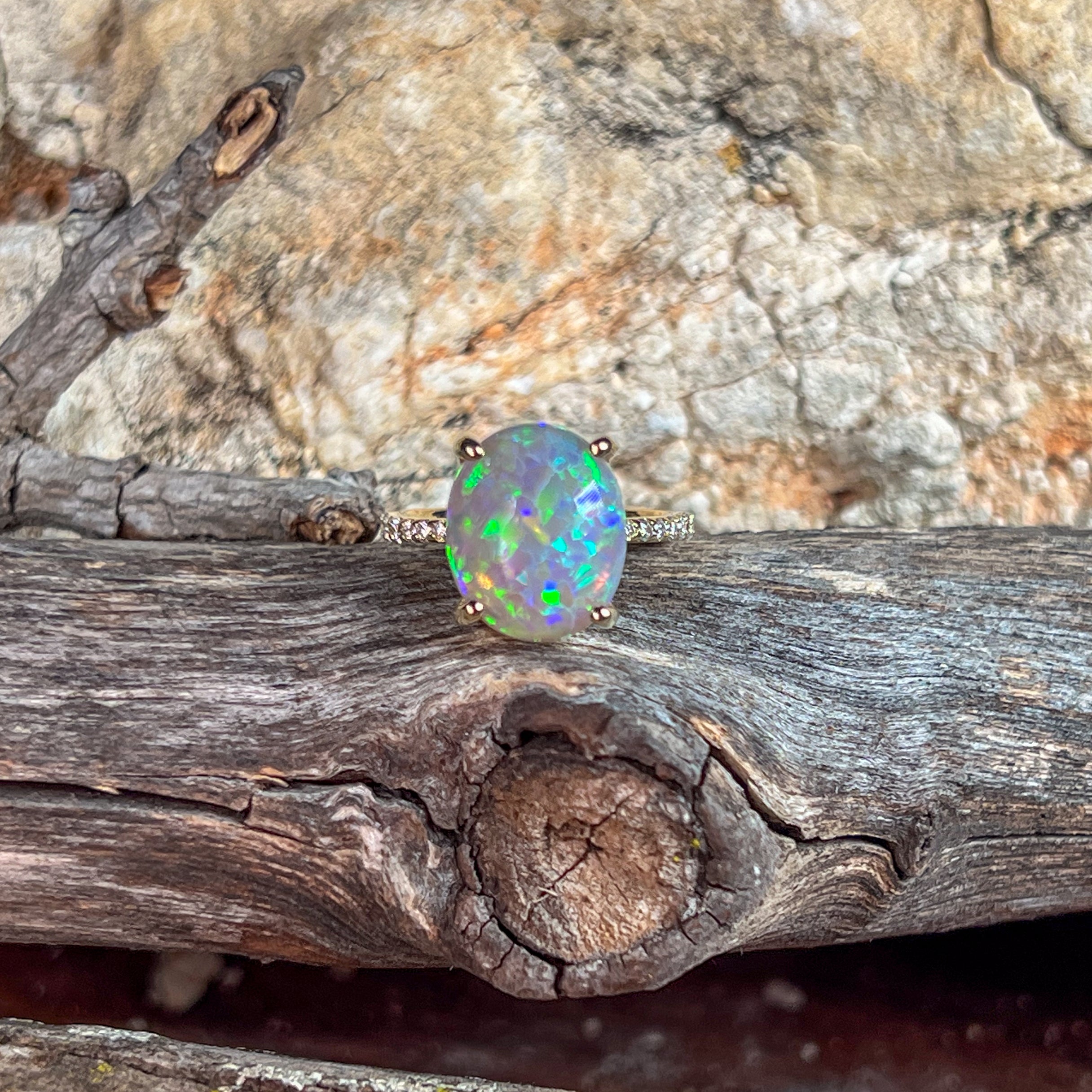 Diamond and opal rings often go well together, not only because they look good but also because diamond balances the opal stones' softness.