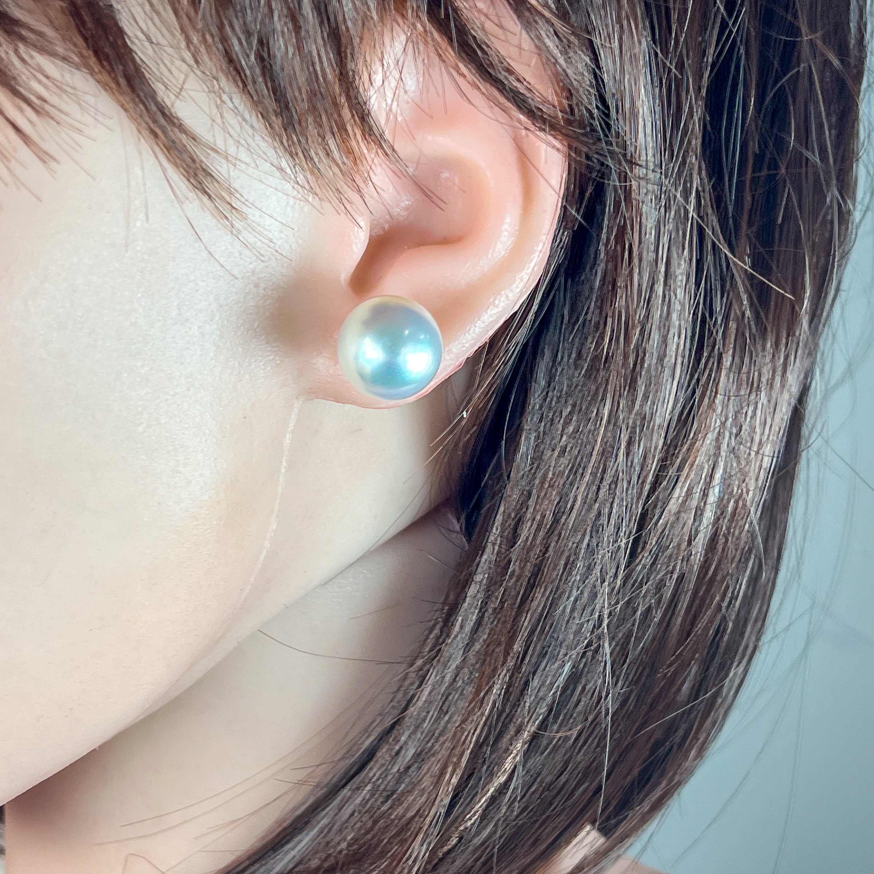 18kt White Gold short huggie style South Sea Pearl 10.5mm earrings