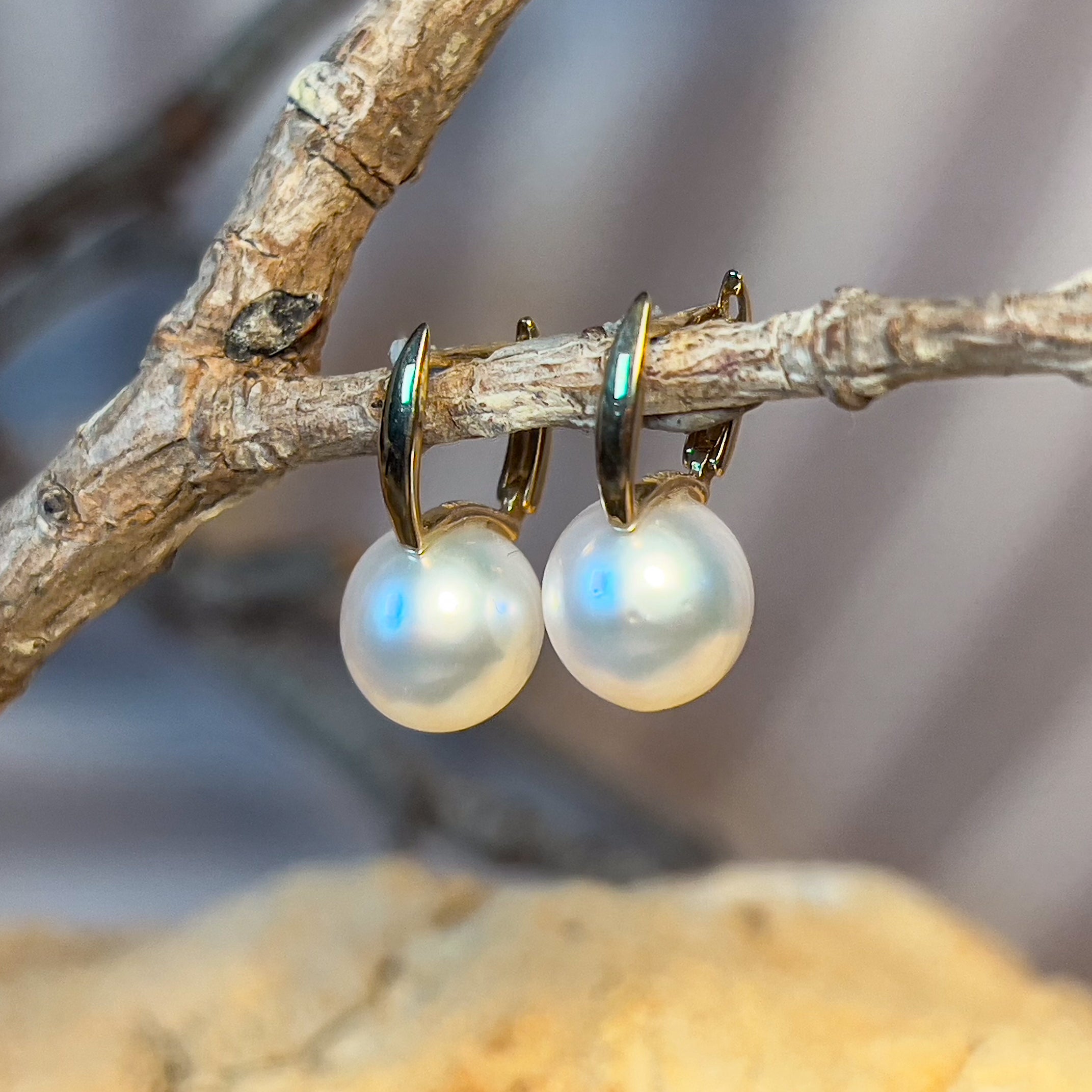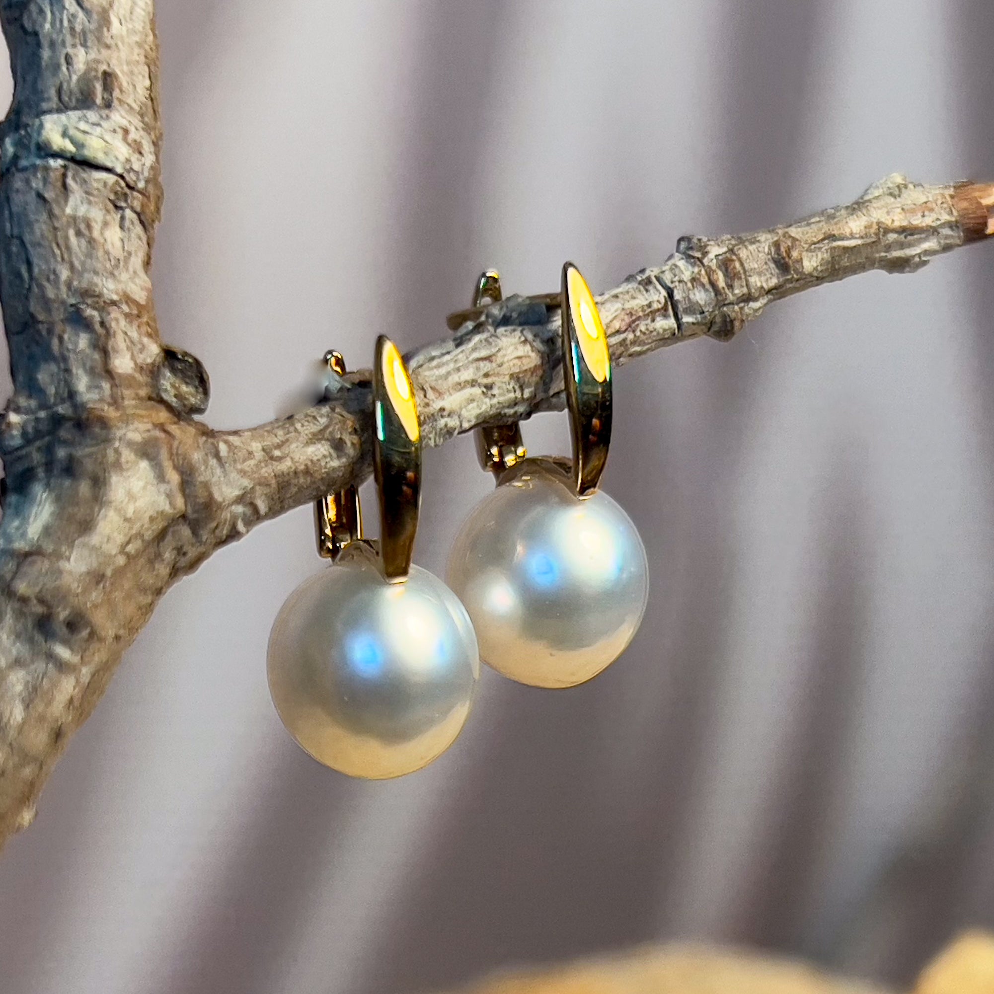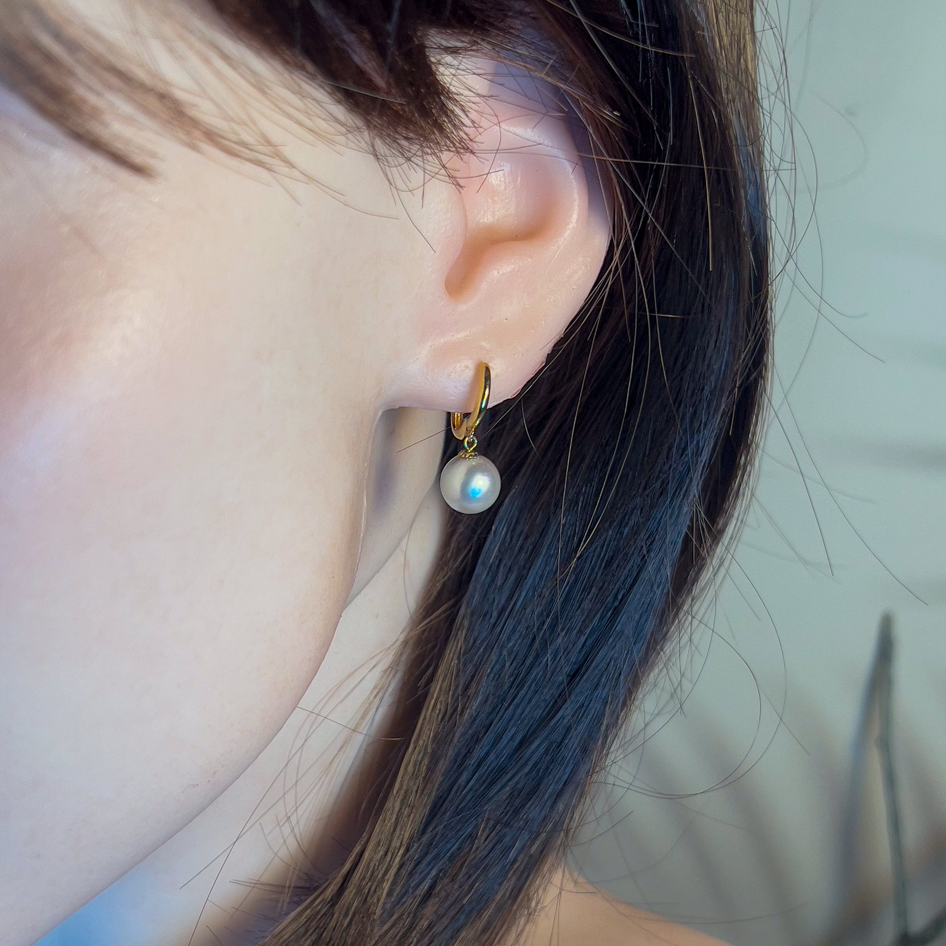 9kt Yellow Gold huggie style South Sea Pearl 9-9.5mm earrings
