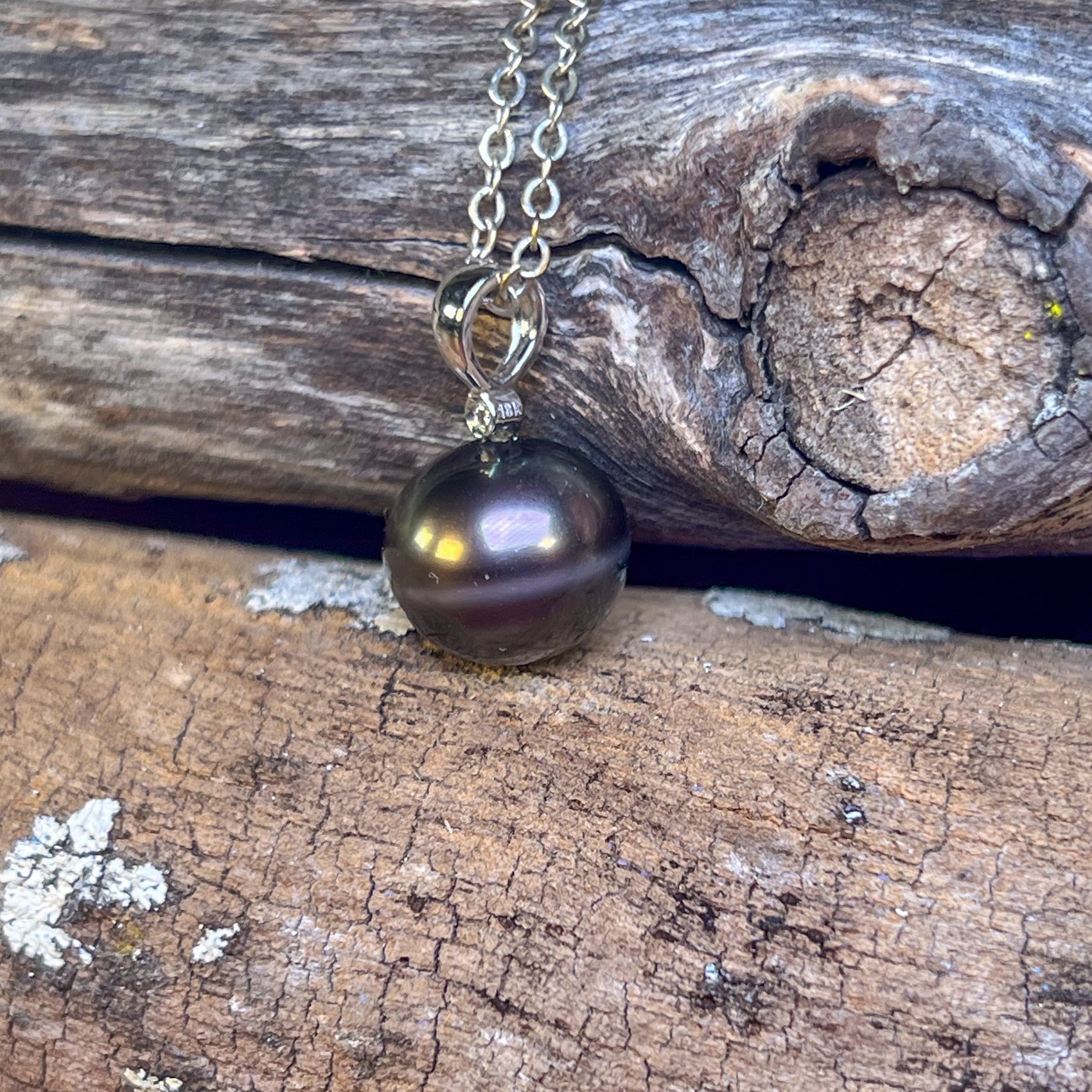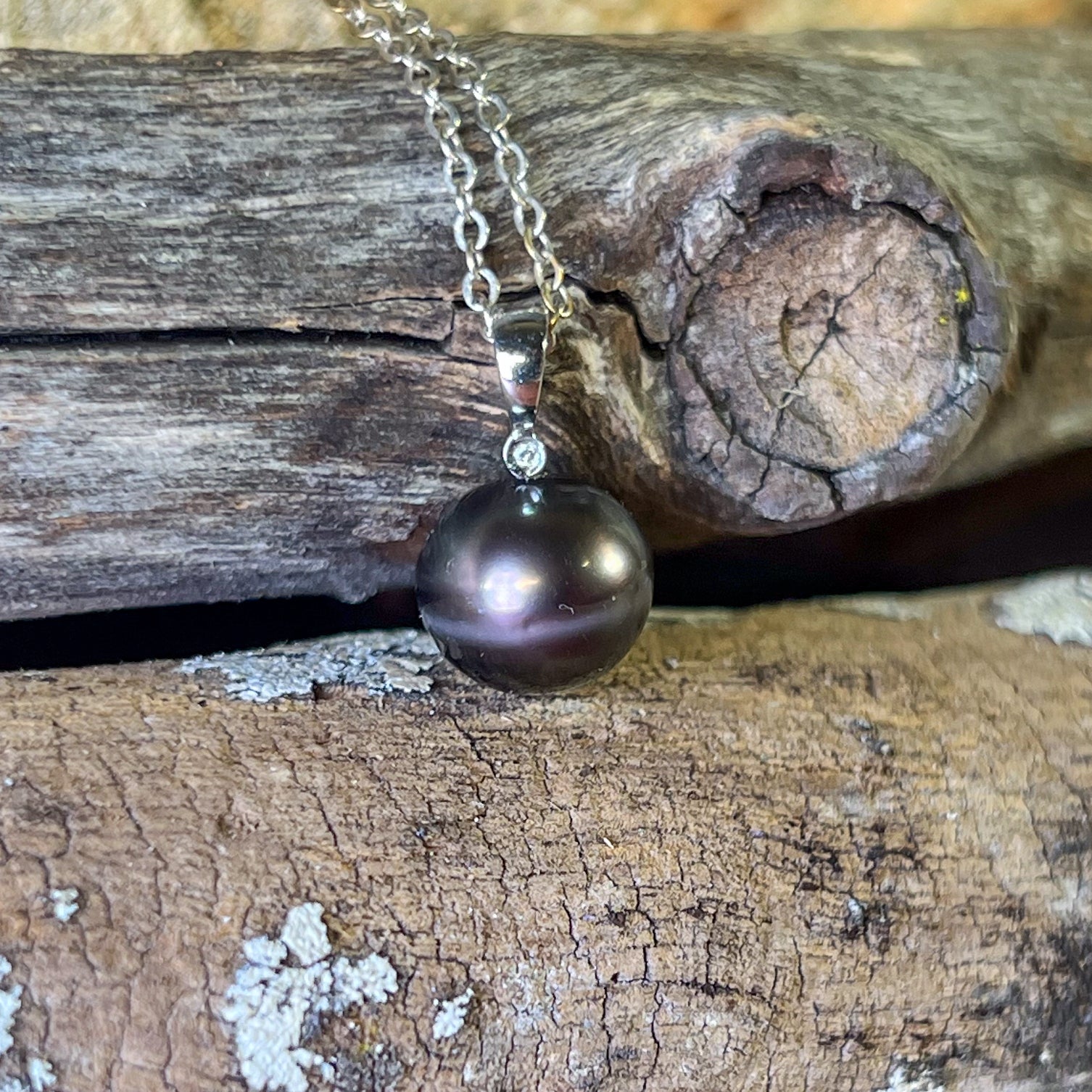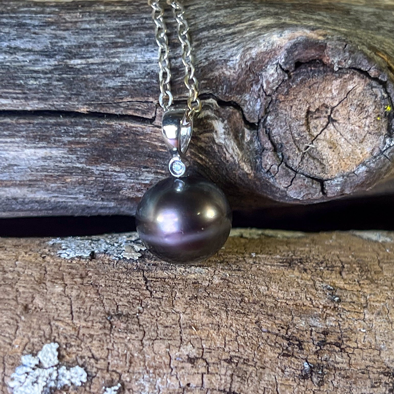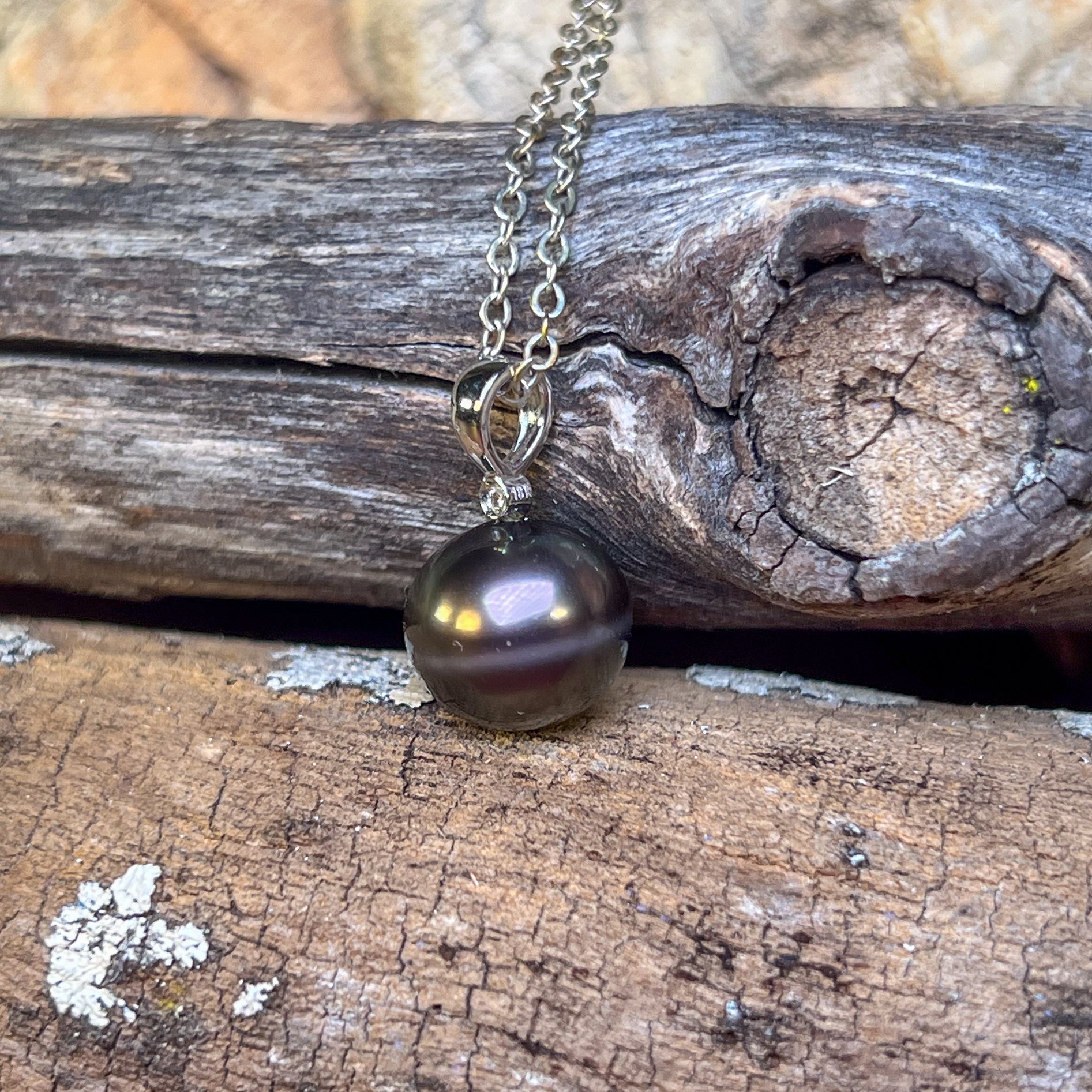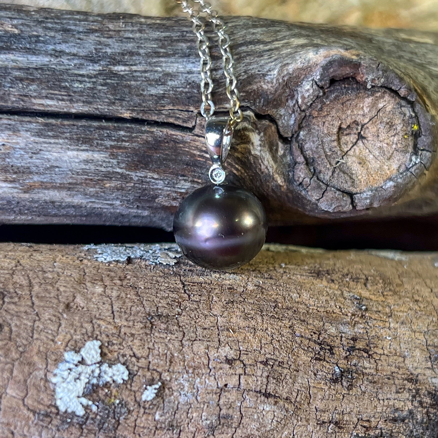 18kt White Gold Tahitian Black Pearl 11-11.5mm and diamond pendant