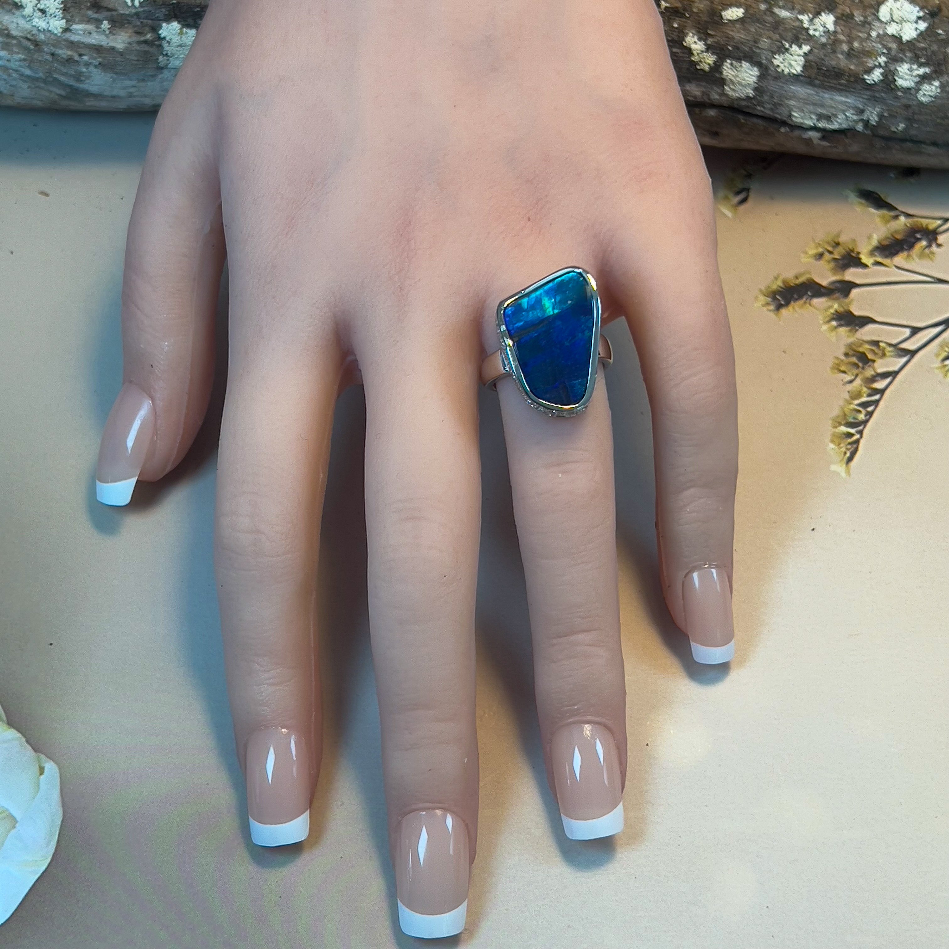 Platinum cluster design Green blue Boulder Opal 9.59ct with 1.07ct Diamonds ring