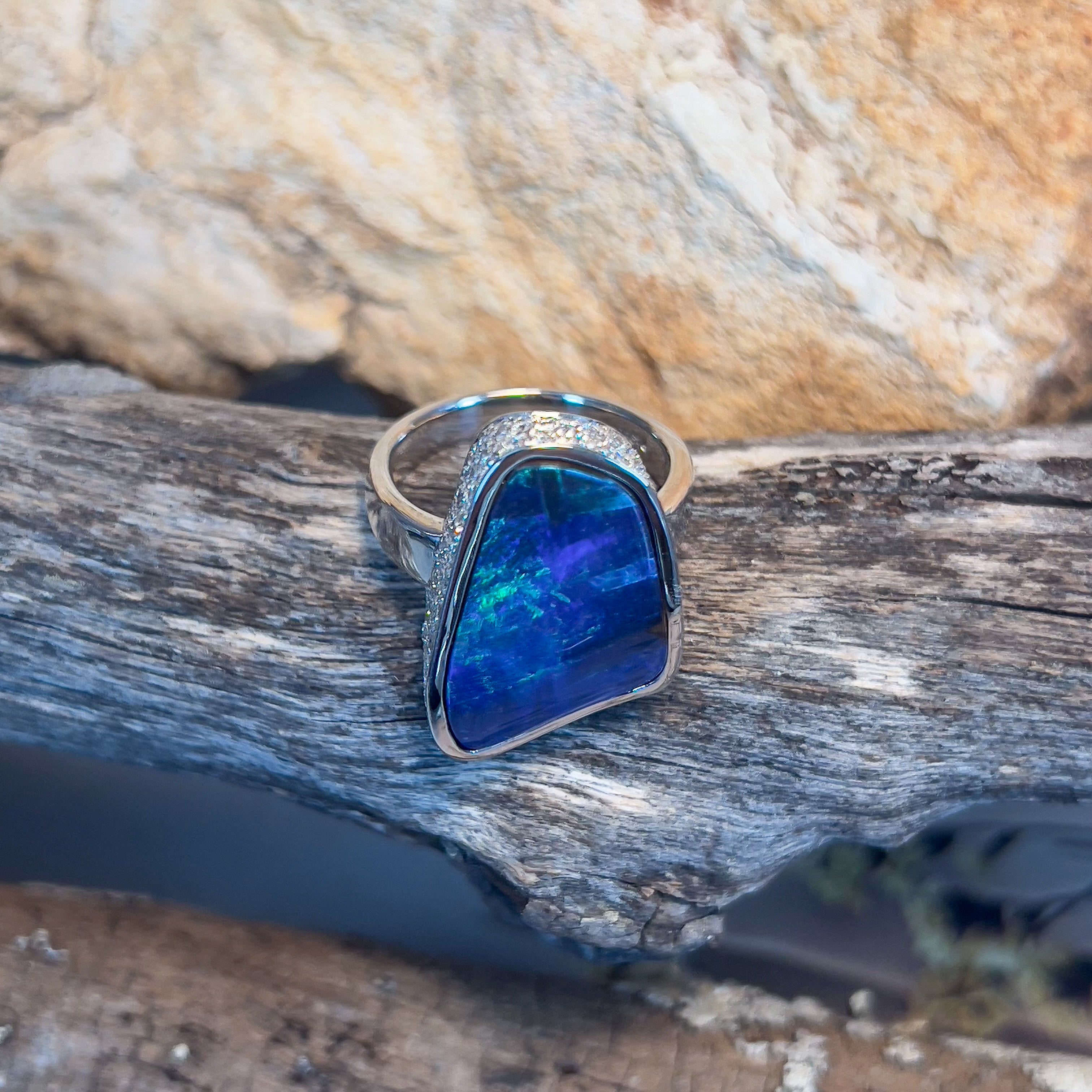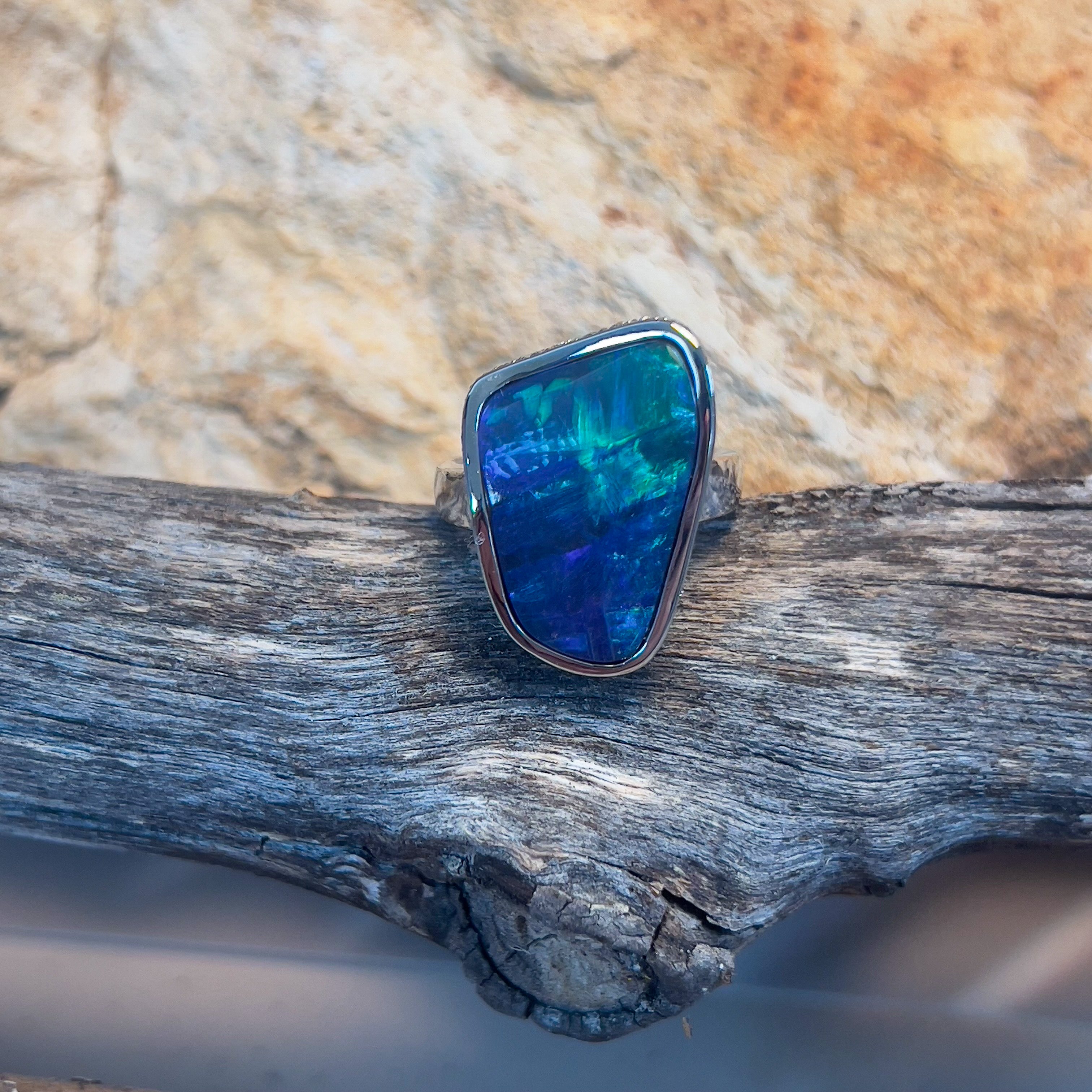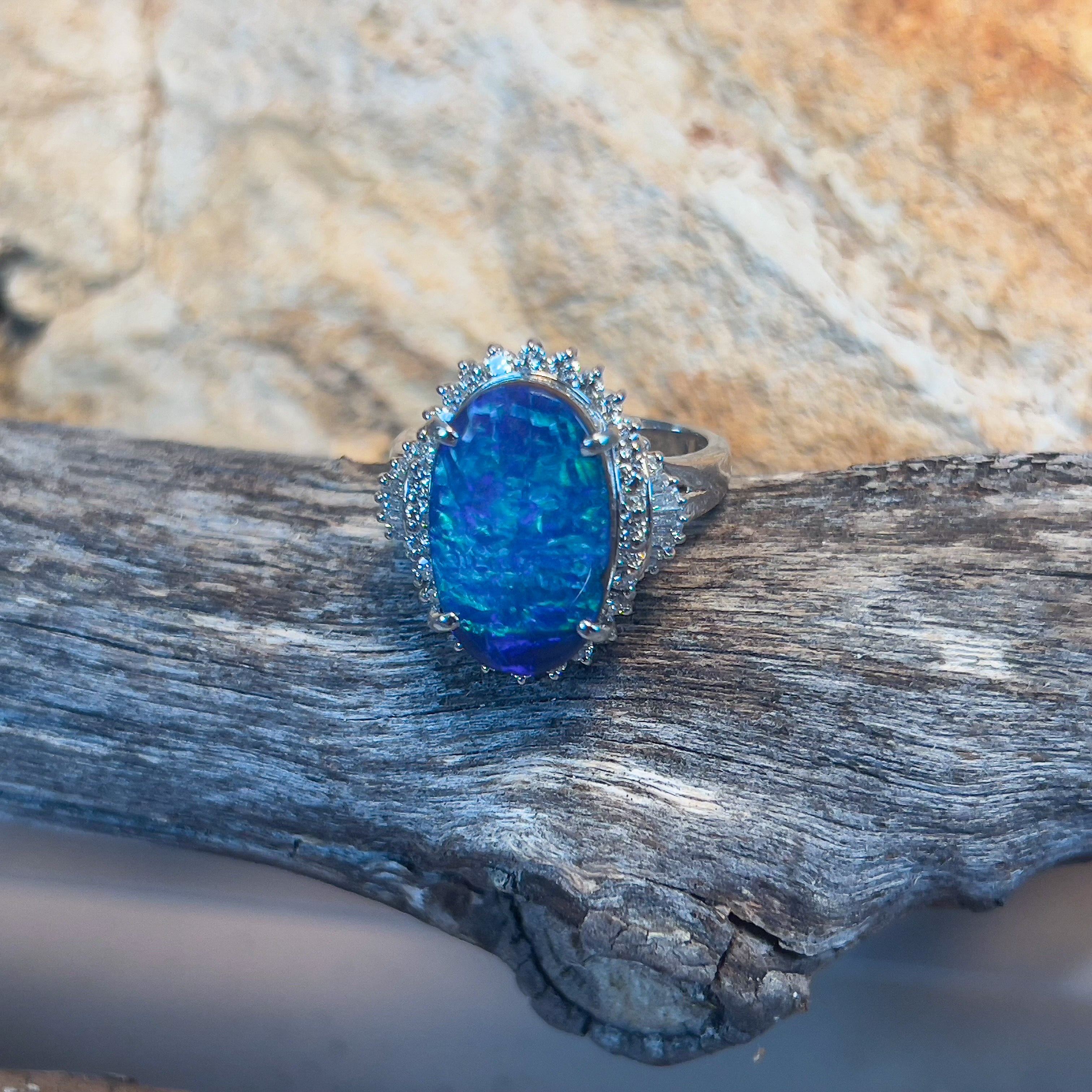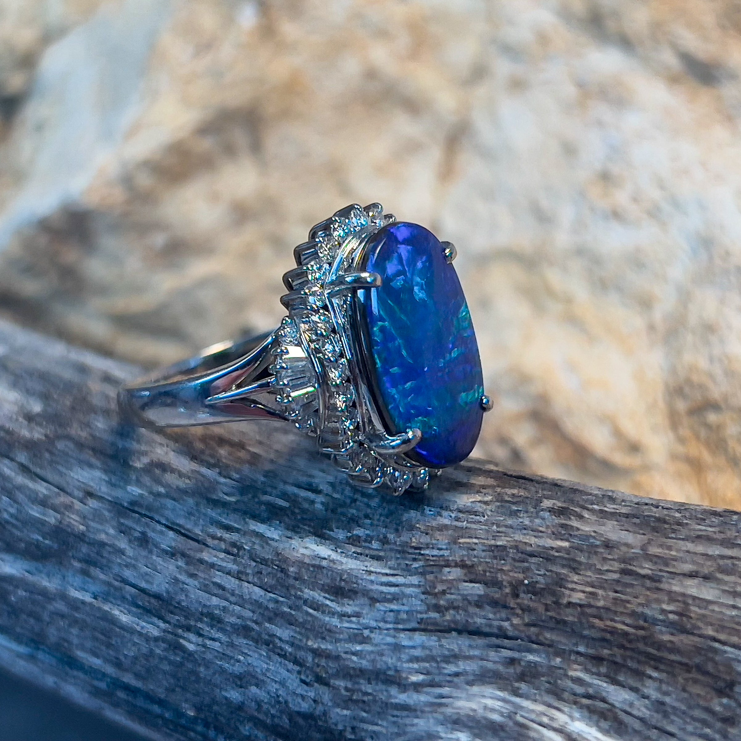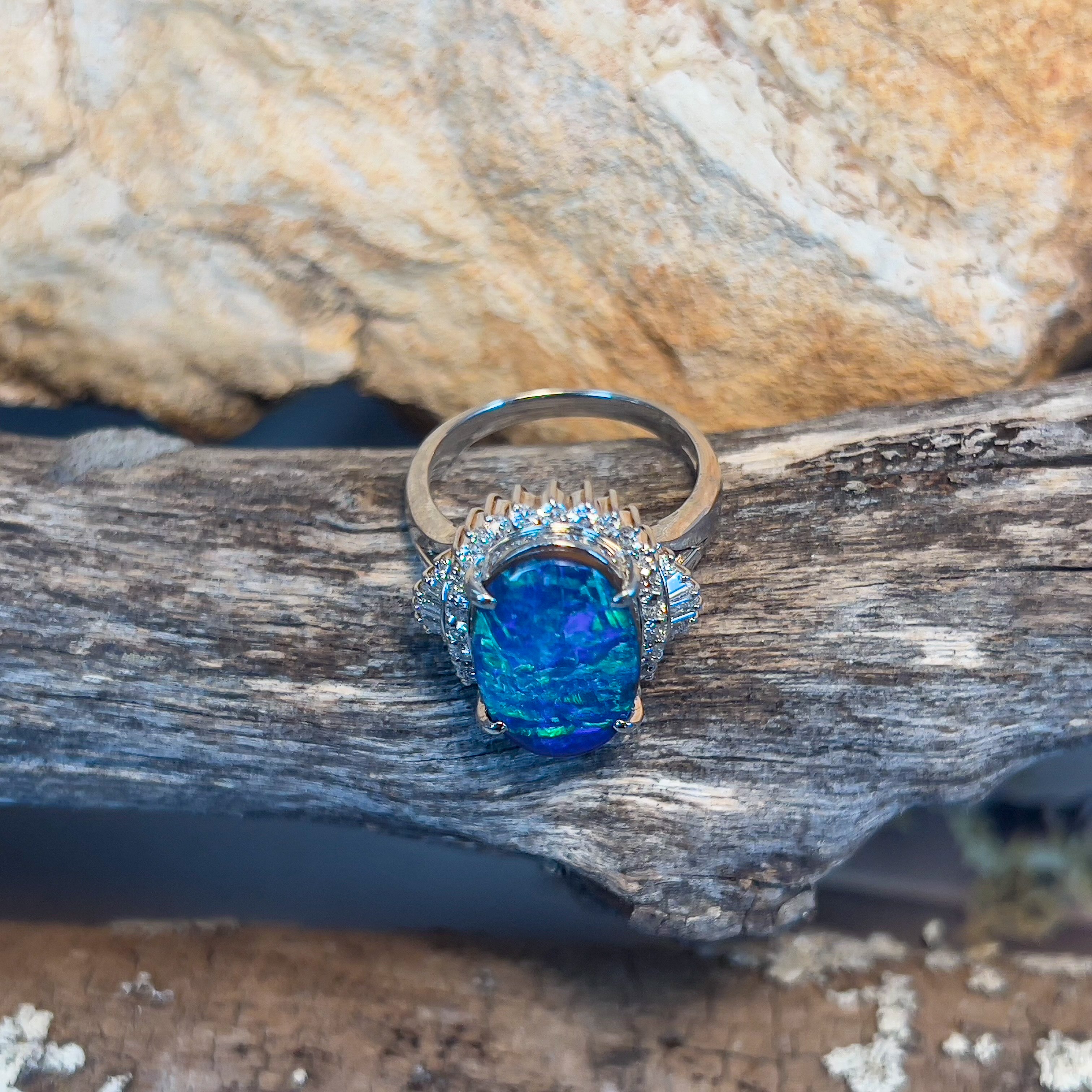 Platinum Crystal Opal ring