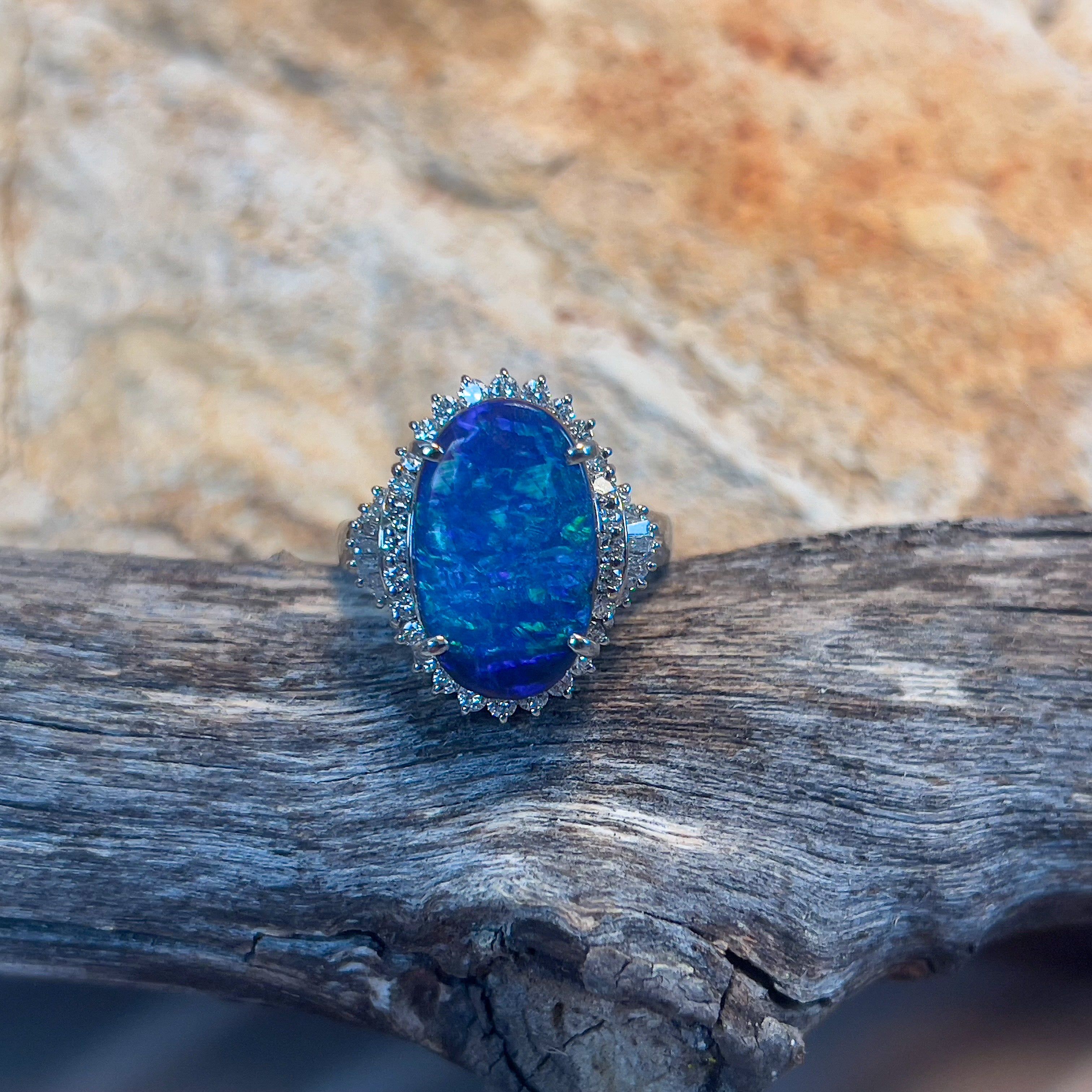 Platinum halo ring Black Opal 2.78ct Diamond 0.24ct