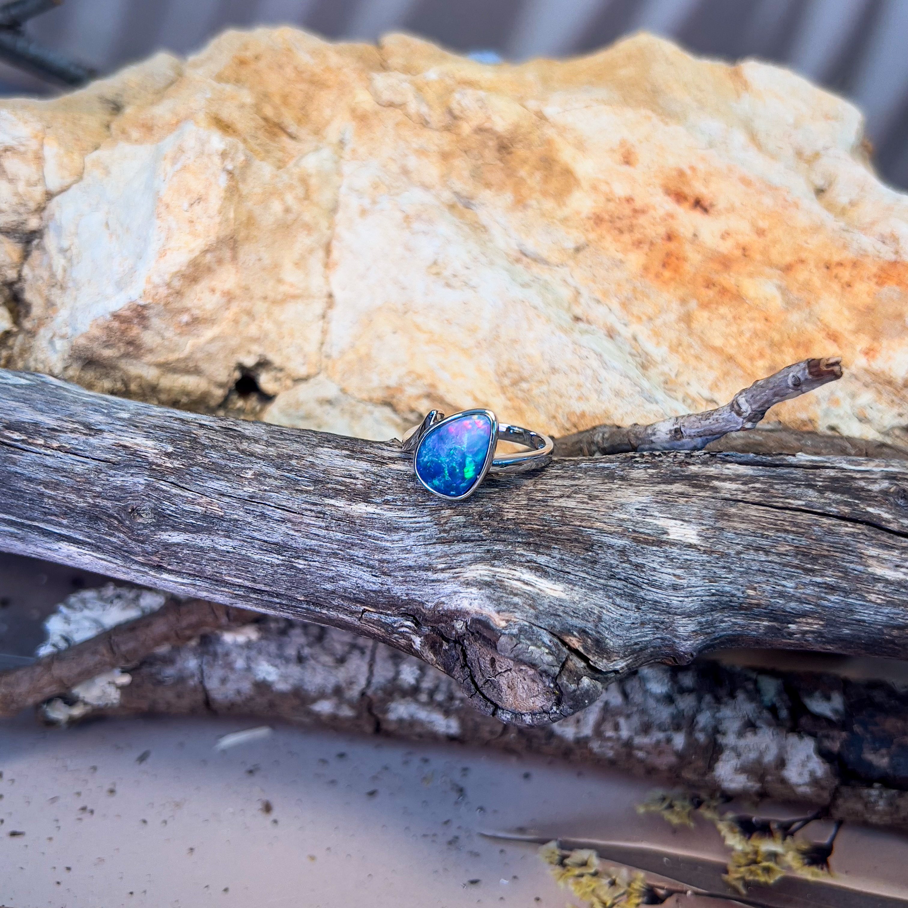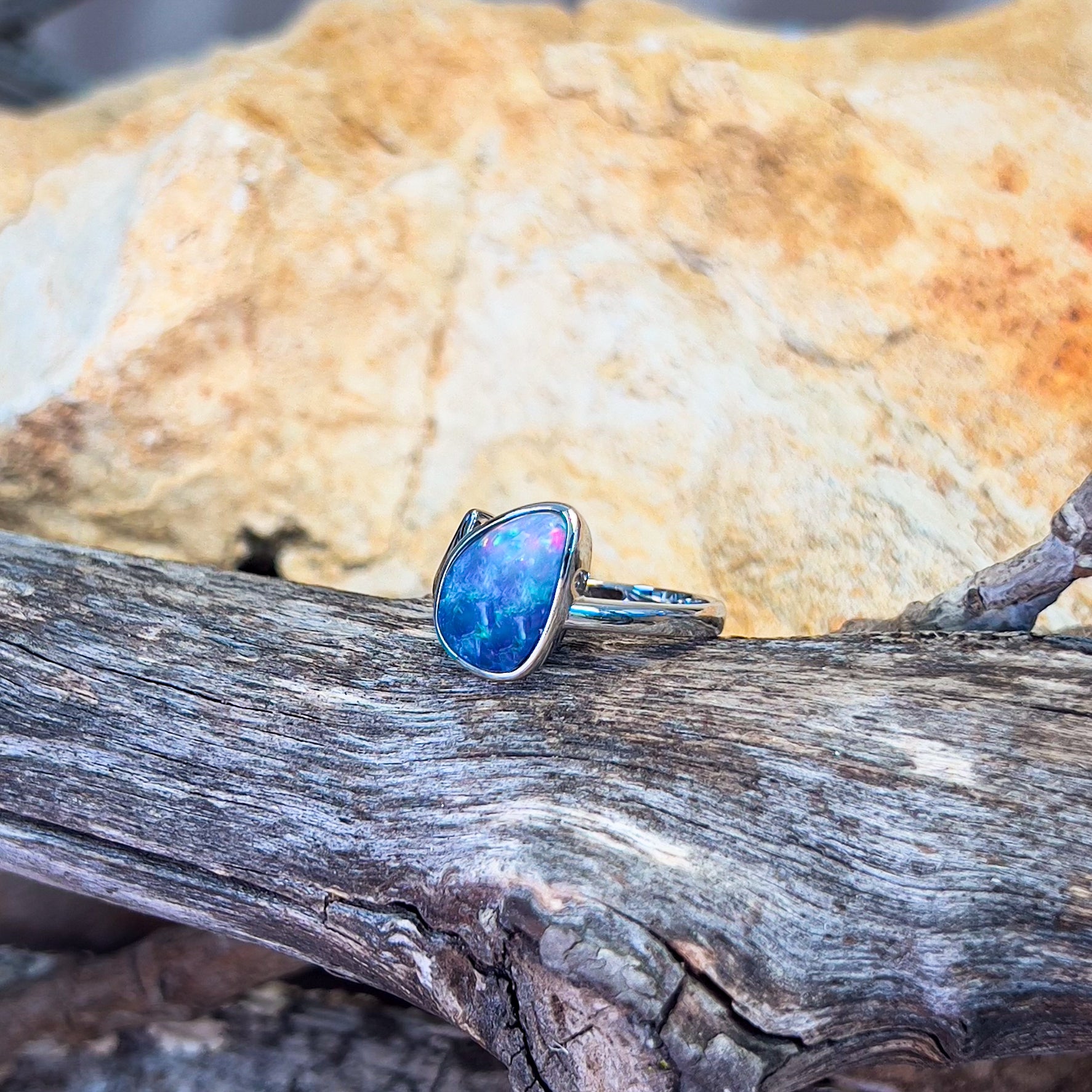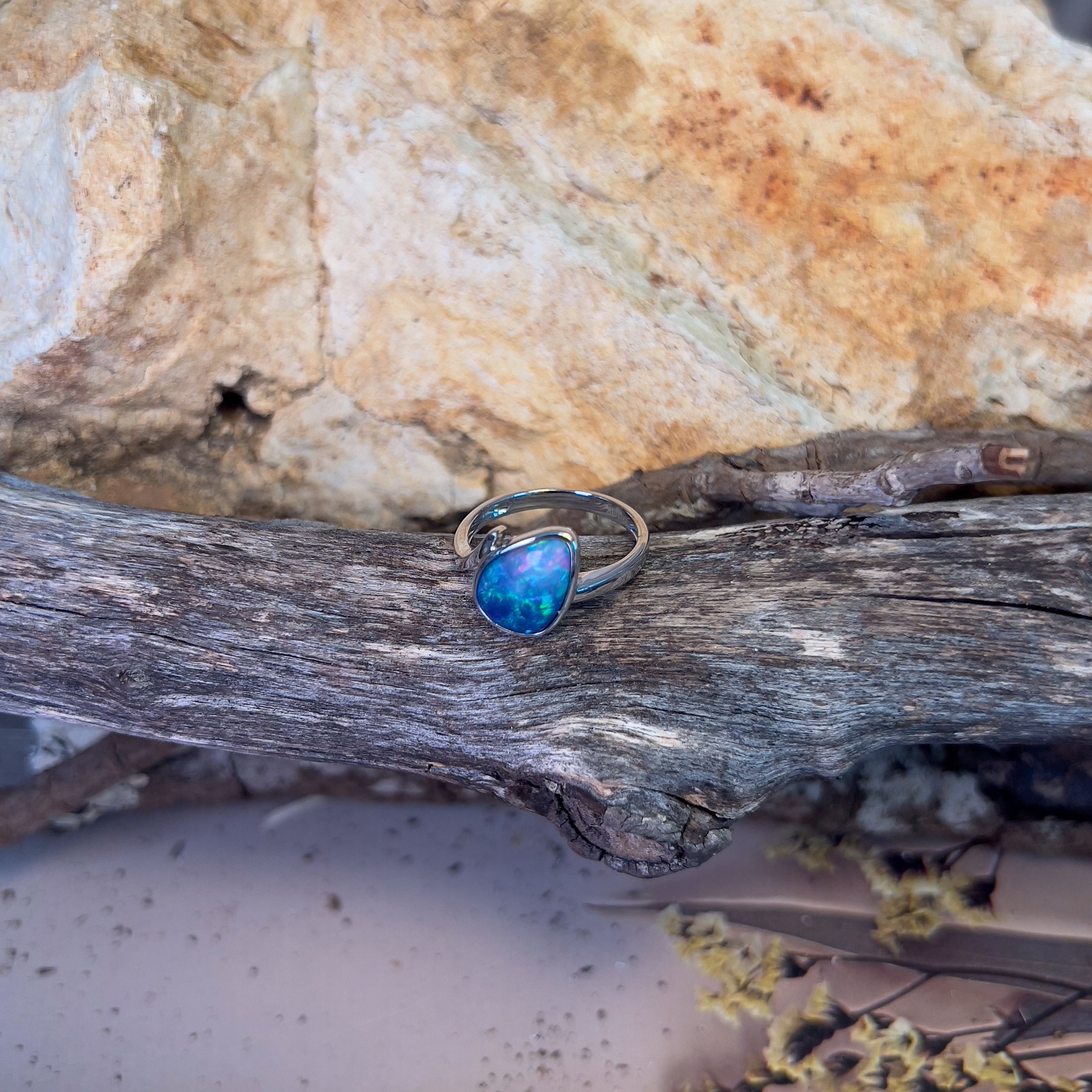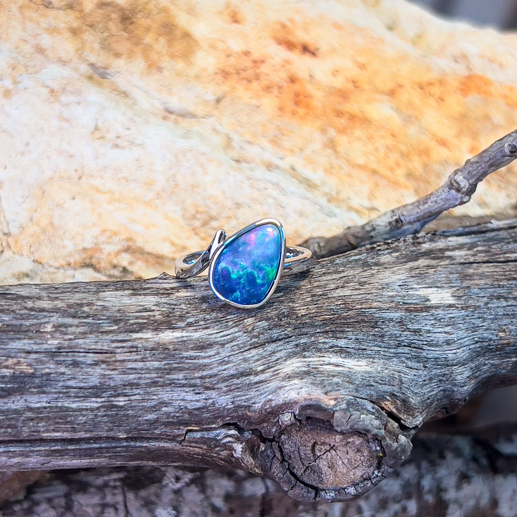 14kt White Gold split shank Triangular shape Opal doublet 2.5ct ring