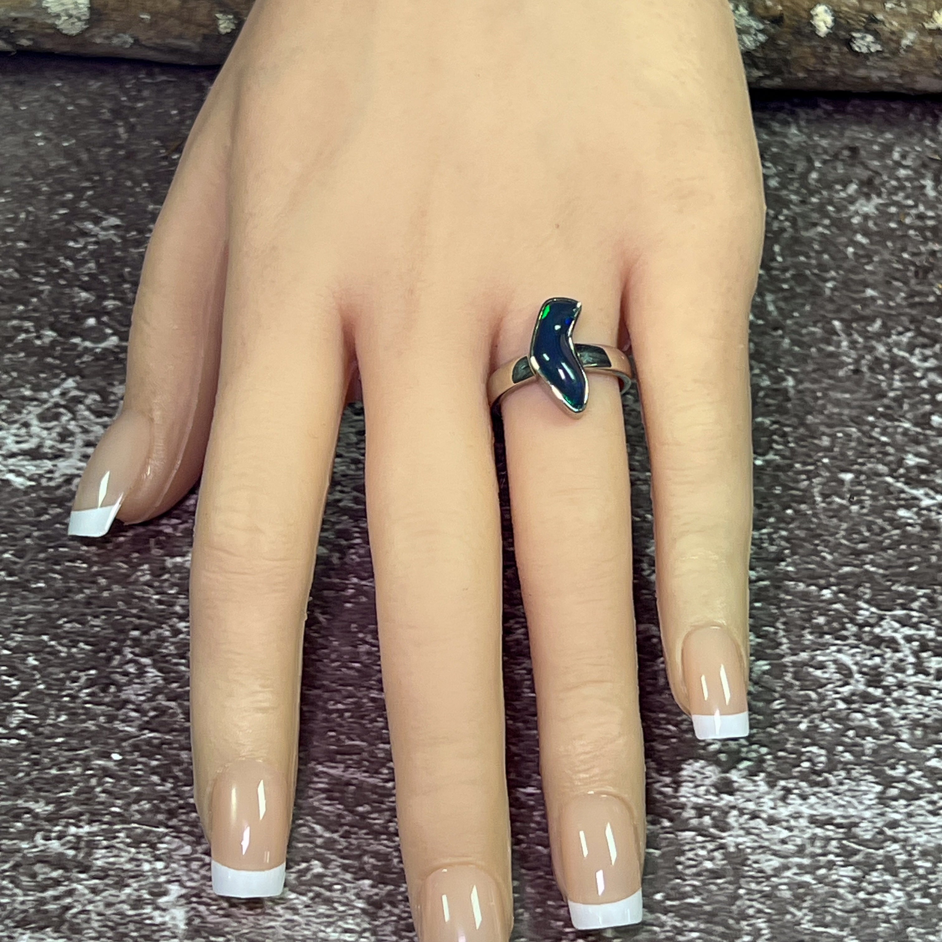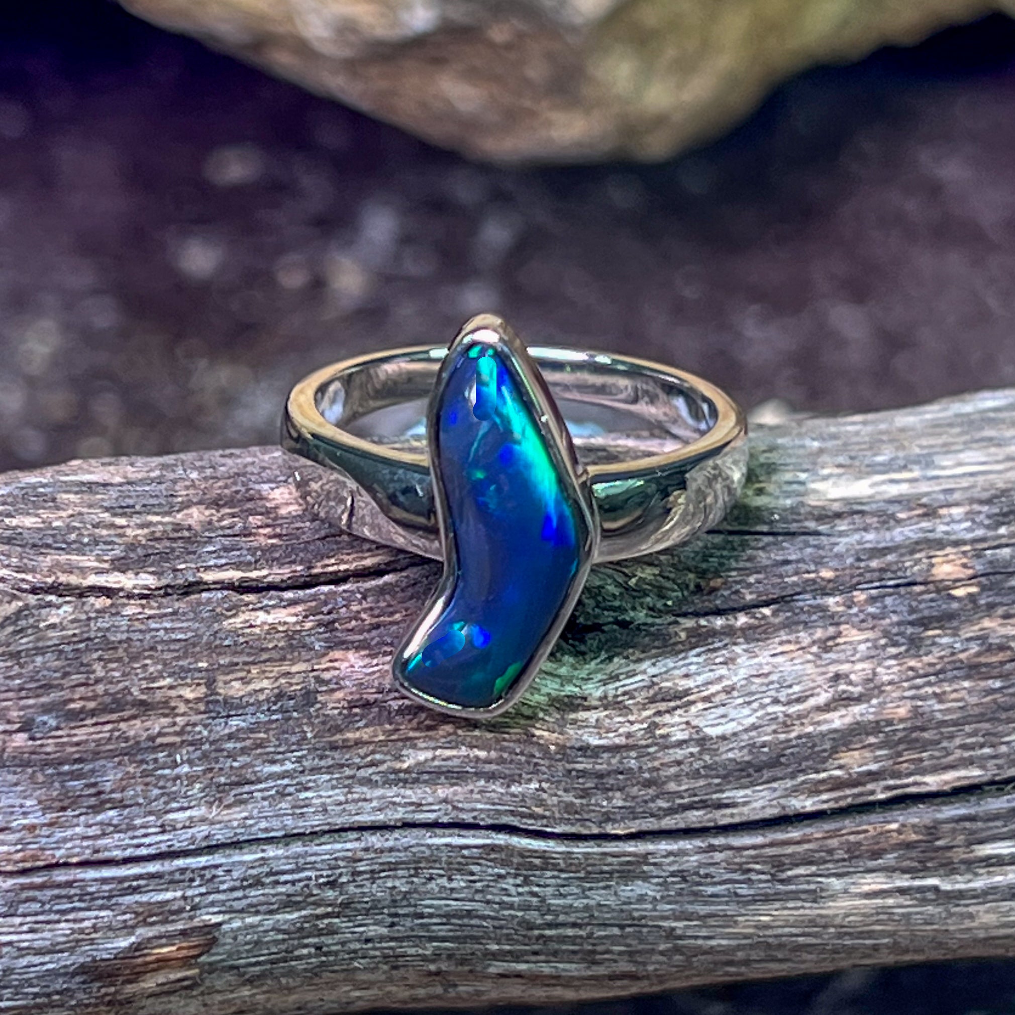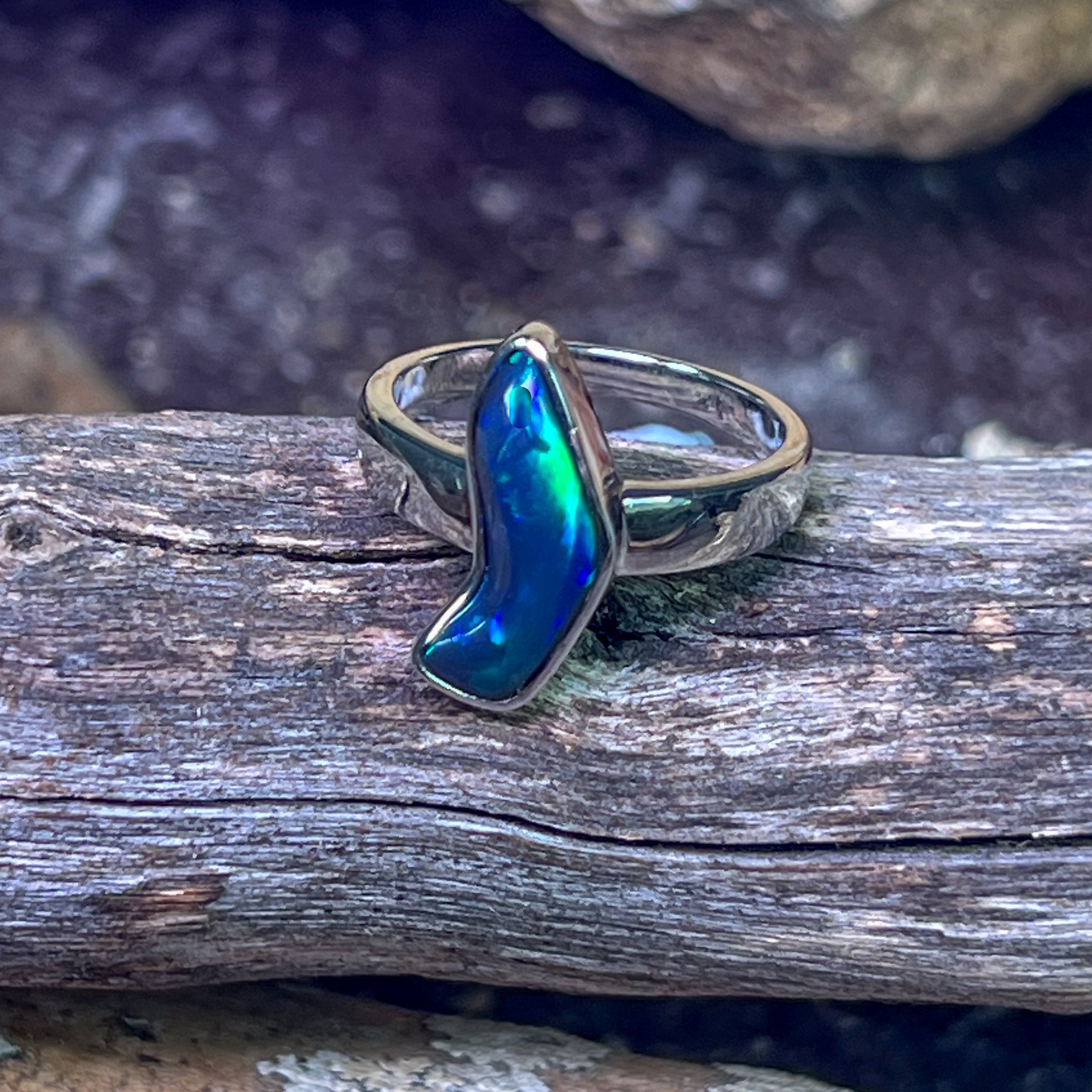 Sterling Silver Freeform Green Blue Black Opal 2.15ct ring