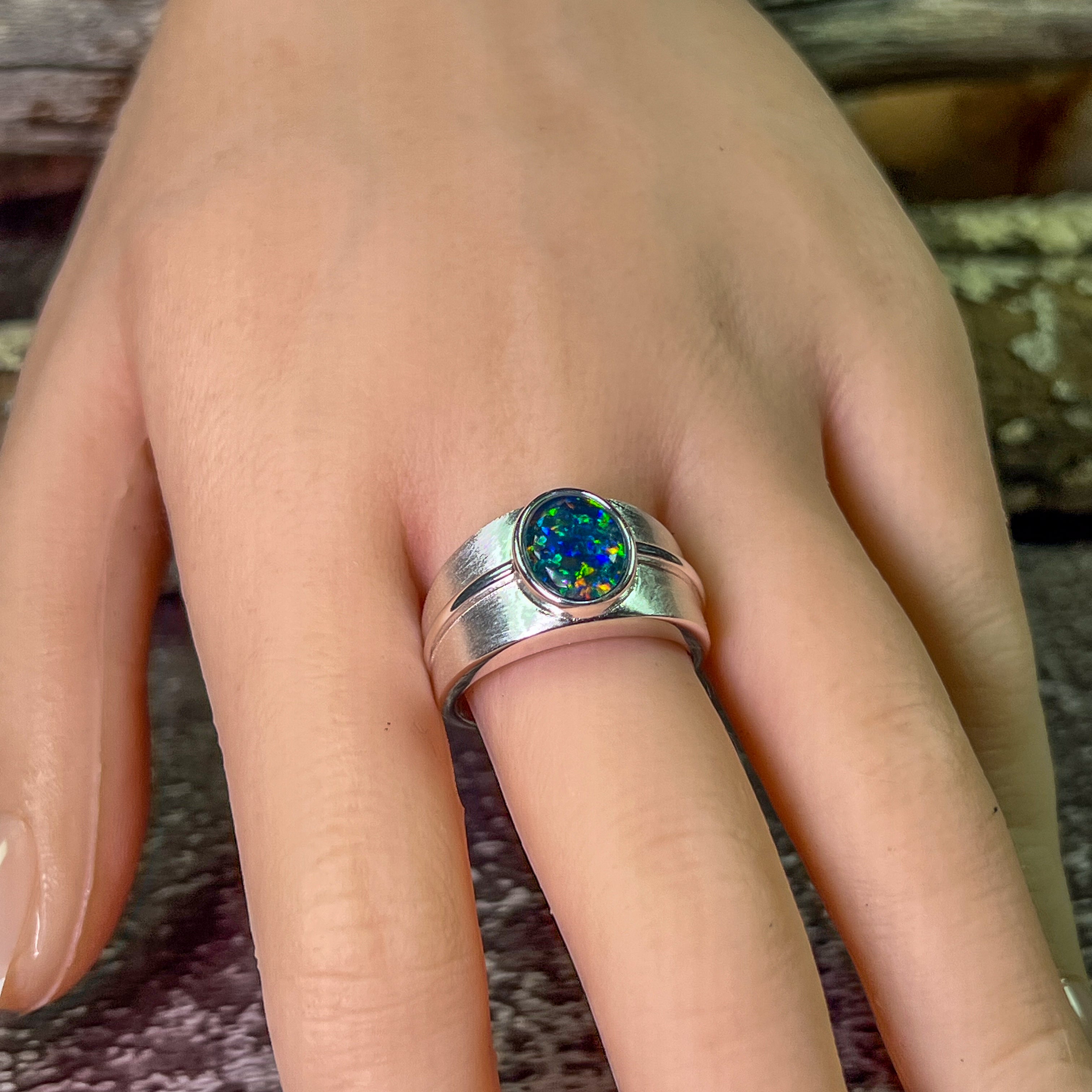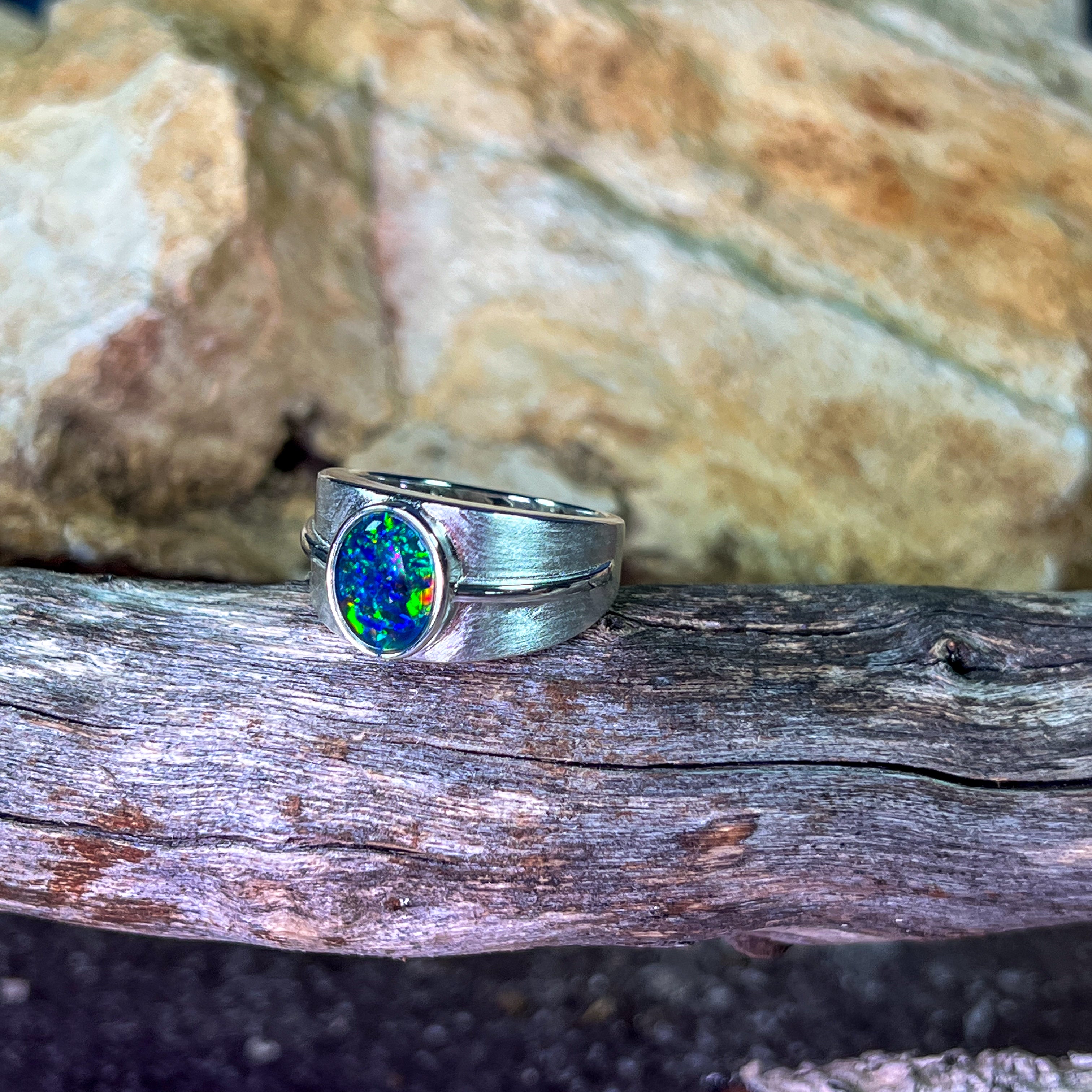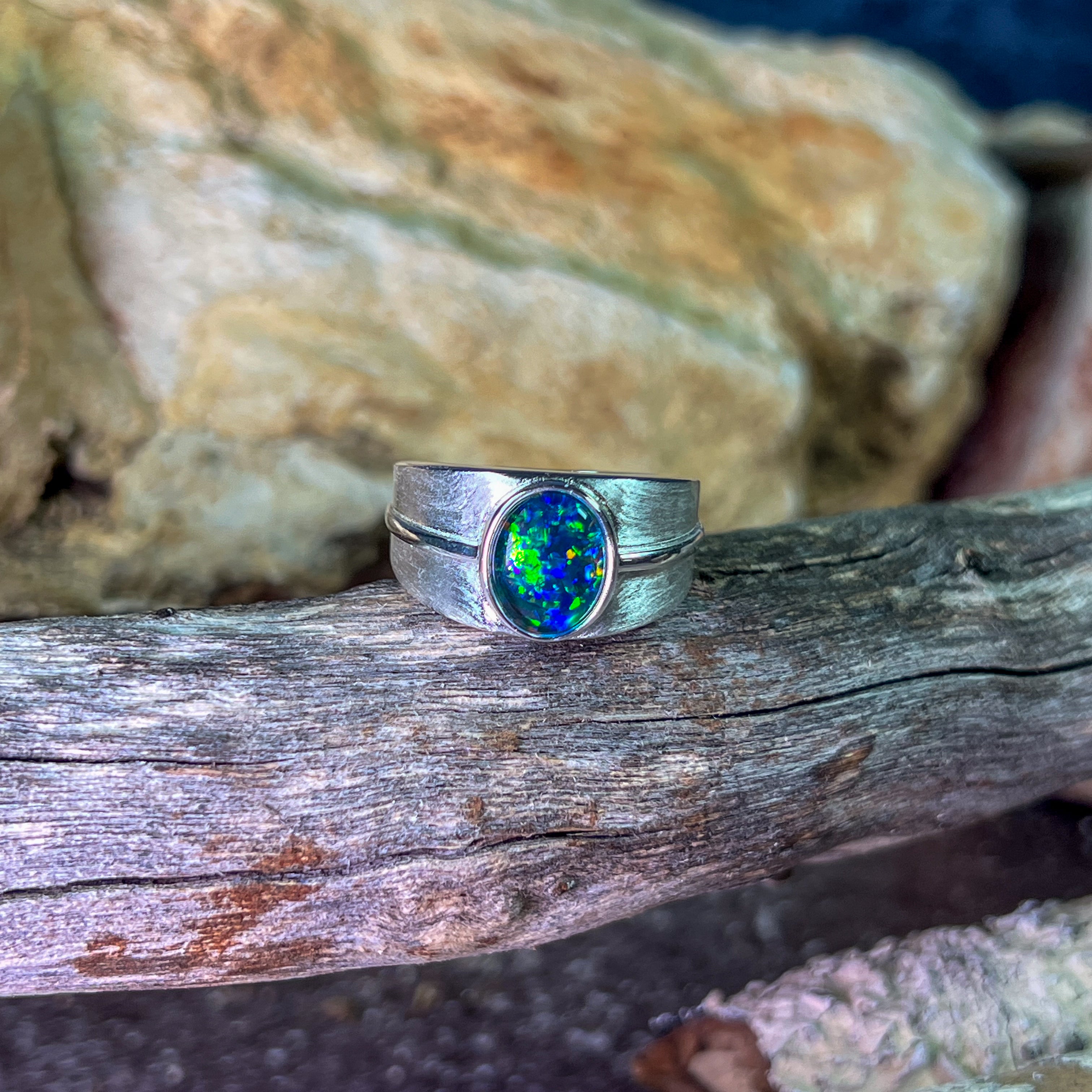 Sterling Silver matte finish 10x8mm Opal triplet ring