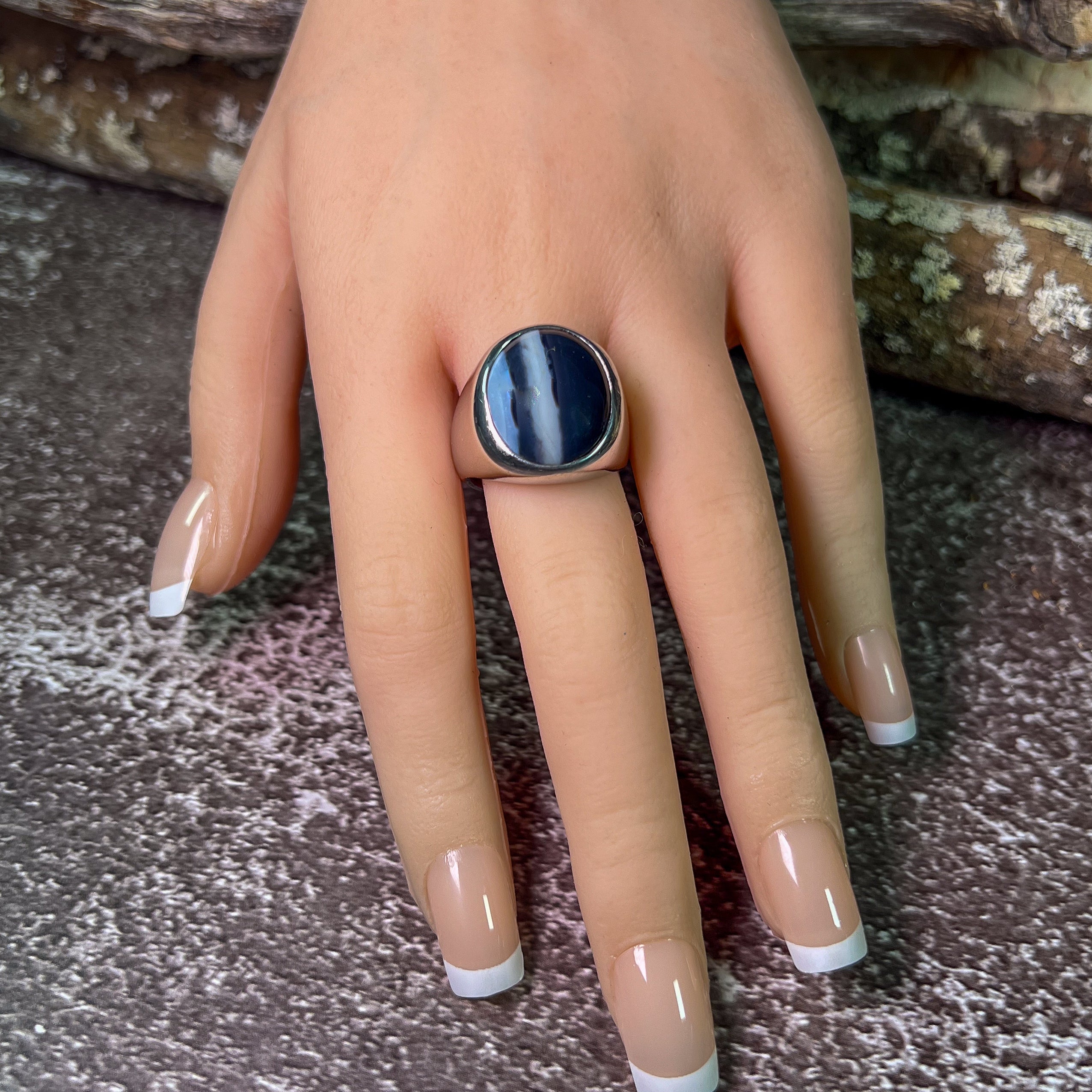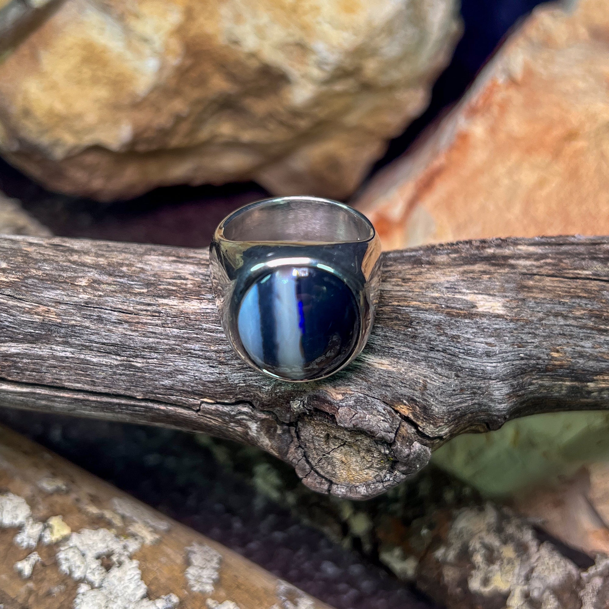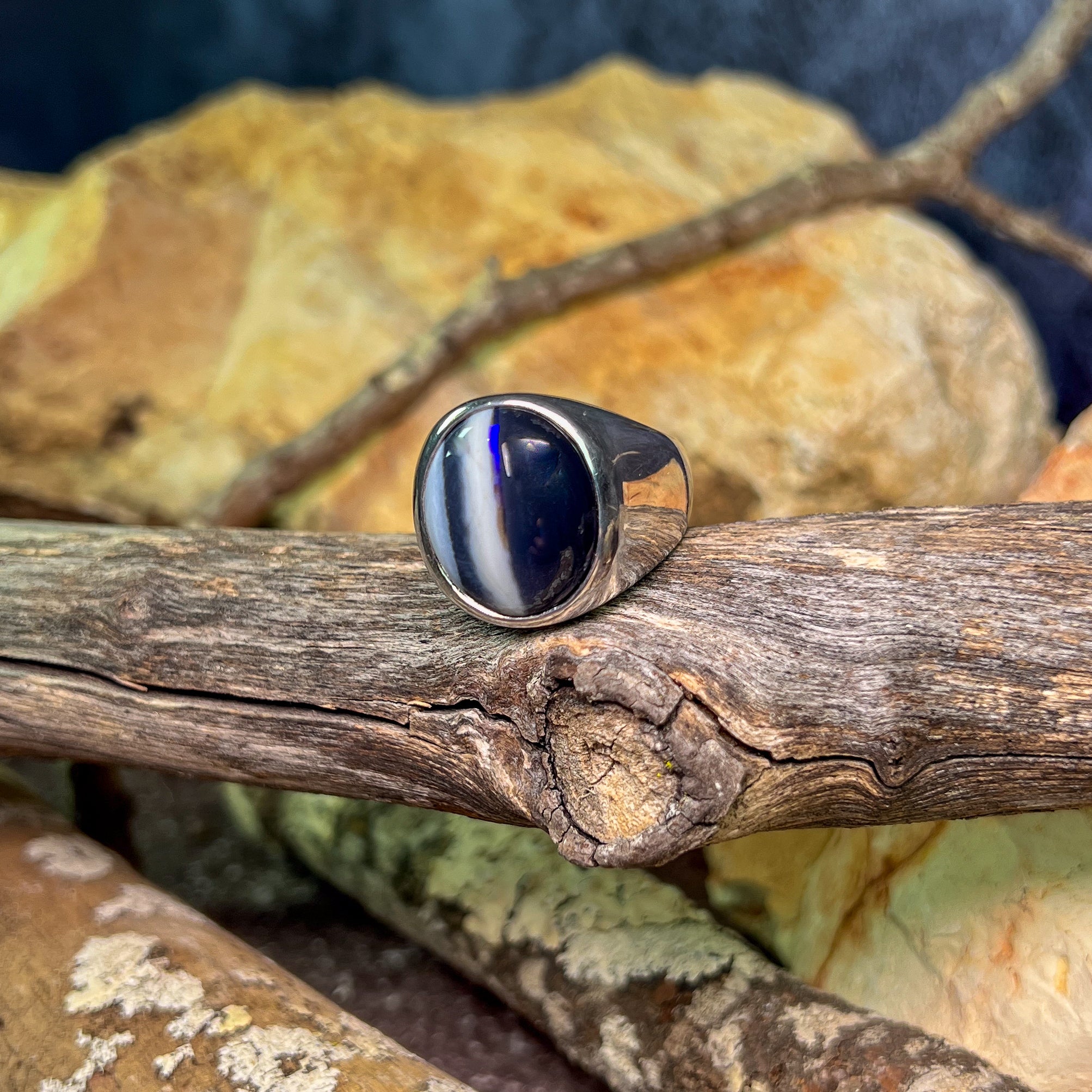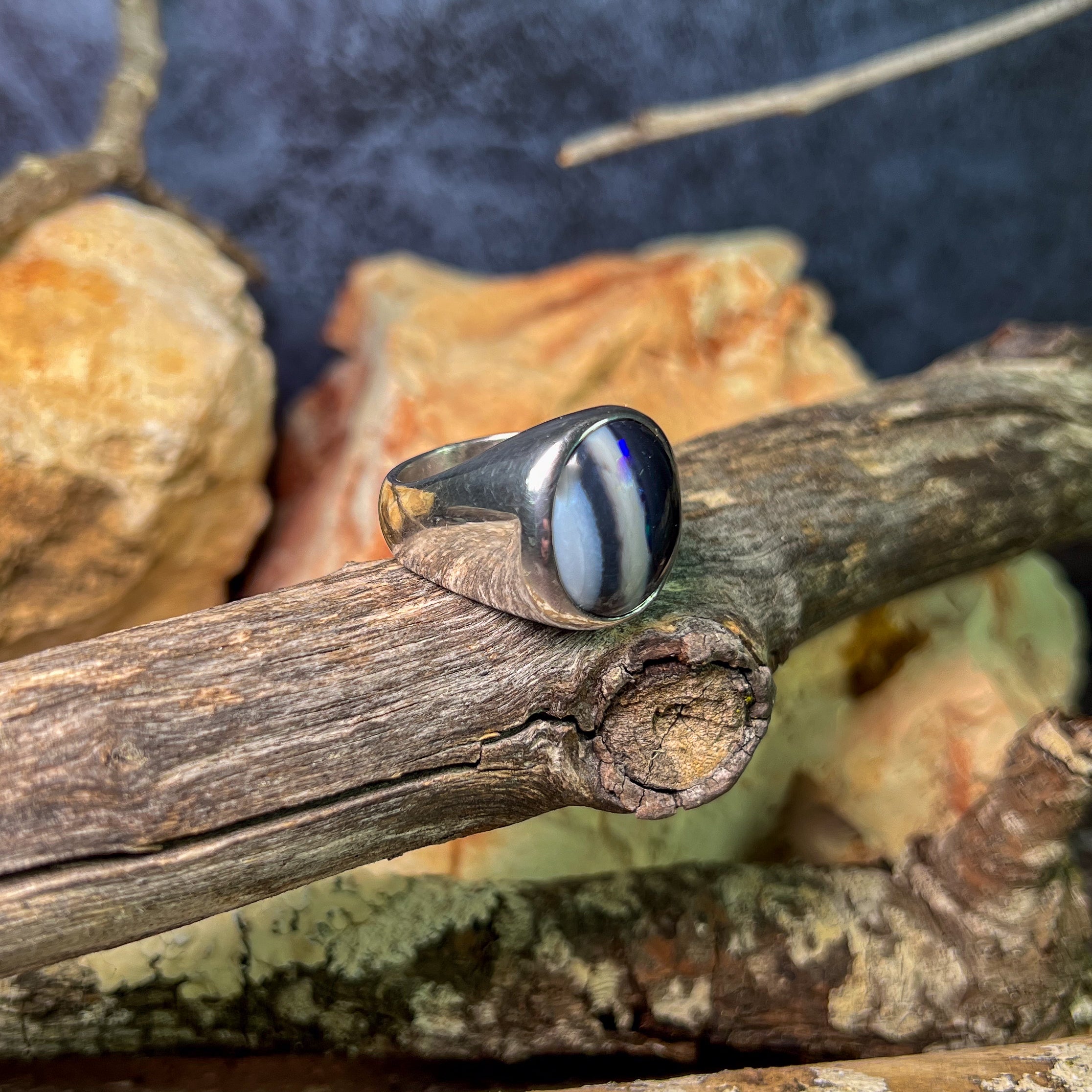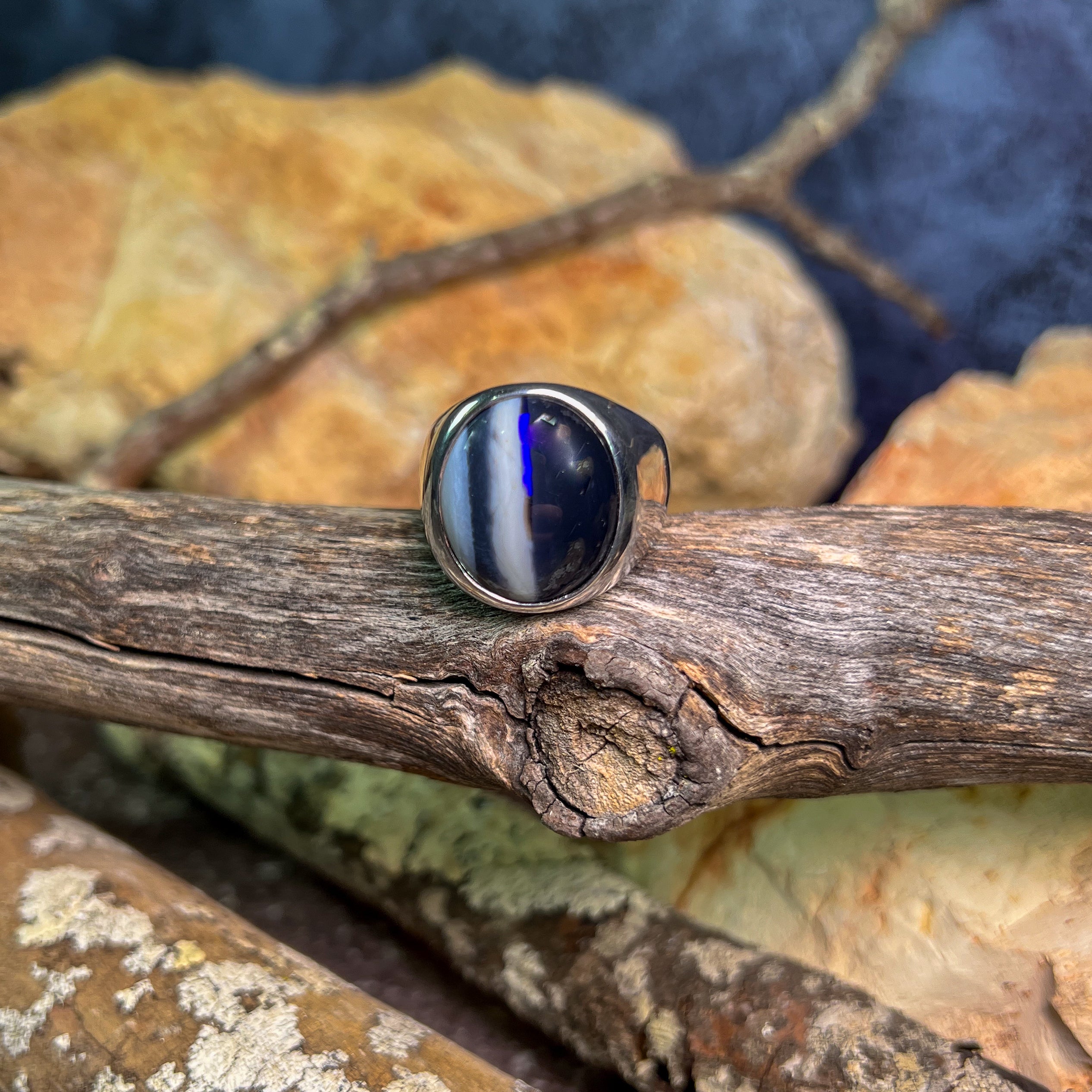 One Sterling Silver ring wth one 8.3ct Black Opal with white stripes