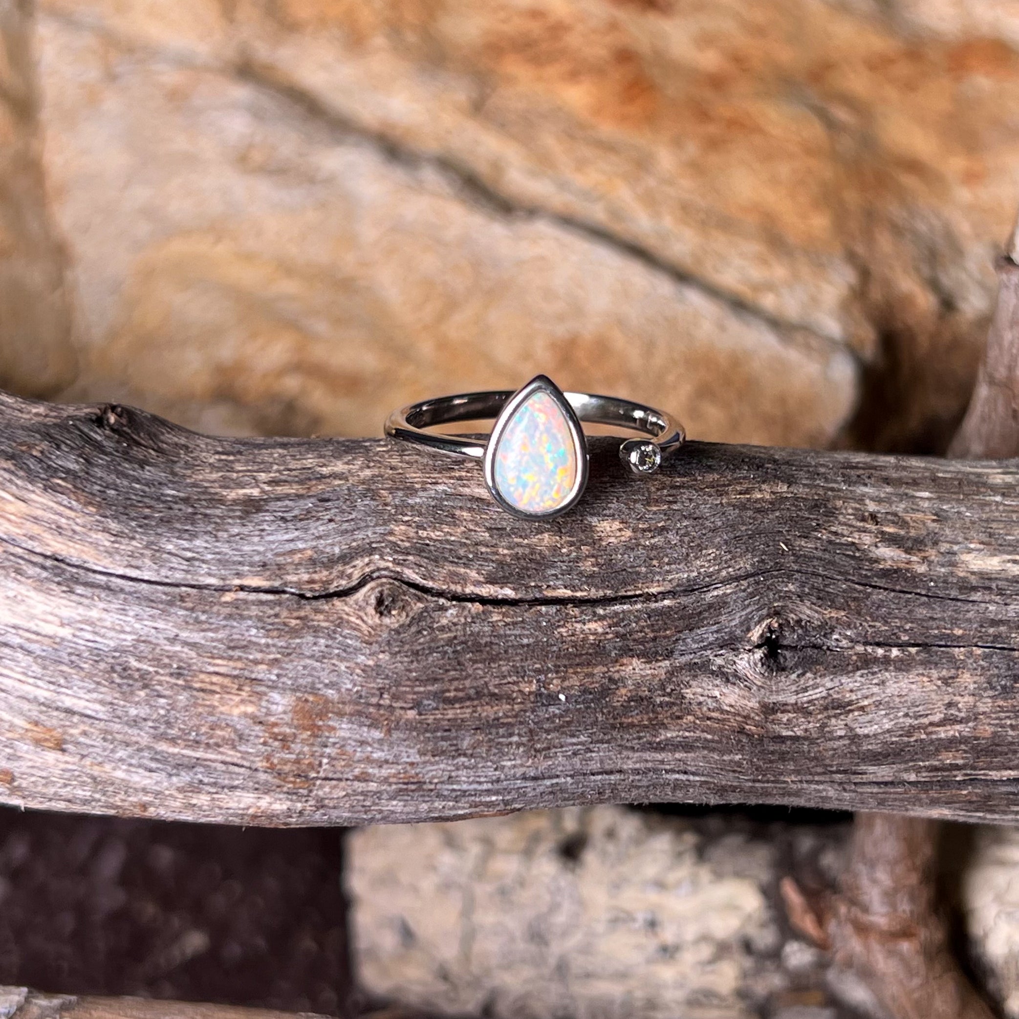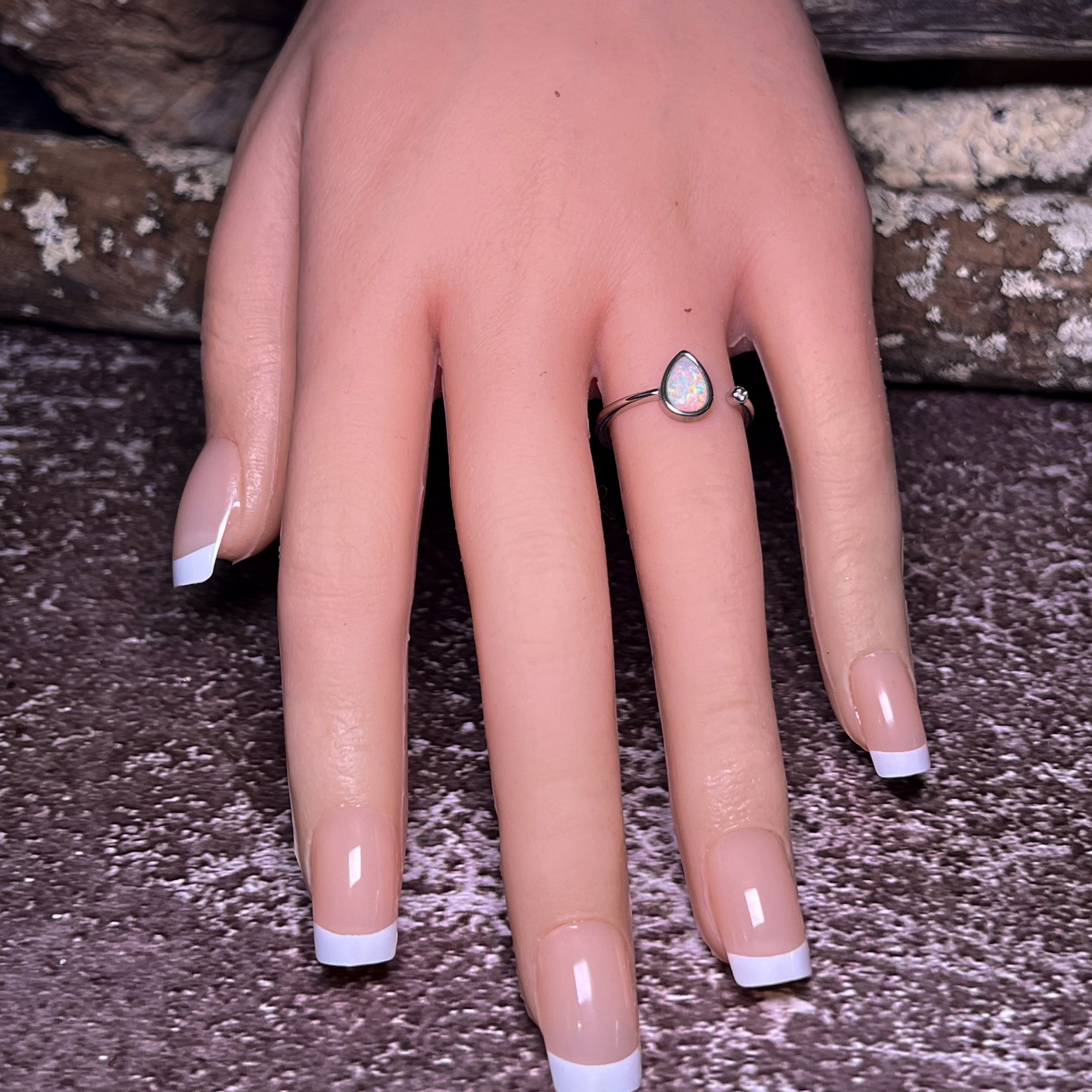 Sterling Silver Pear shape White Opal 8x6mm solitaire ring