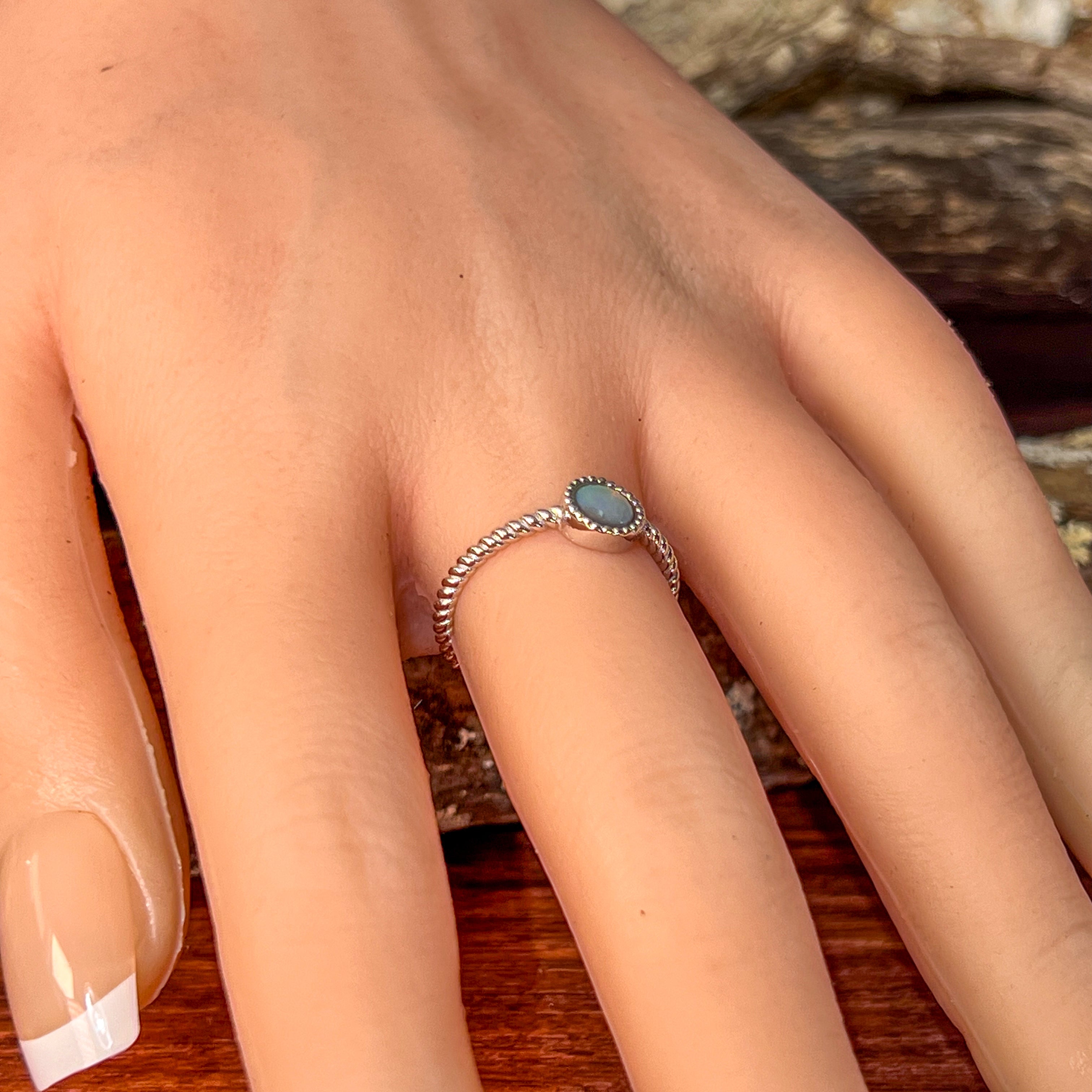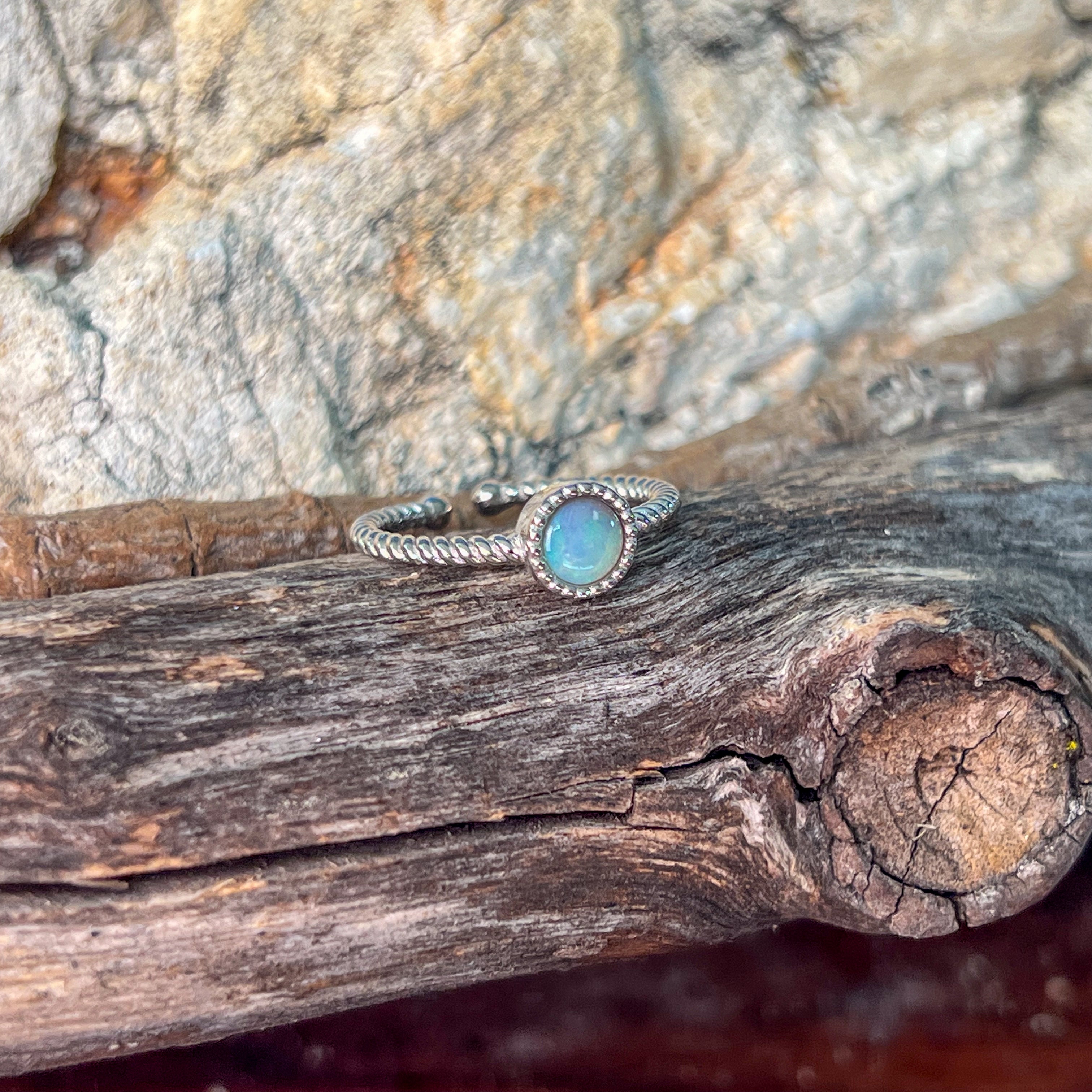 One Sterling Silver White Opal ring bezel straight rope band solitaire