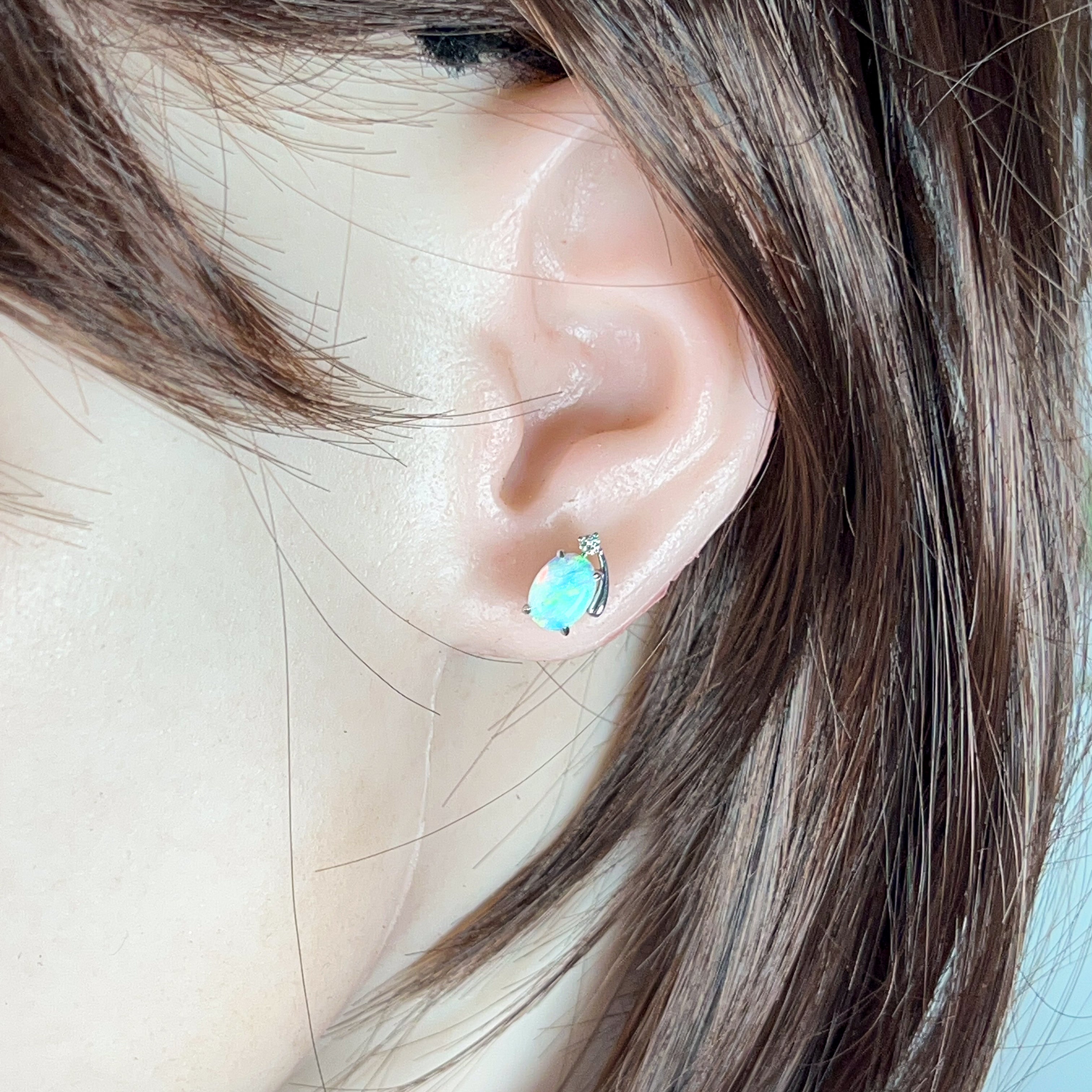 18kt White Gold Crystal Opal 8x6mm and diamond studs