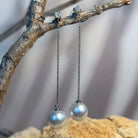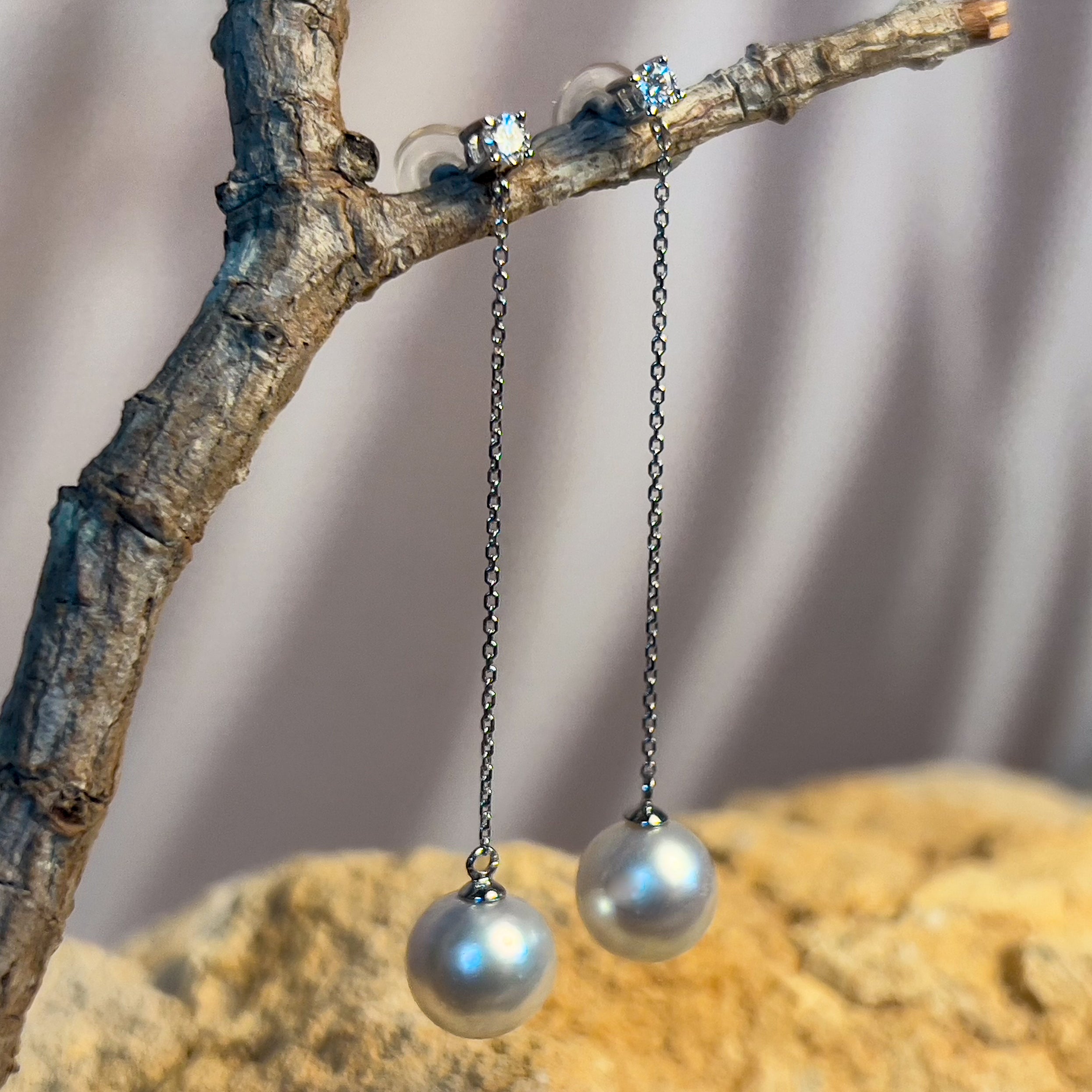 18kt White Gold dangling 8.5-9mm South Sea Pearl and diamond dangling earrings