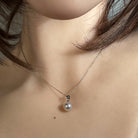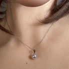 One 14kt white gold solitaire pendant featuring an Australasian South Sea pearl, 8.5-9mm off-round with A grade luster. The classic V-loop design showcases the pearl's natural beauty in timeless elegance. Pendant measures 15.2mm in length and weighs 1.0g. A sophisticated piece that captures the lustrous warmth of a genuine South Sea pearl.