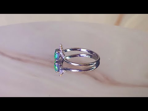 One 14kt White Gold V-shape ringOne Oval Australian Black Opal green flash