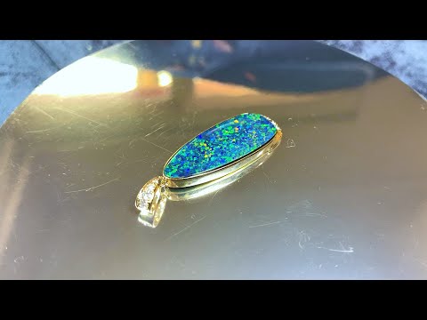 14kt Yellow Gold 12.77ct Opal doublet and Diamond pendant