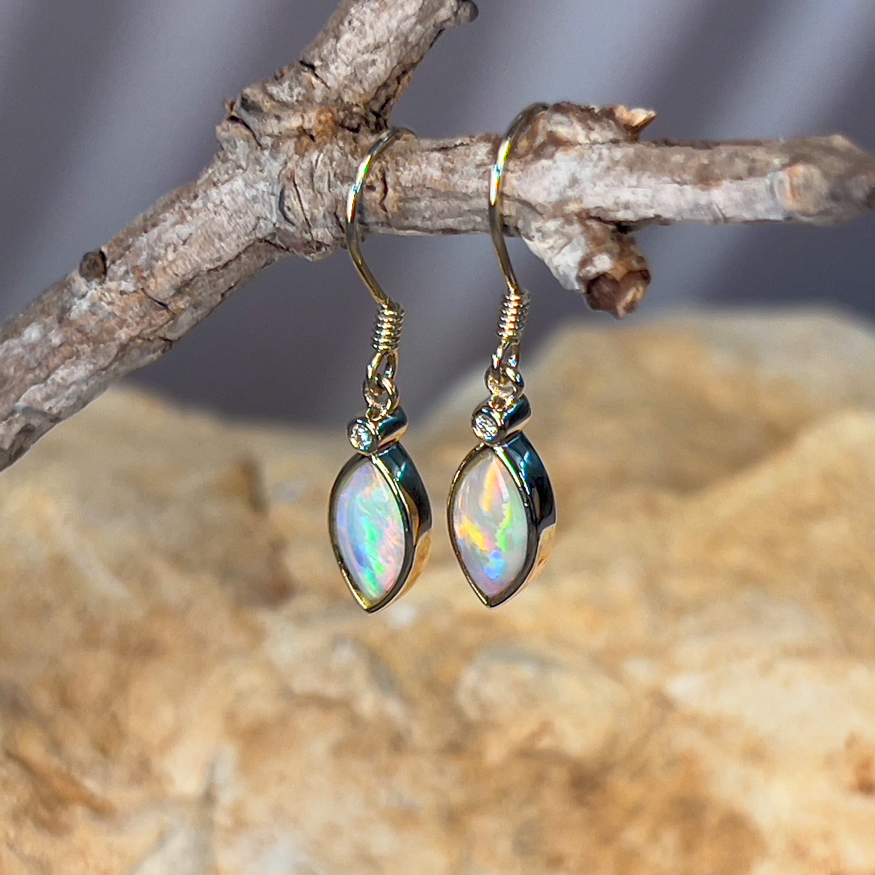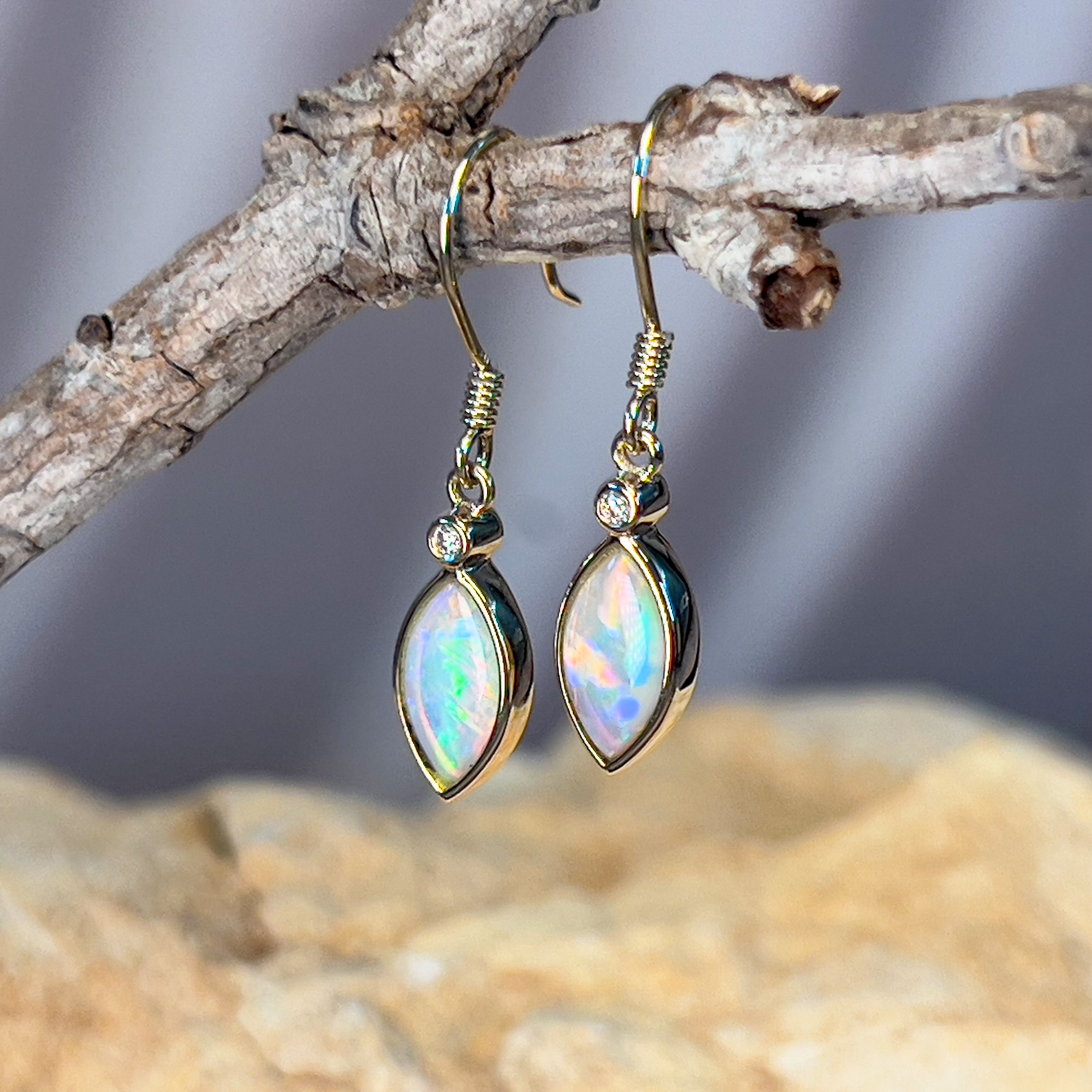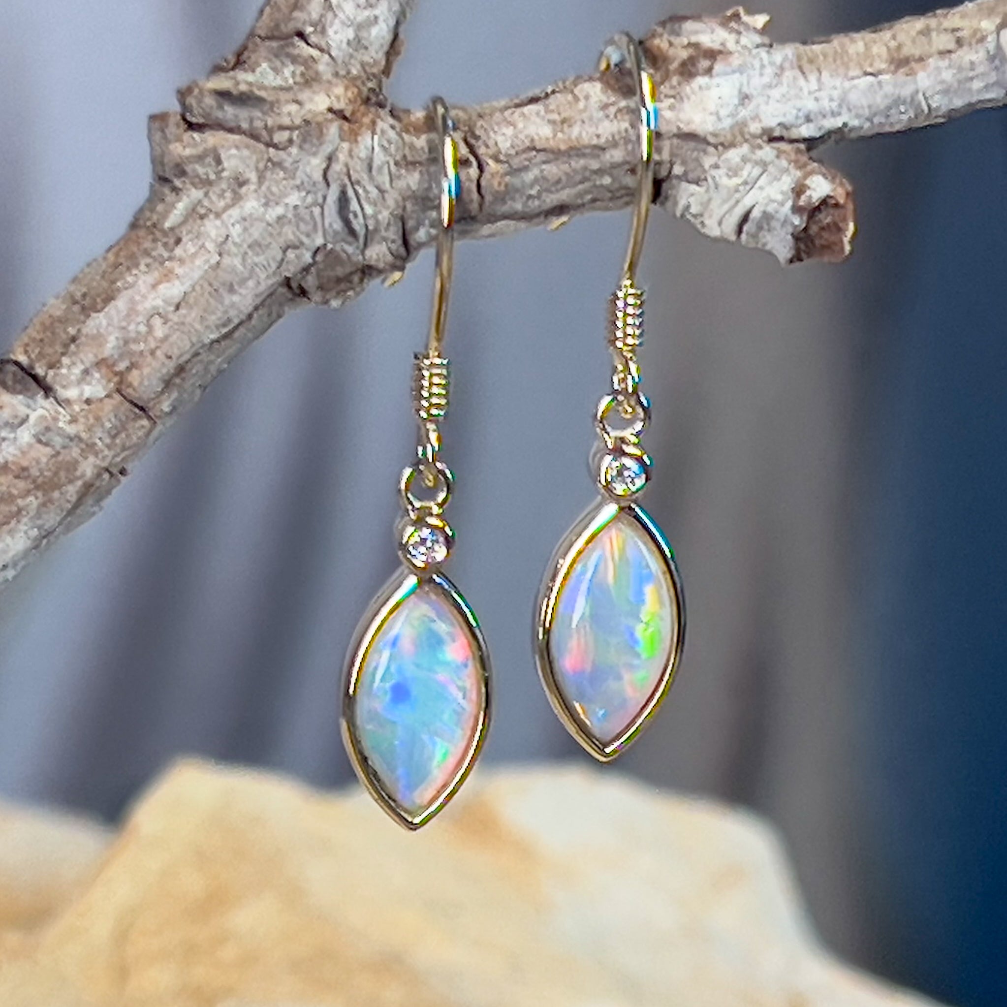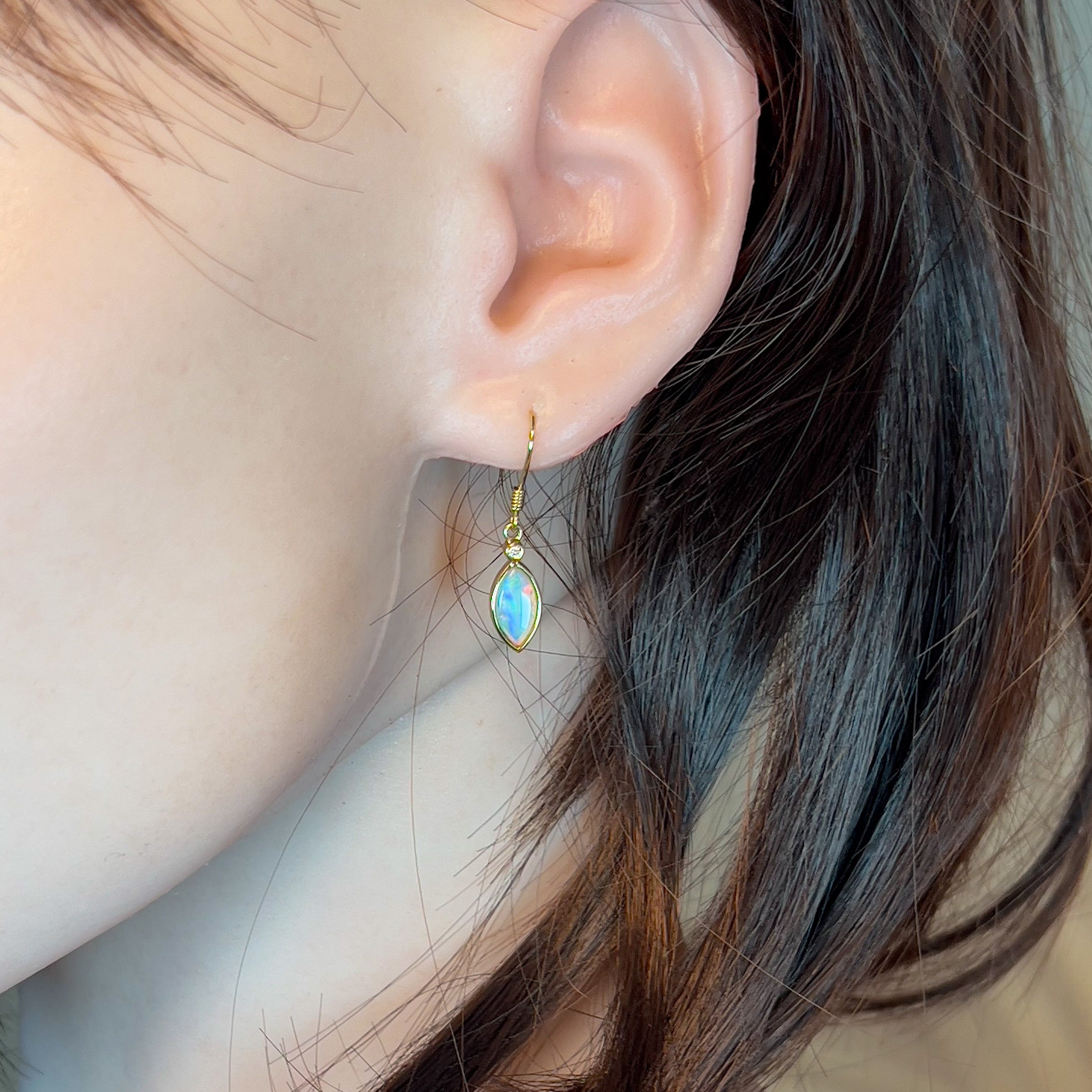 14kt Yellow Gold dangling Marquise shape Crystal Opal earrings