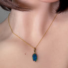 Sparkle and shine with our 14kt yellow gold opal doublet pendant. This dainty necklace features a 1.9ct opal, radiating vibrant colors and charm. Elevate any outfit with the unique and mesmerizing beauty of this pendant. Perfect for everyday wear or special occasions.