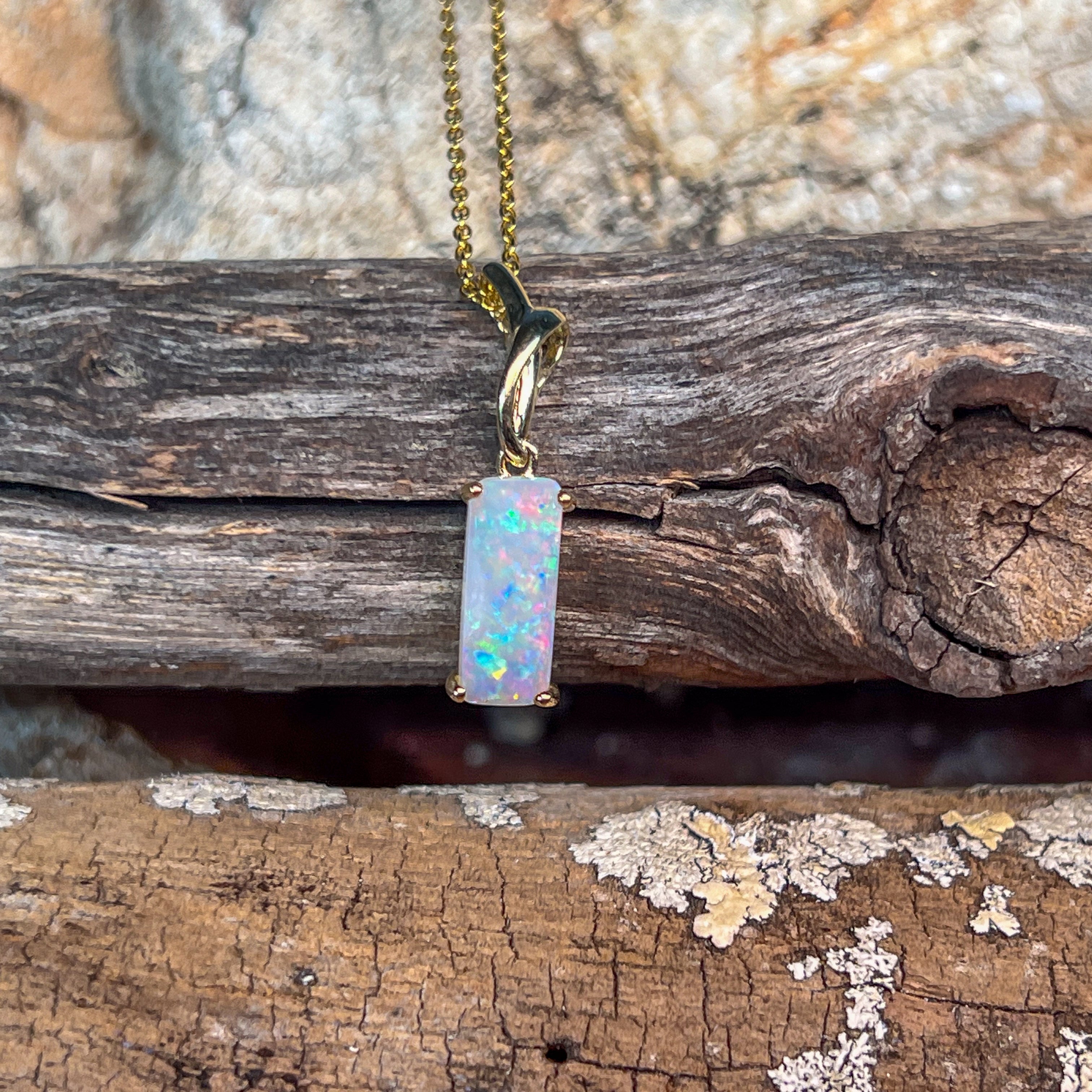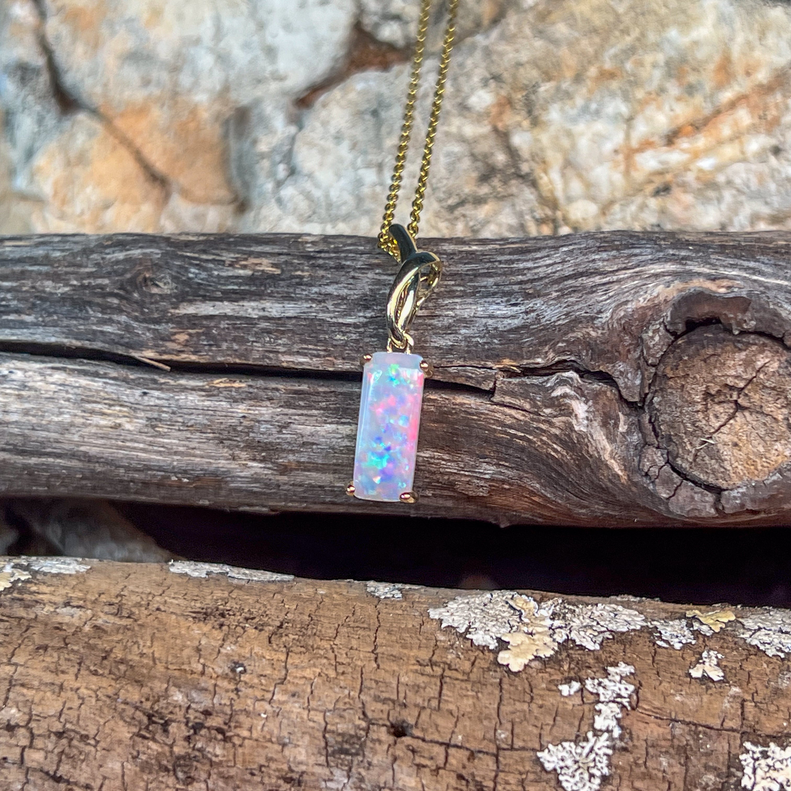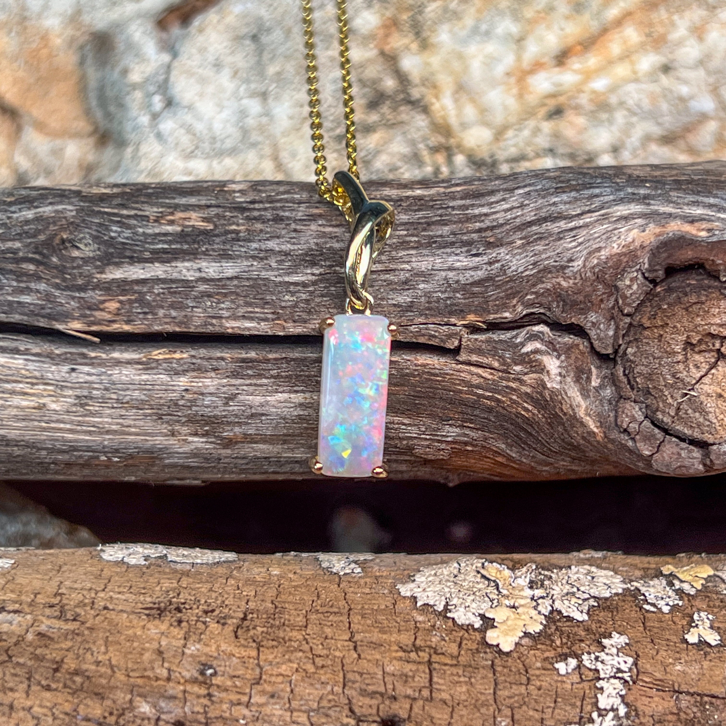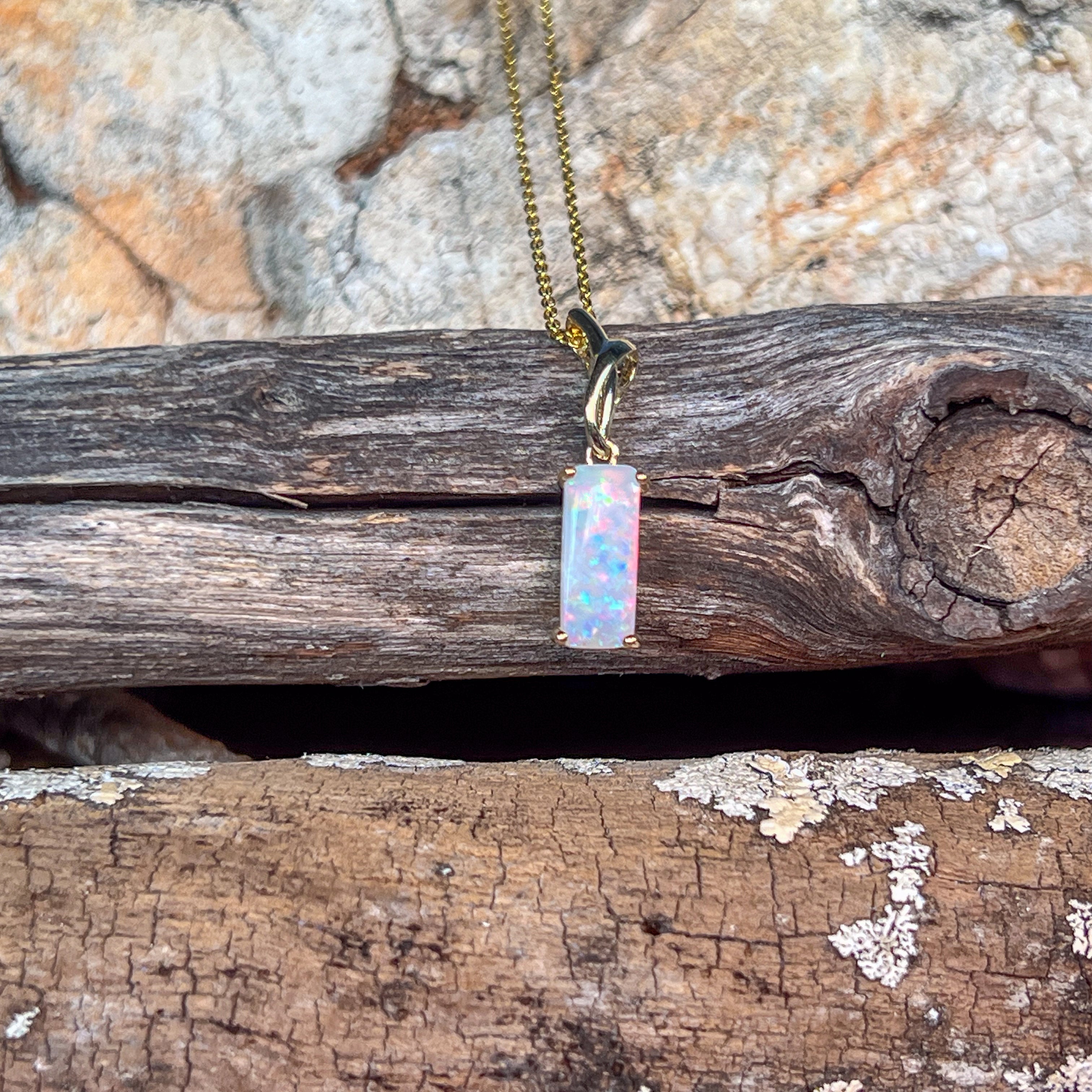 14kt Yellow Gold White Opal 1.38ct Rectangular cut pendant