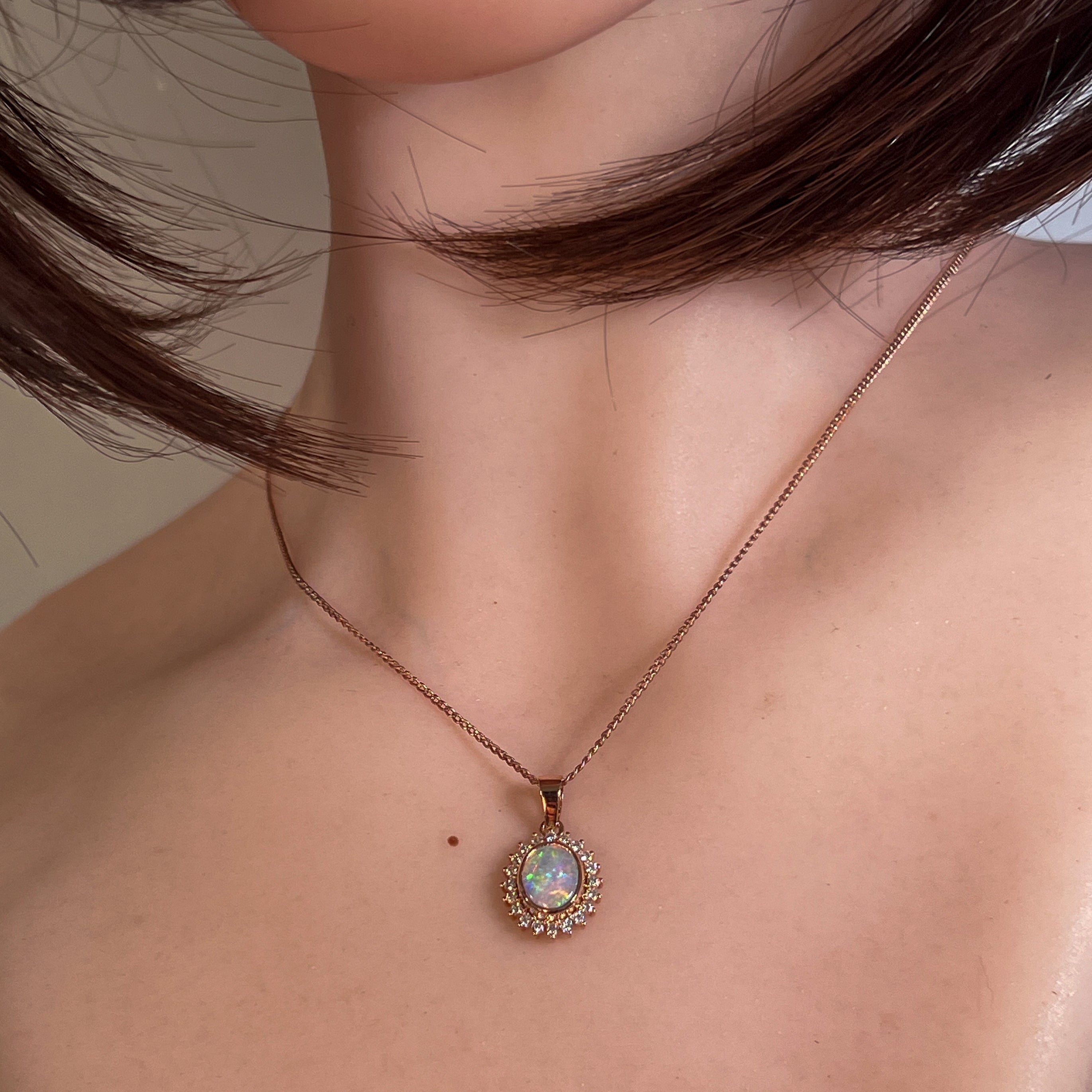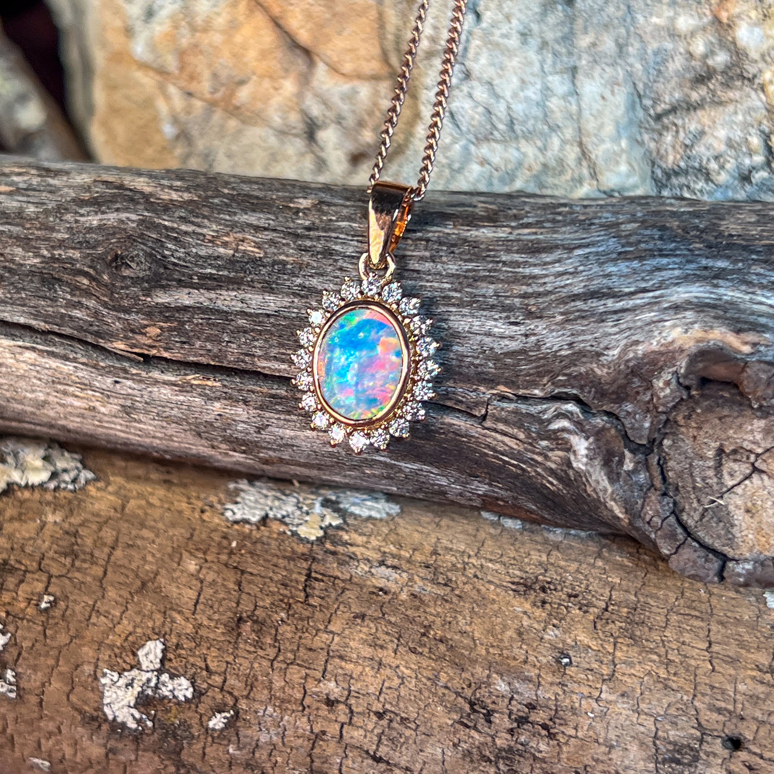 18kt Rose Gold cluster Opal crystal and diamond pendant
