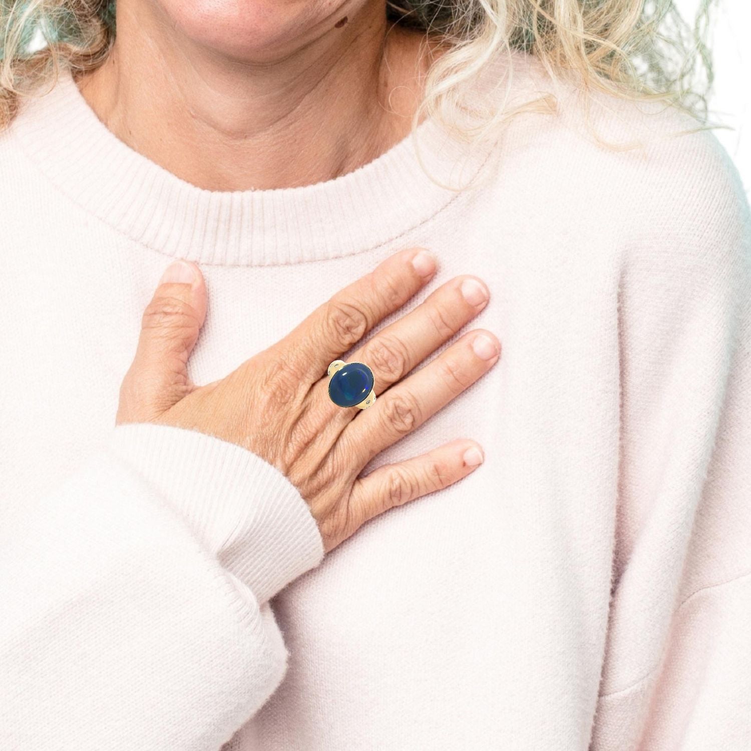 One Australian High Dome Black Opal 6.05ct Blue Green Oval bezel set
