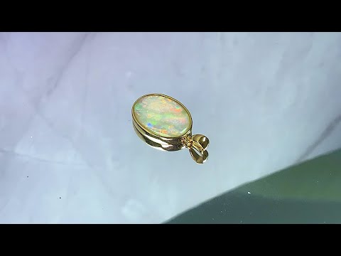 Enhance any outfit with our stunning 18kt Yellow Gold Oval Opal pendant! The classic oval shape adds elegant simplicity to this piece, while the bezel setting ensures the opal stays securely in place. Elevate your style with the natural beauty of Opal.