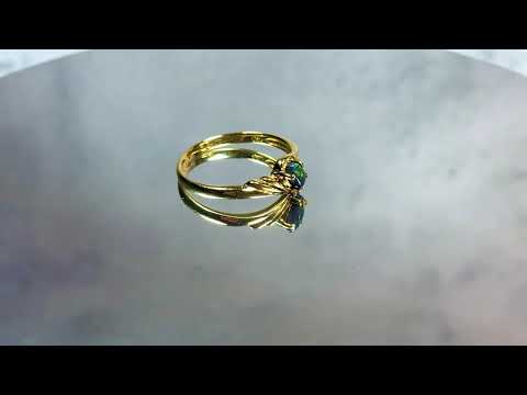 Elevate your style with our 18kt Yellow Gold Black Opal ring. The marquise shape of the opal creates a dainty and elegant look, while the mesmerizing blue, green, and red colours add a touch of luxury. This ring is perfect for those who appreciate delicate yet striking pieces.