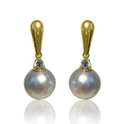 18kt Yellow Gold White South Sea Pearls and Diamond Earrings. Brilliant luster.