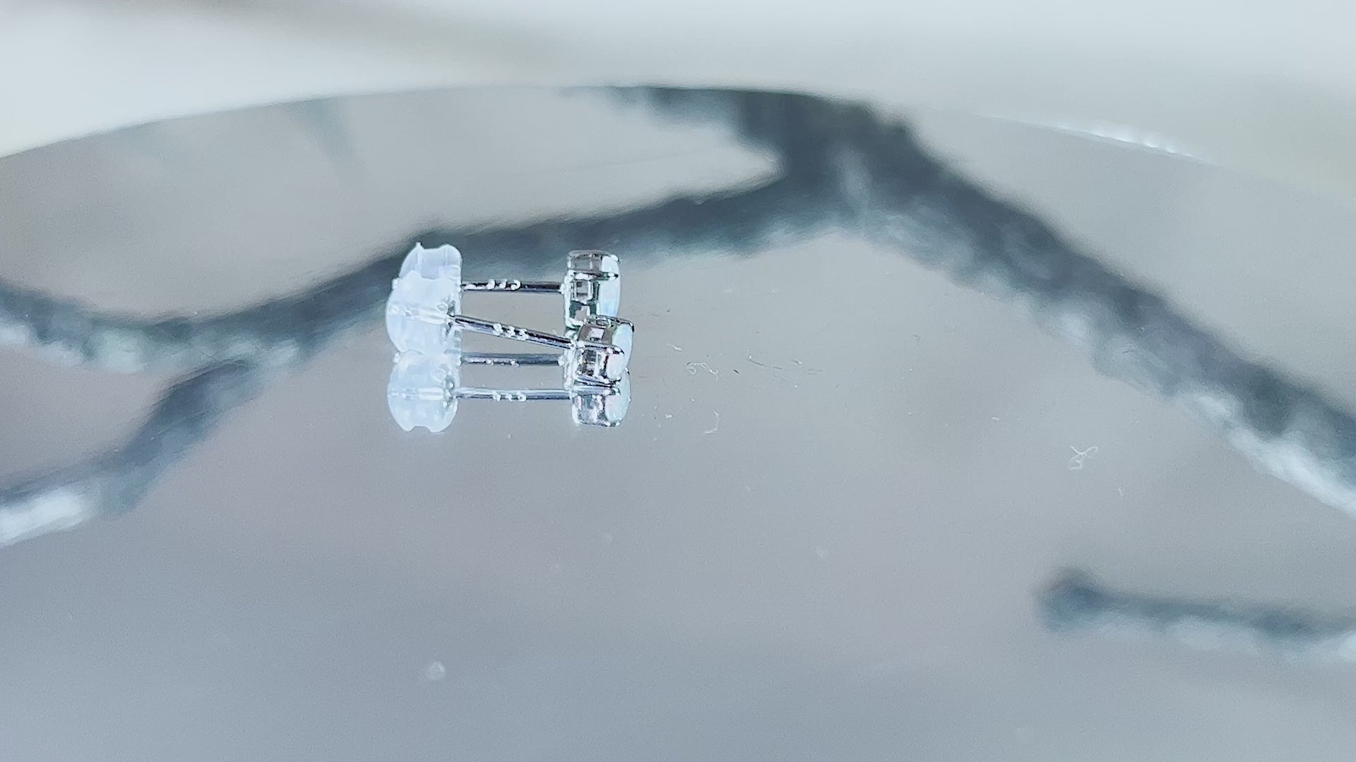 One pair of 9kt White Gold 4 claw set studsPair of 5x3mm Oval Australian Crystal Opals