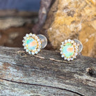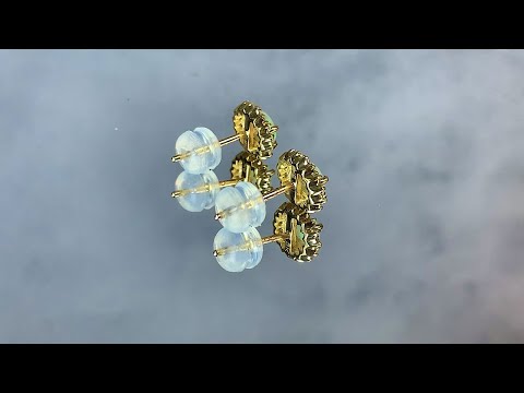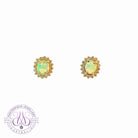 9kt Yellow Gold cluster earrings set with Light Opals and Diamonds
