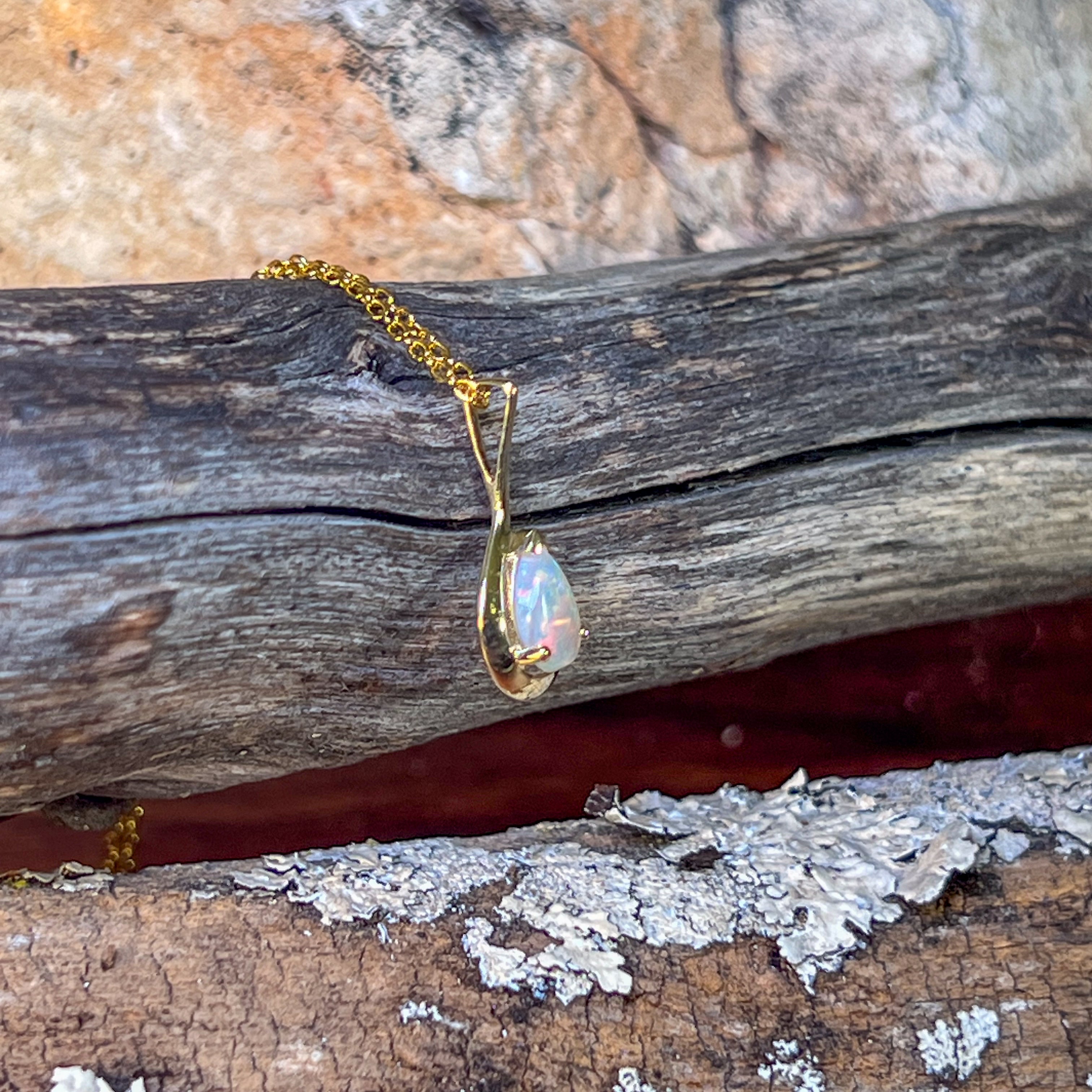 9kt Yellow Gold pear shape 7x5mm Opal crystal pendant