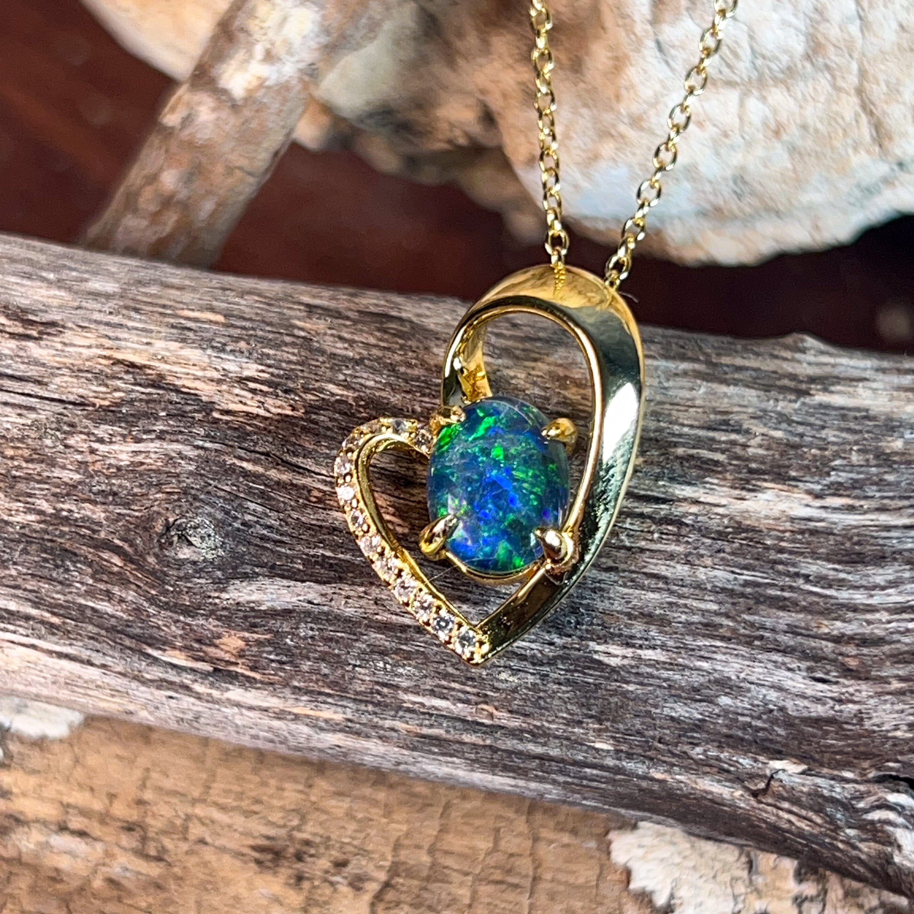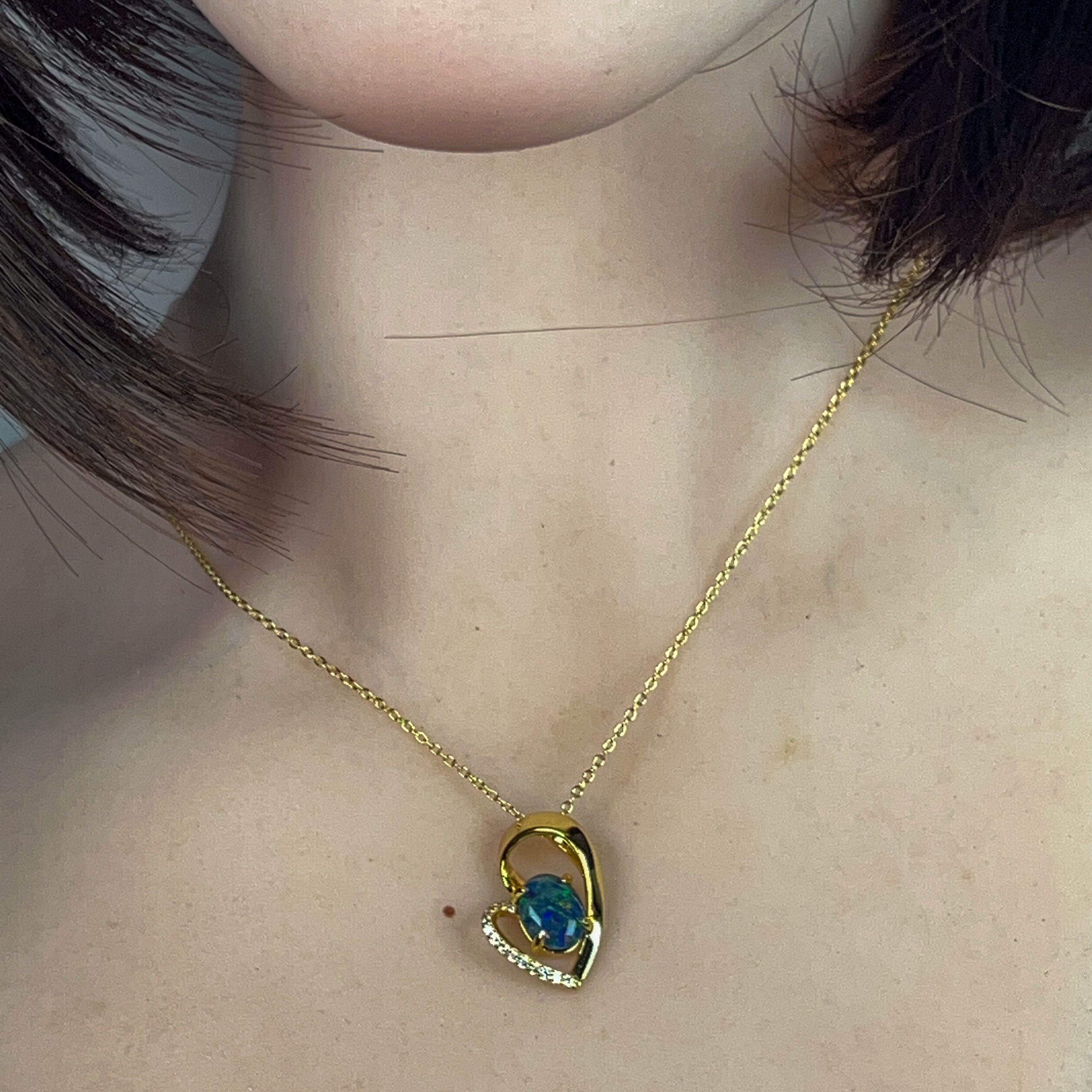 Wear your heart on your sleeve—or better yet, around your neck! This charming gold-plated pendant features a classic heart design showcasing a stunning 9x7mm opal triplet. The play of colour in the opal catches the light beautifully, making it the perfect everyday piece or thoughtful gift. Delicate yet eye-catching, this slider pendant adds a touch of warmth and elegance to any outfit. A timeless treasure that celebrates love and natural beauty.