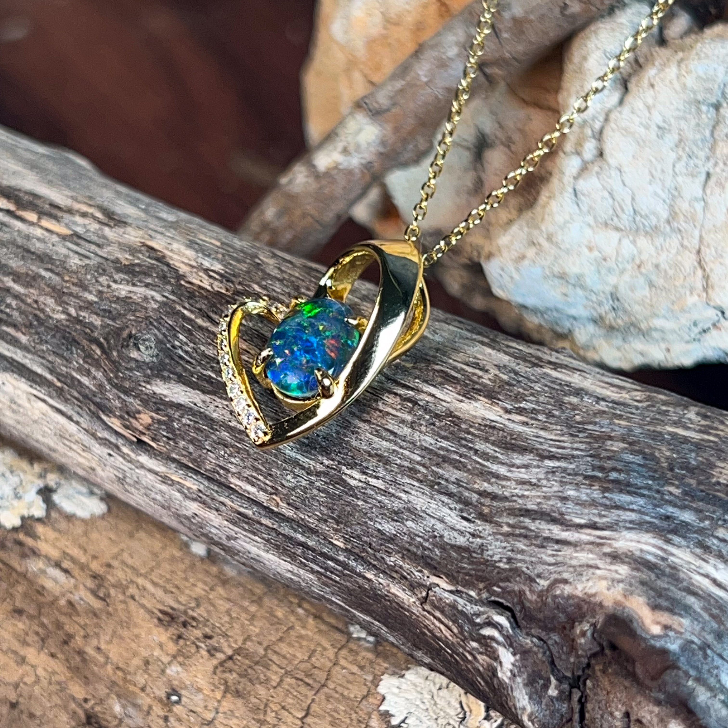 Gold Plated Heart design Opal triplet 9x7mm pendant