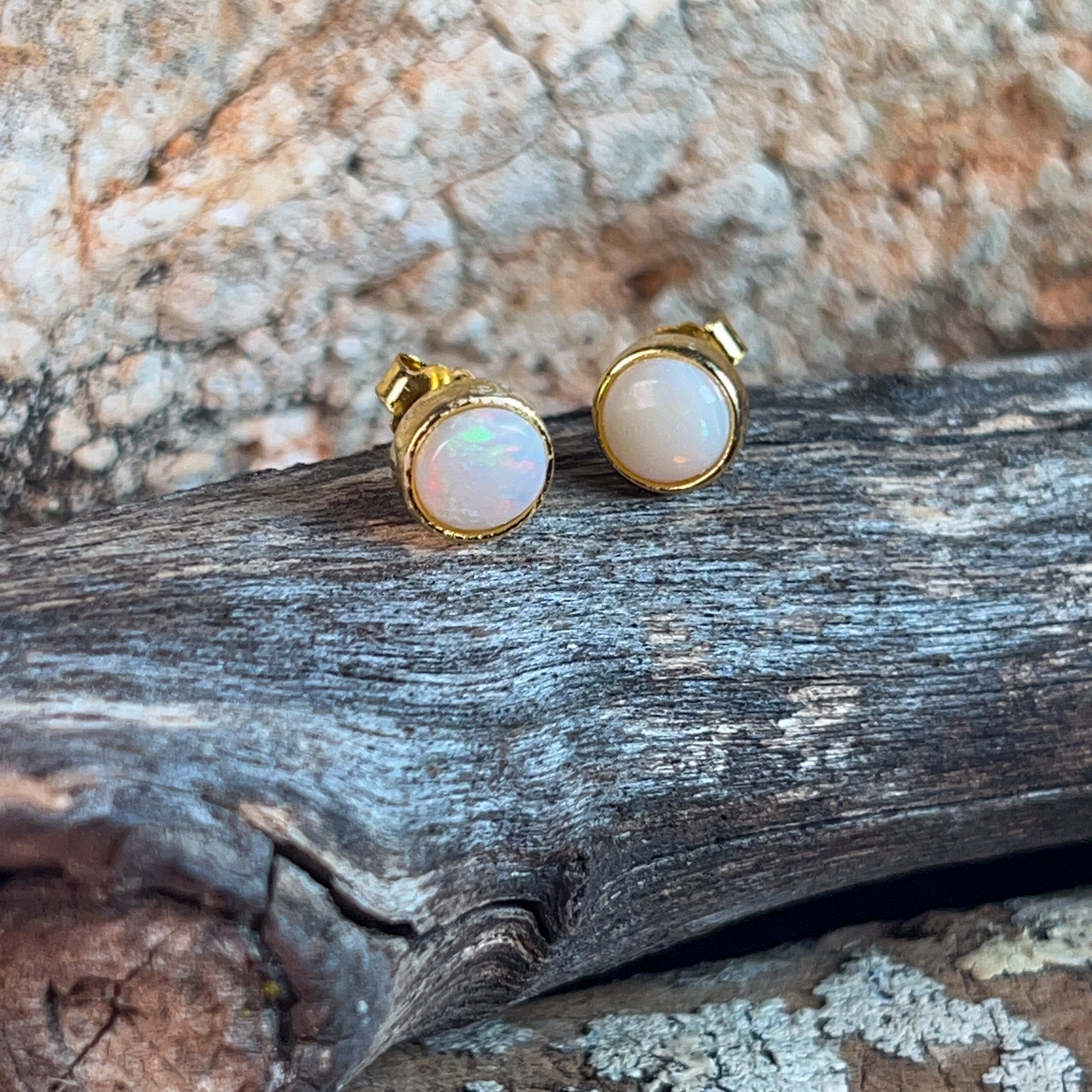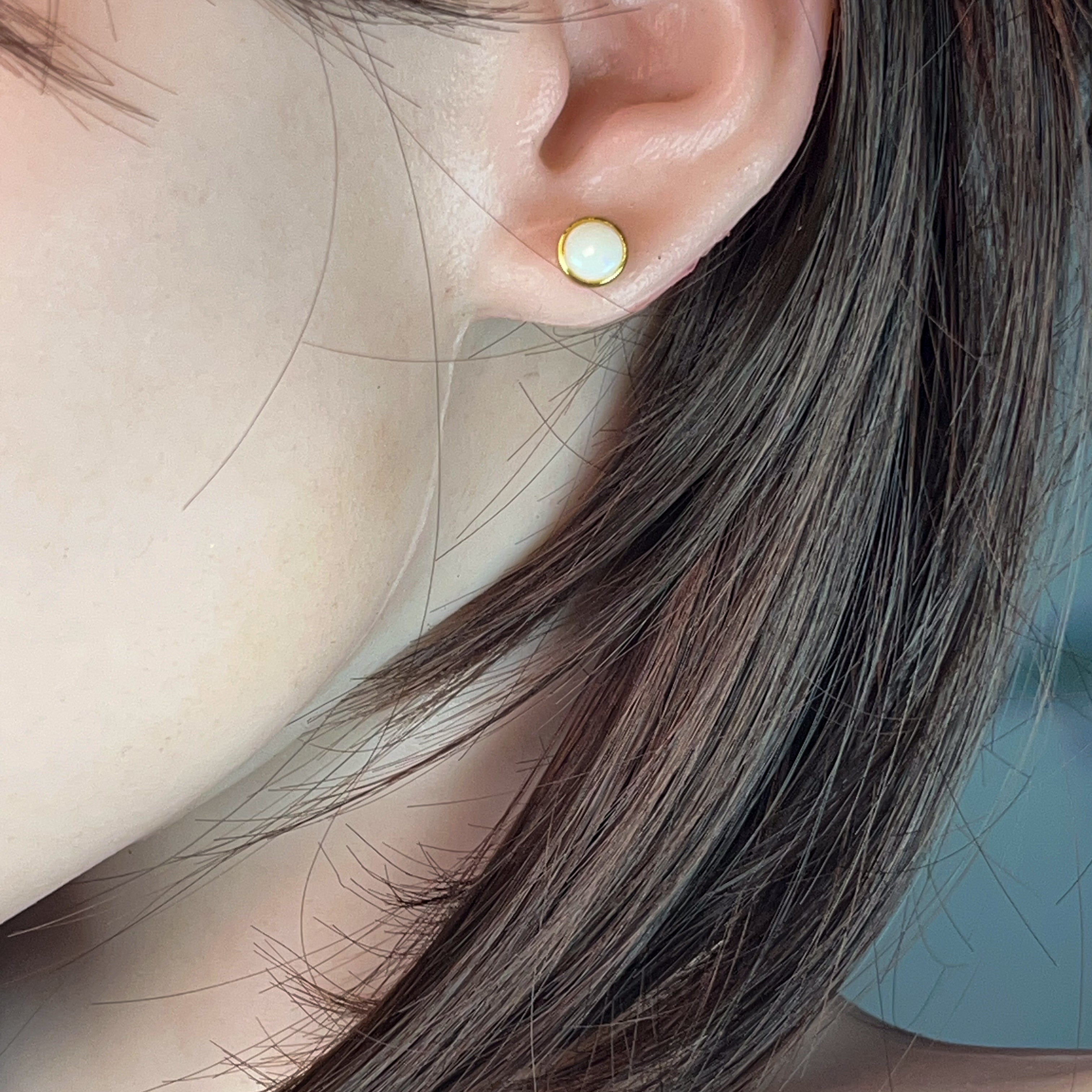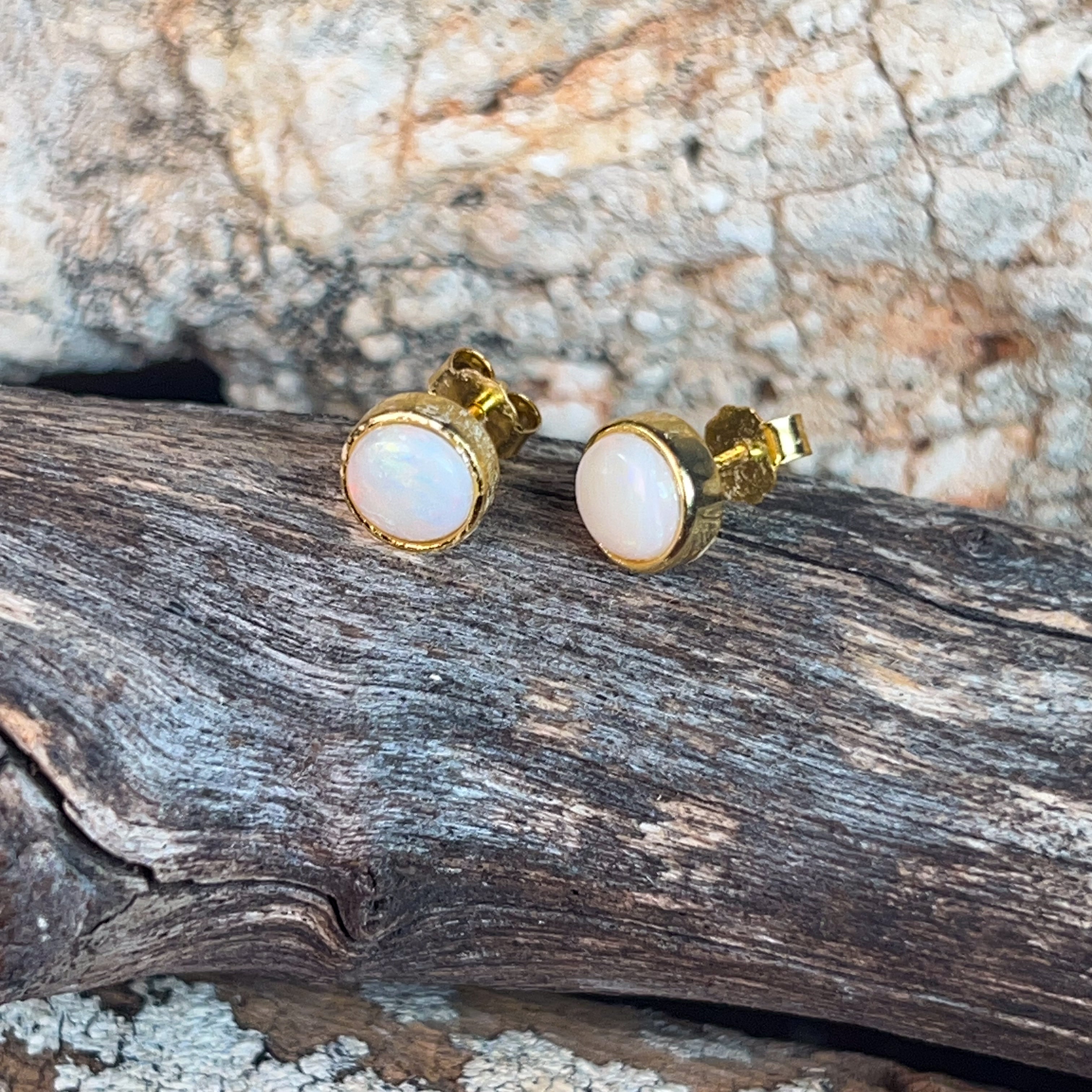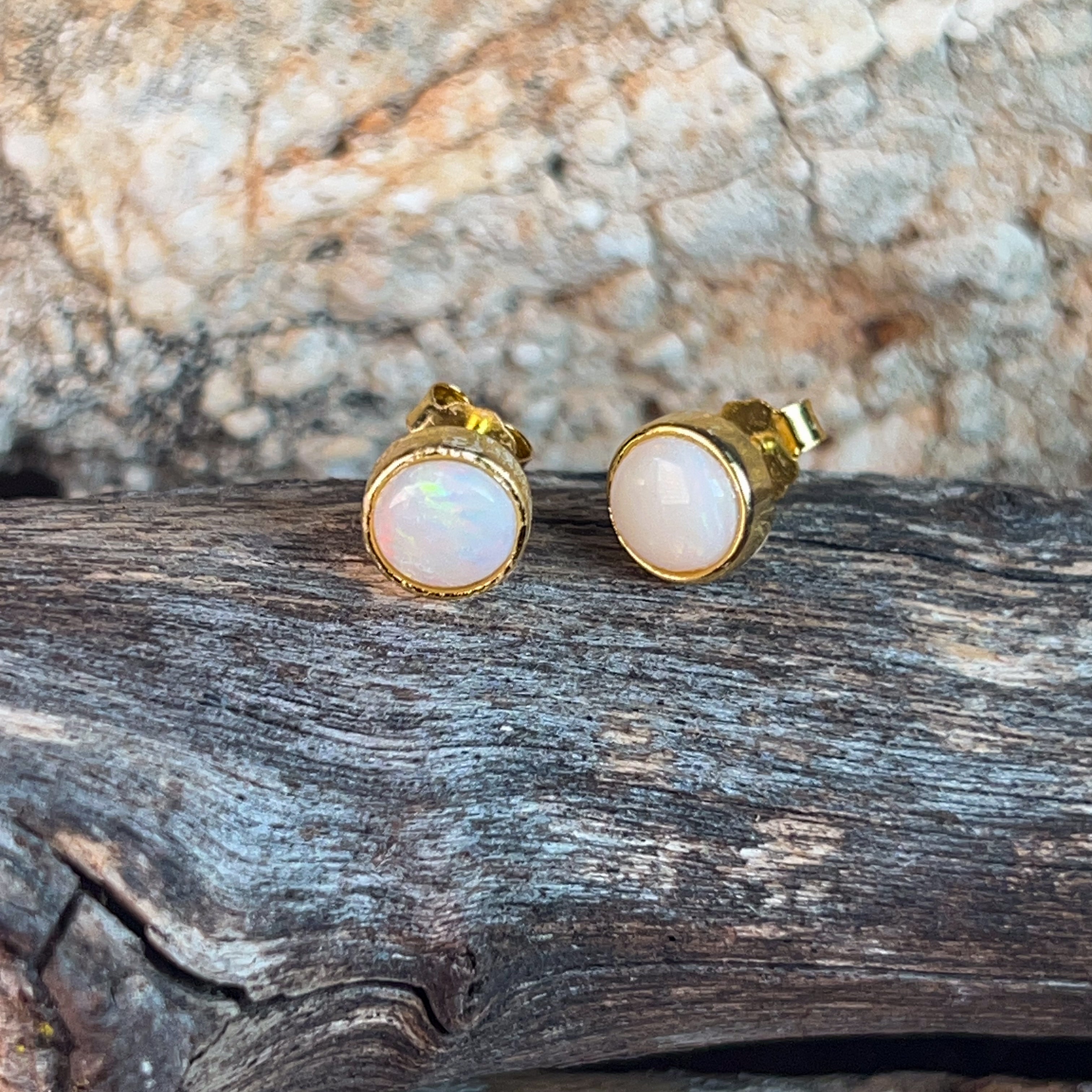Tiny treasures that pack a sparkle! These delicate stud earrings feature lustrous white opals nestled in gleaming gold-plated silver bezels. At just 6mm, they're the perfect everyday companion—sophisticated enough for the office, charming enough for brunch. The classic round setting lets your opals take centre stage, catching light with every turn of your head. Effortlessly elegant and endlessly wearable.