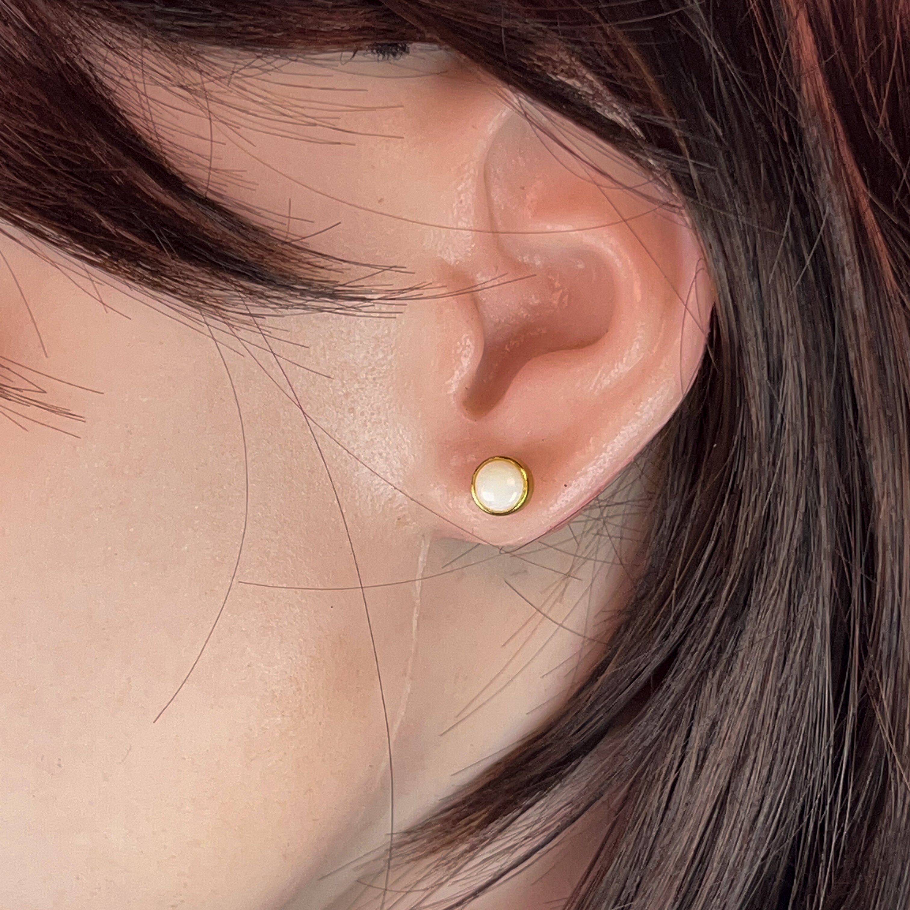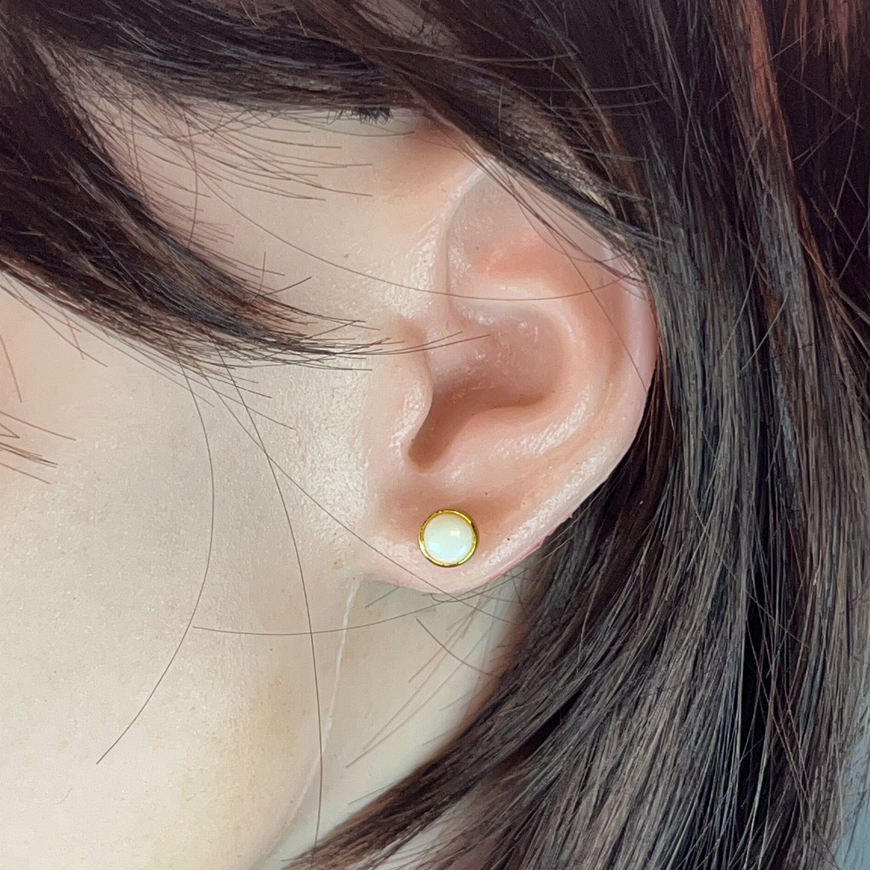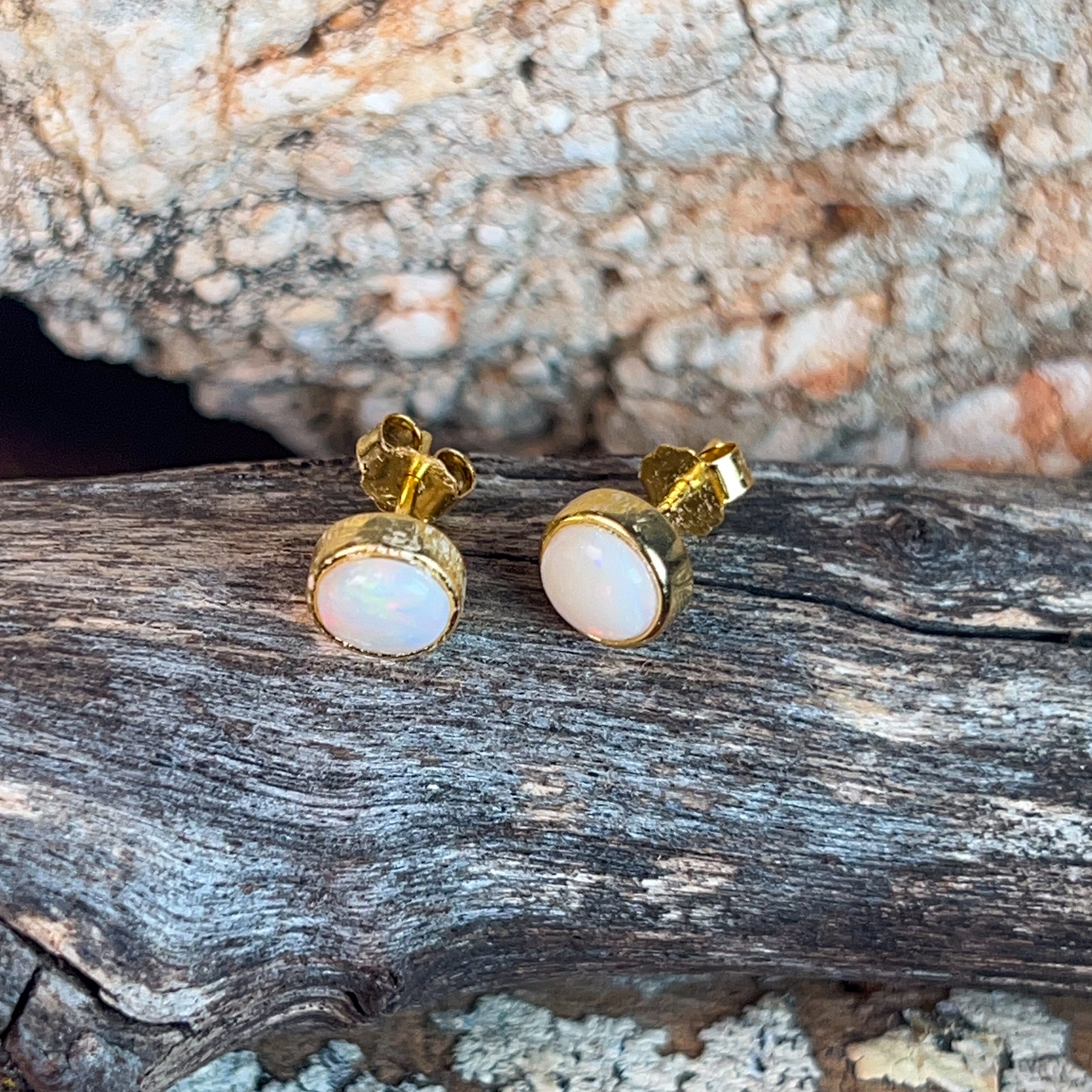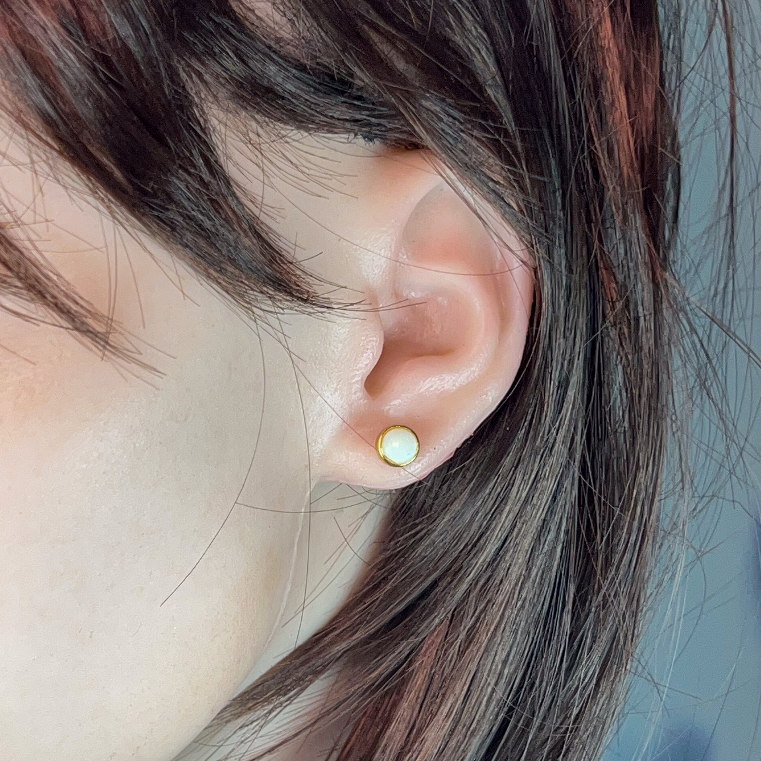 Tiny treasures that pack a sparkle! These delicate stud earrings feature lustrous white opals nestled in gleaming gold-plated silver bezels. At just 6mm, they're the perfect everyday companion—sophisticated enough for the office, charming enough for brunch. The classic round setting lets your opals take centre stage, catching light with every turn of your head. Effortlessly elegant and endlessly wearable.