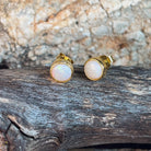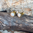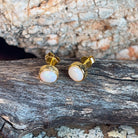 Gold Plated Silver 6mm White Opal Round bezel set stud earrings