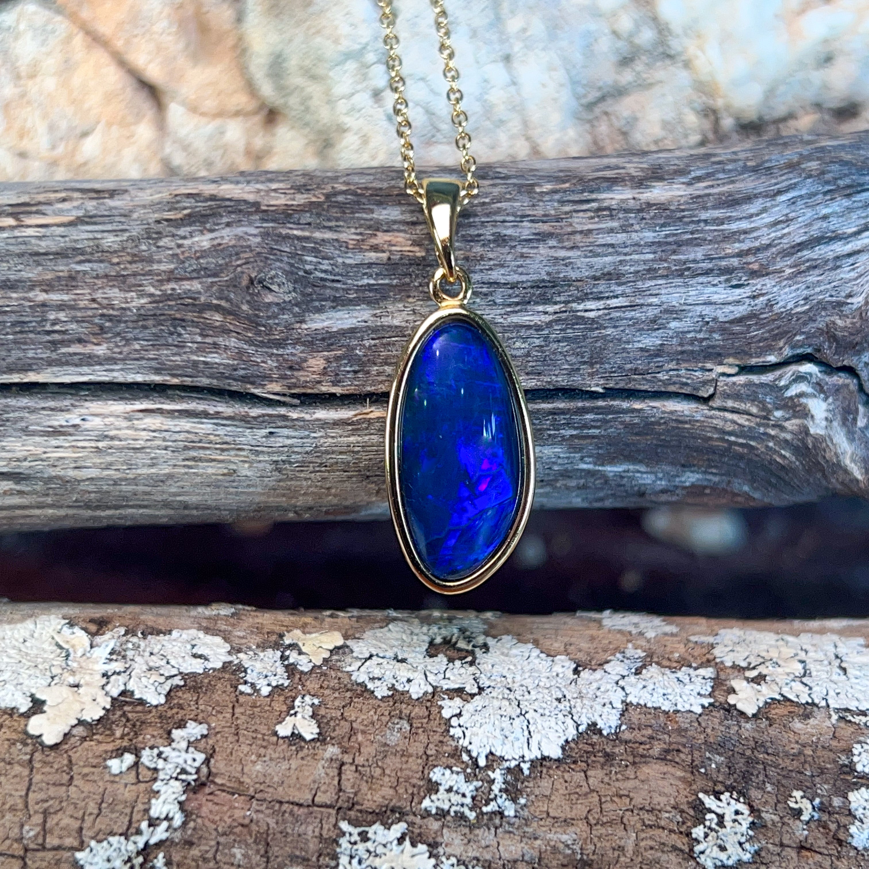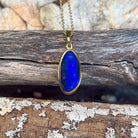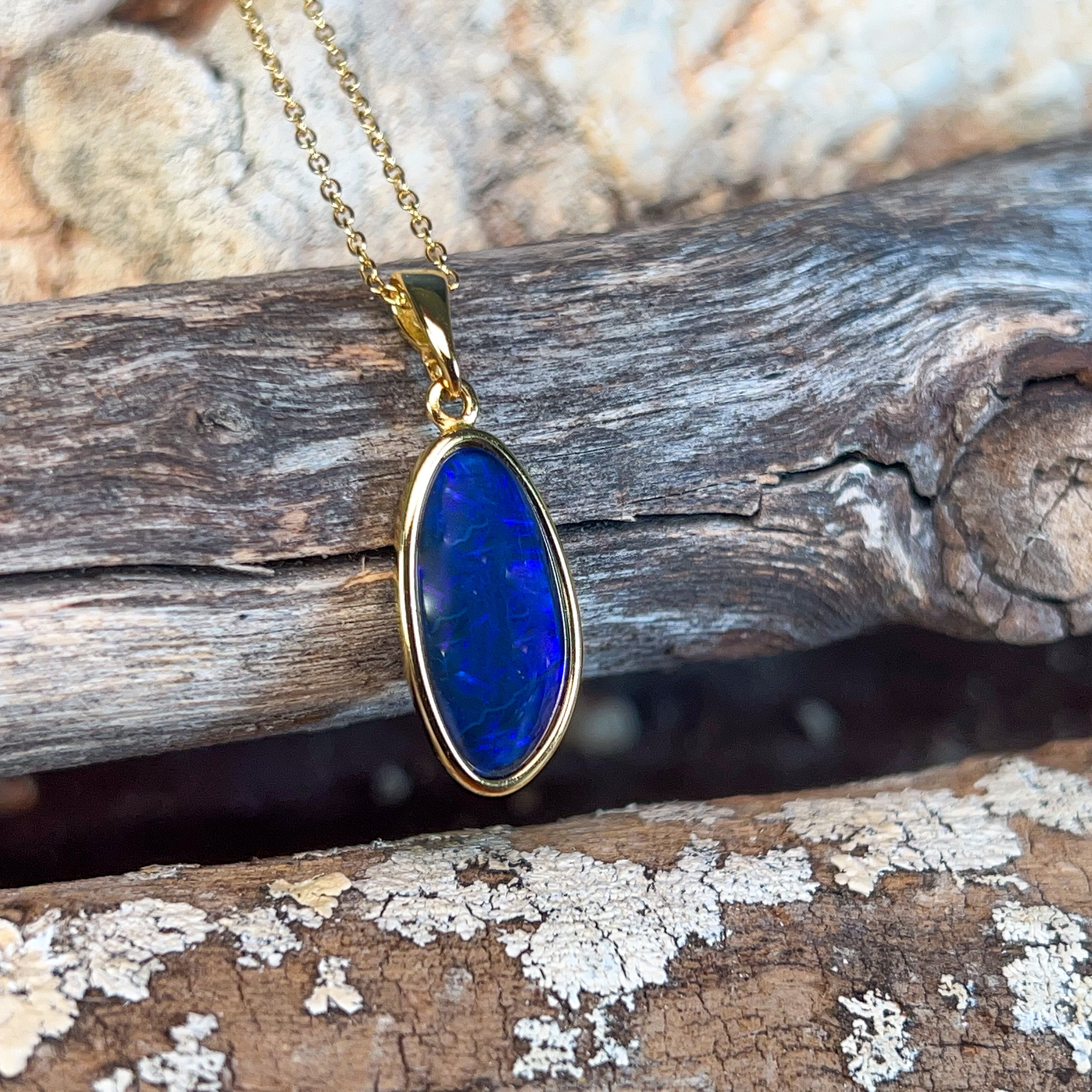 Discover the captivating allure of this stunning gold plated silver blue opal triplet pendant. Measuring 21x10mm, this piece showcases a deep, mesmerizing blue that draws the eye and captures light beautifully. The triplet construction ensures durability while preserving the opal's natural brilliance and colour saturation. Perfect for those seeking a sophisticated statement piece that combines elegance with the timeless appeal of genuine opal. Whether worn daily or reserved for special occasions, this pendant transforms any ensemble into something truly extraordinary.