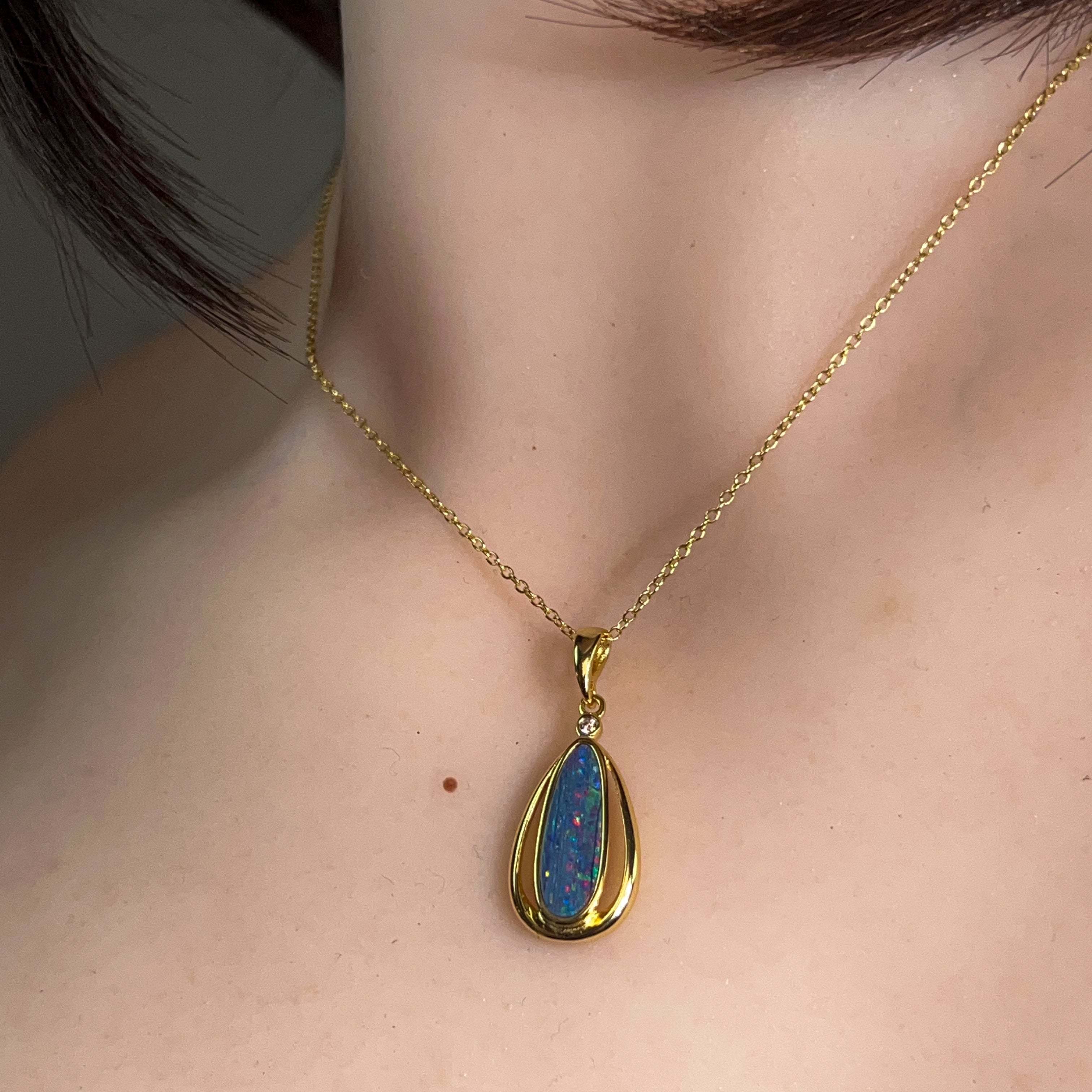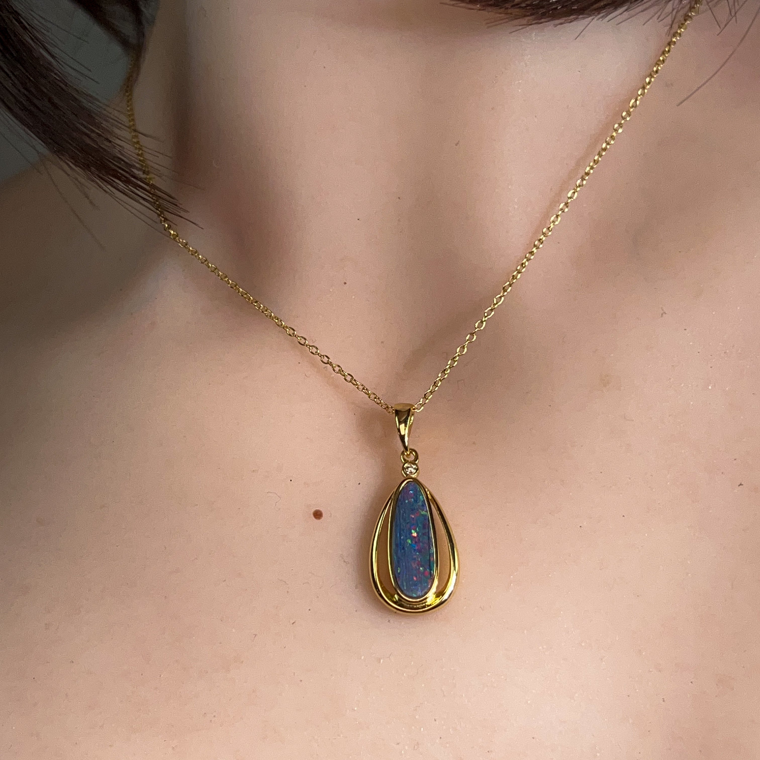 Gold Plated Silver Opal doublet 16x6mm pendant