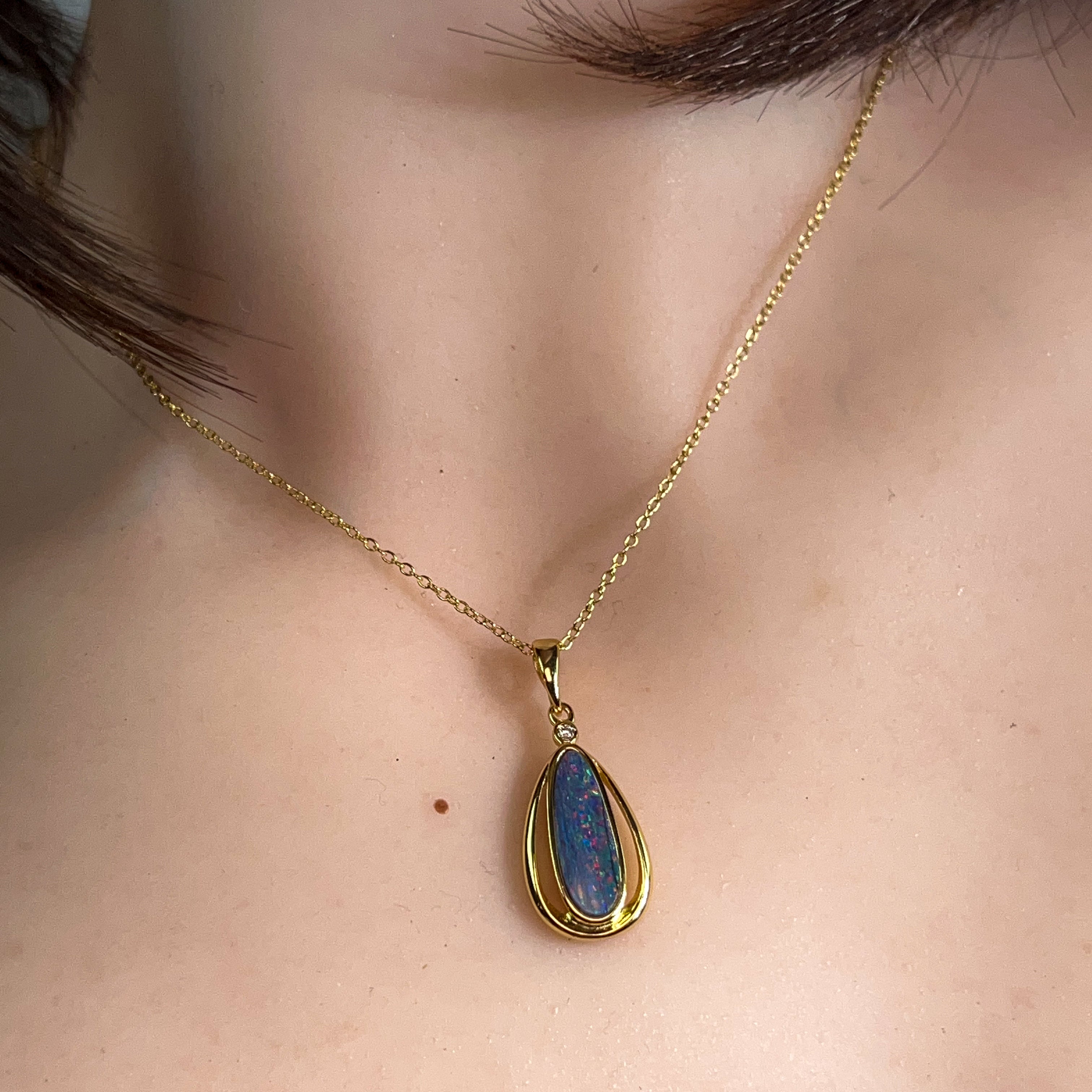Elevate your jewellery collection with this exquisite Gold Plated Silver Opal Doublet pendant. Measuring 16x6mm, this refined piece showcases the mesmerising play-of-colour that makes opals truly captivating. The luxurious gold plating over sterling silver creates a sophisticated two-tone aesthetic, while the doublet construction offers exceptional value without compromising on beauty. Perfect for layering or wearing as a standalone statement, this pendant captures light with every movement, making it an investment piece that transcends trends. Ideal for those who appreciate understated elegance with a touch of natural wonder.