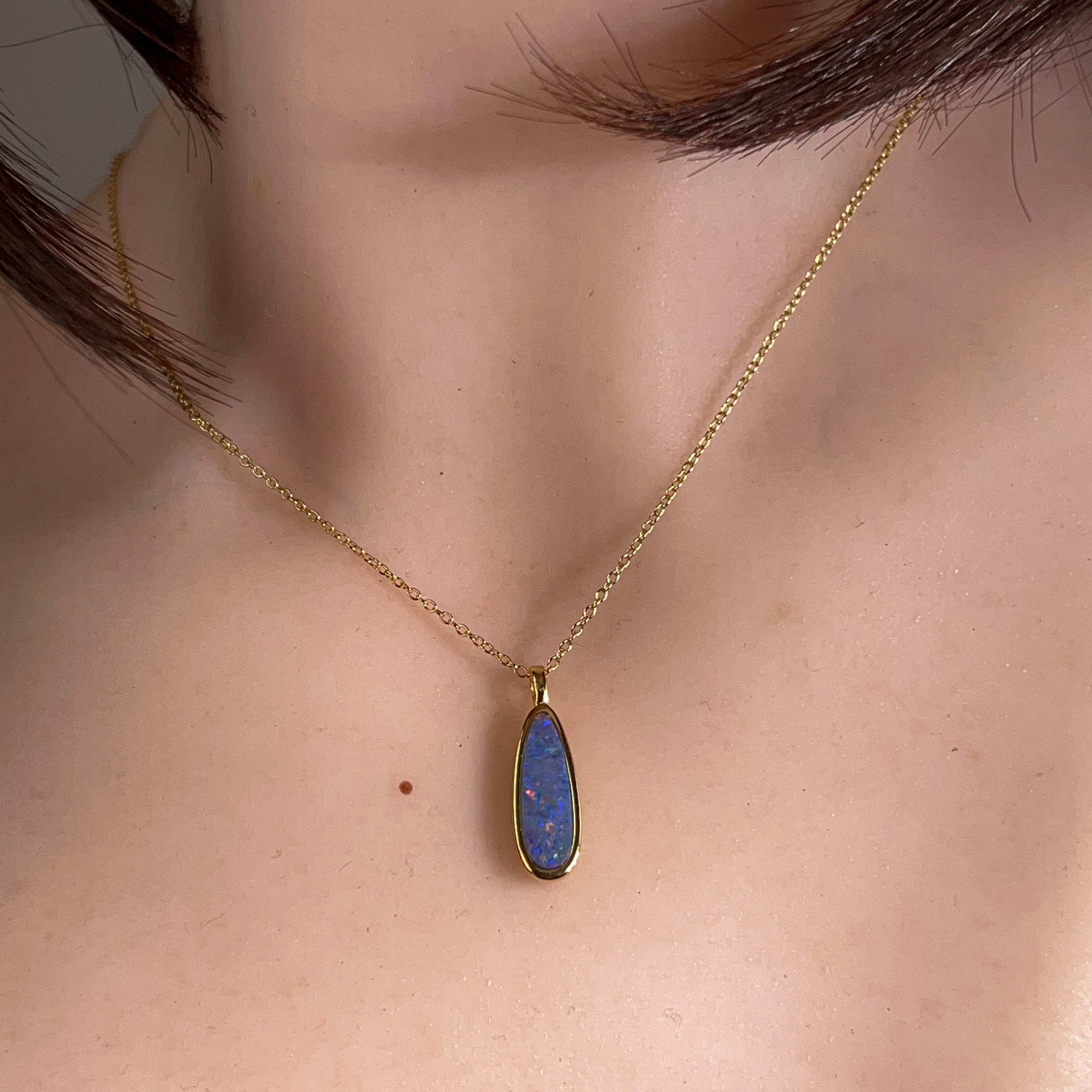 Gold Plated Silver opal doublet 17x6mm long pendant