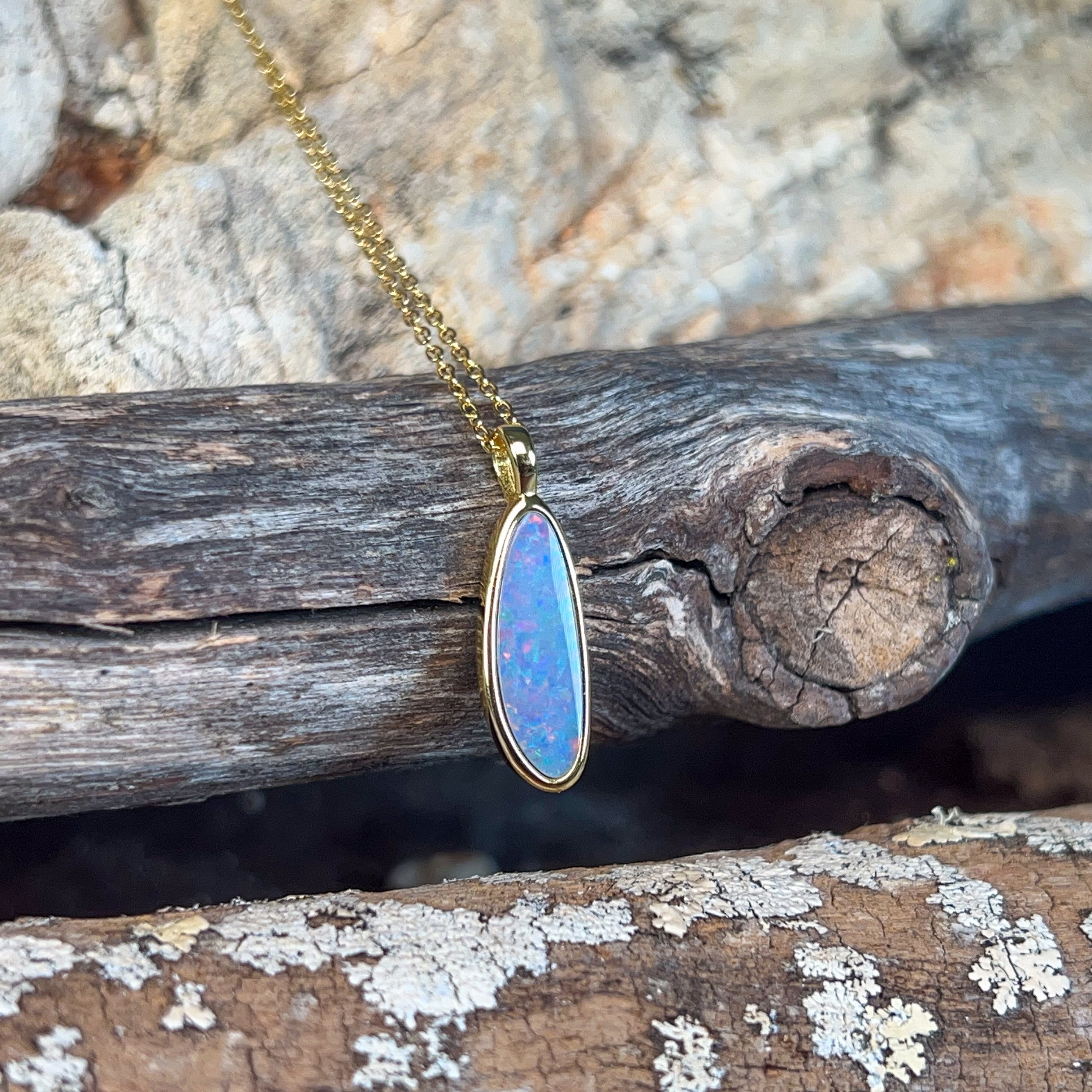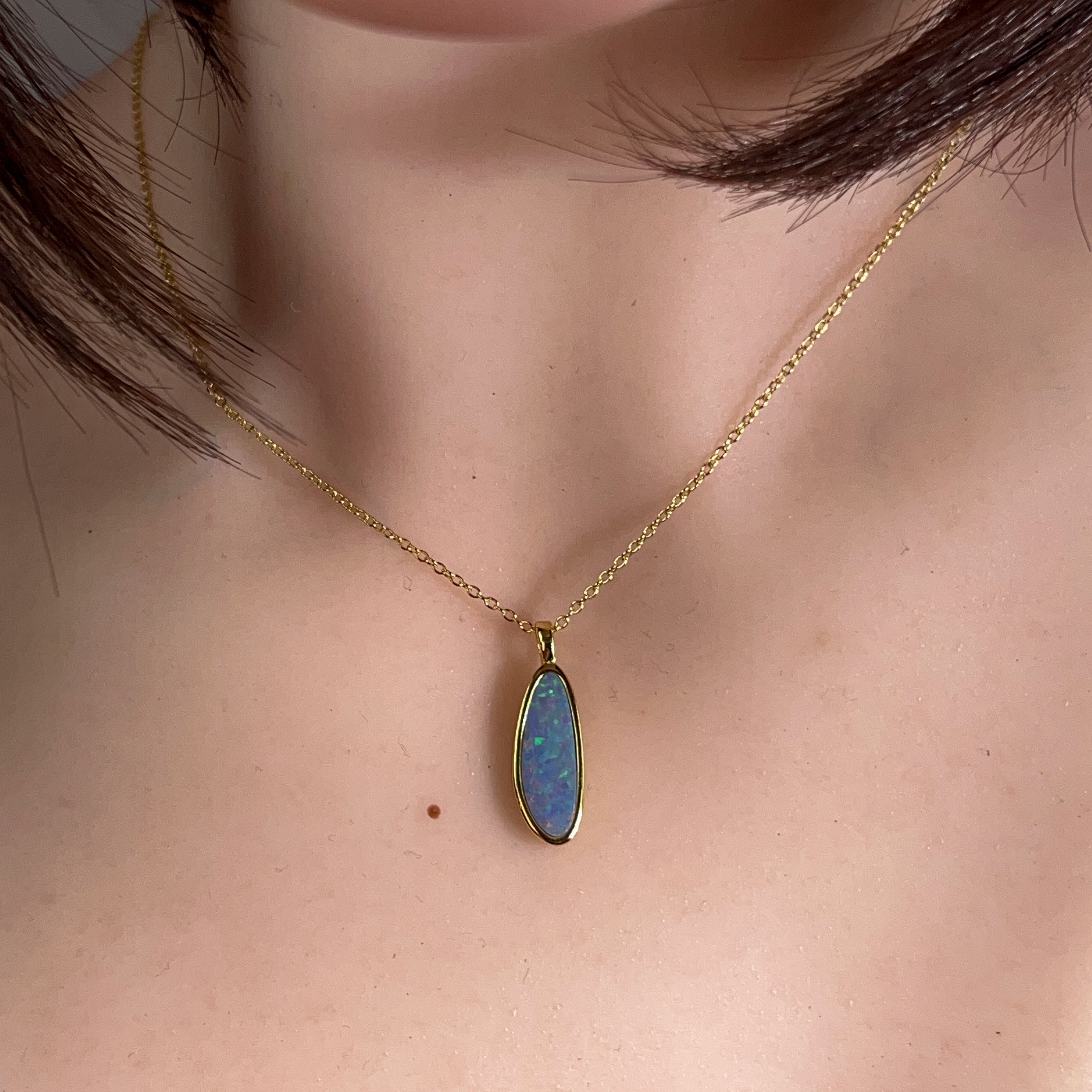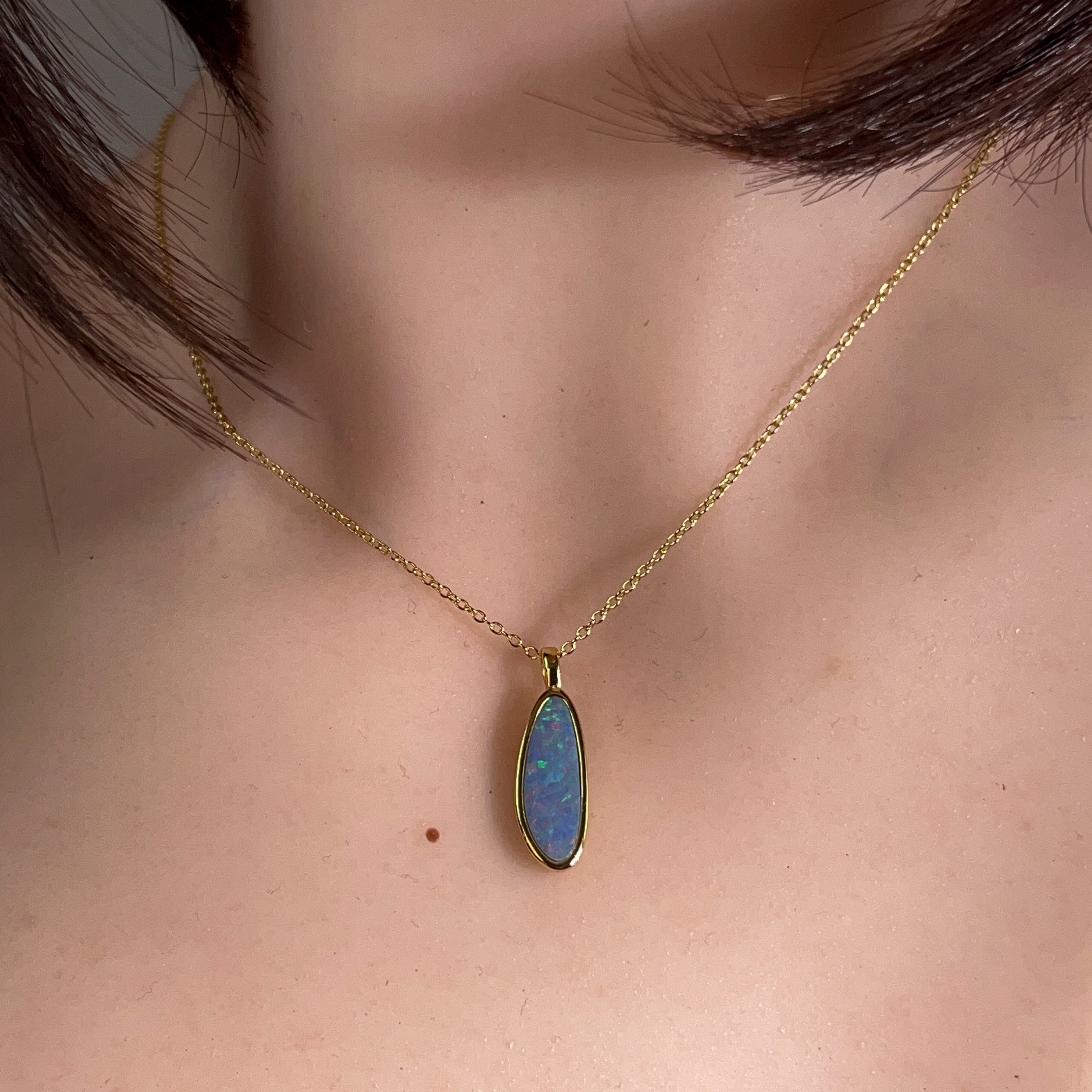 Gold Plated Silver Opal doublet 17x6mm pendant