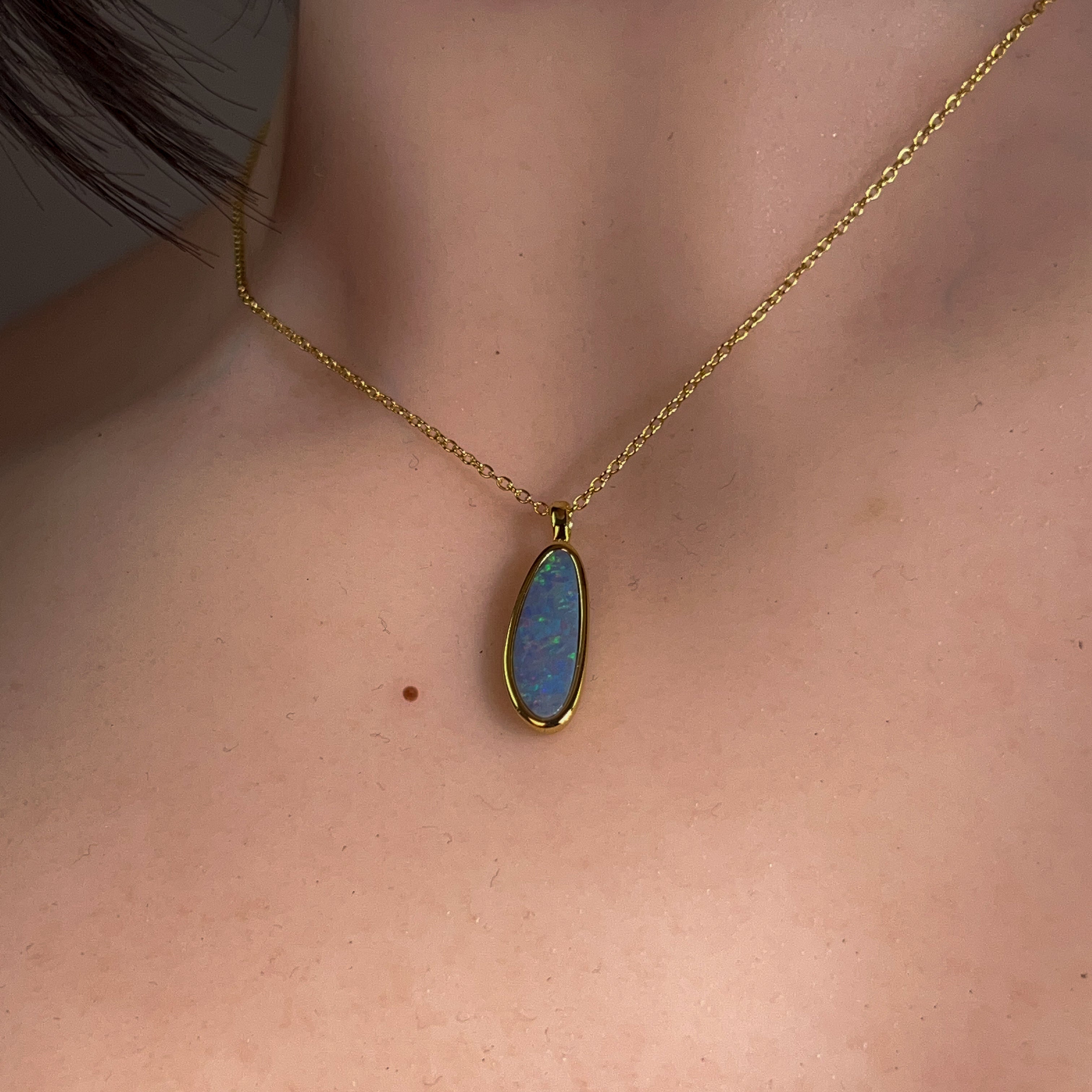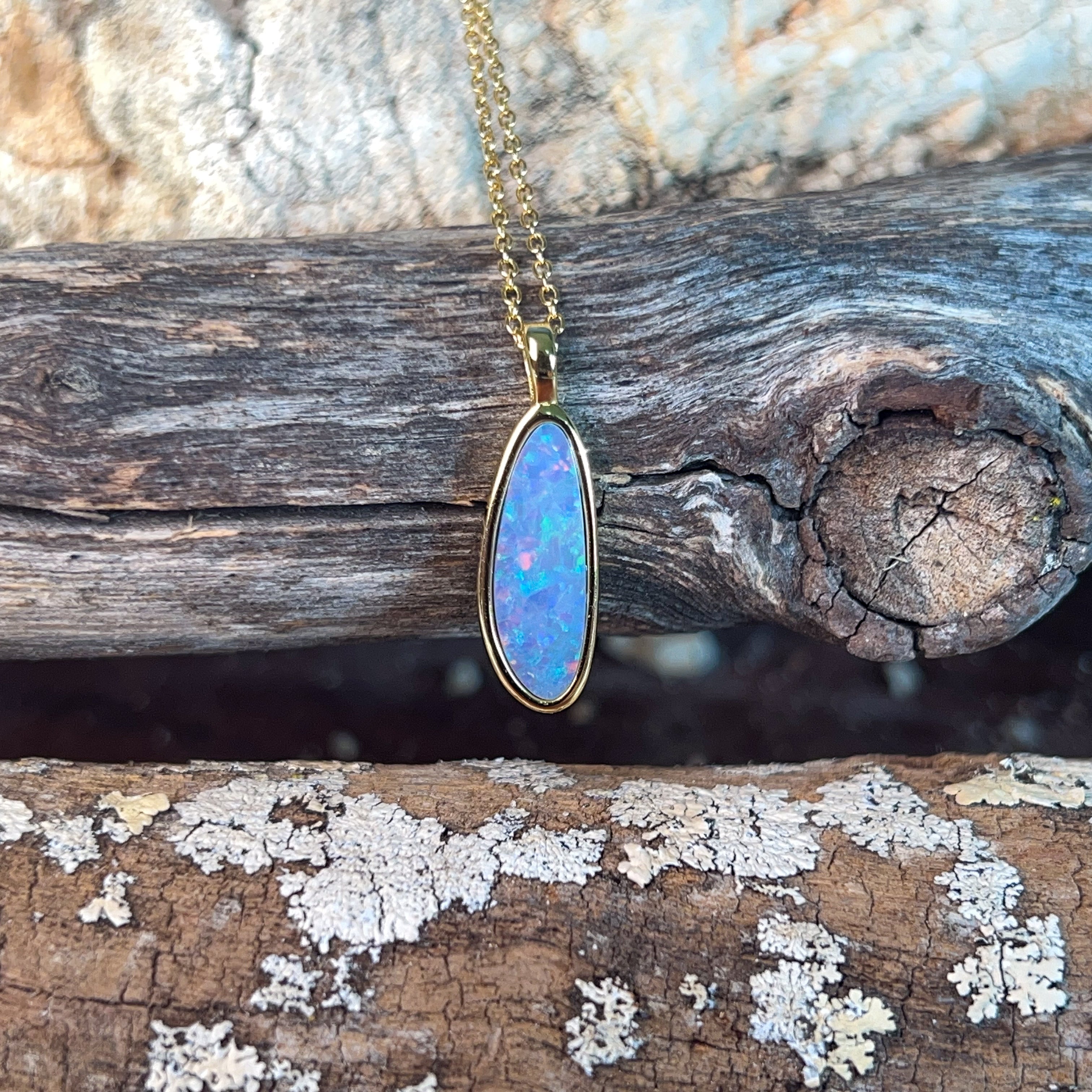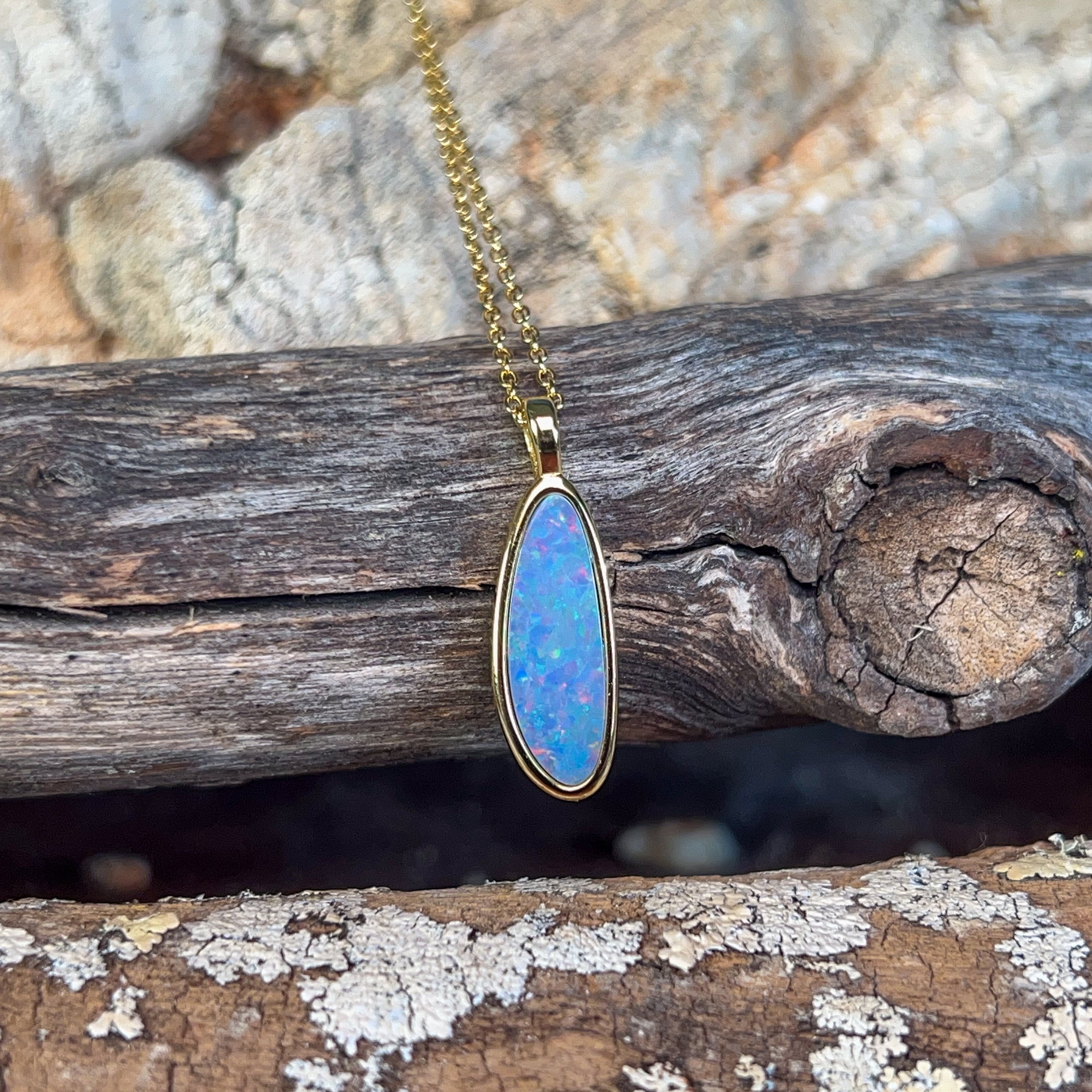 Gold Plated Silver Opal doublet 17x6mm pendant