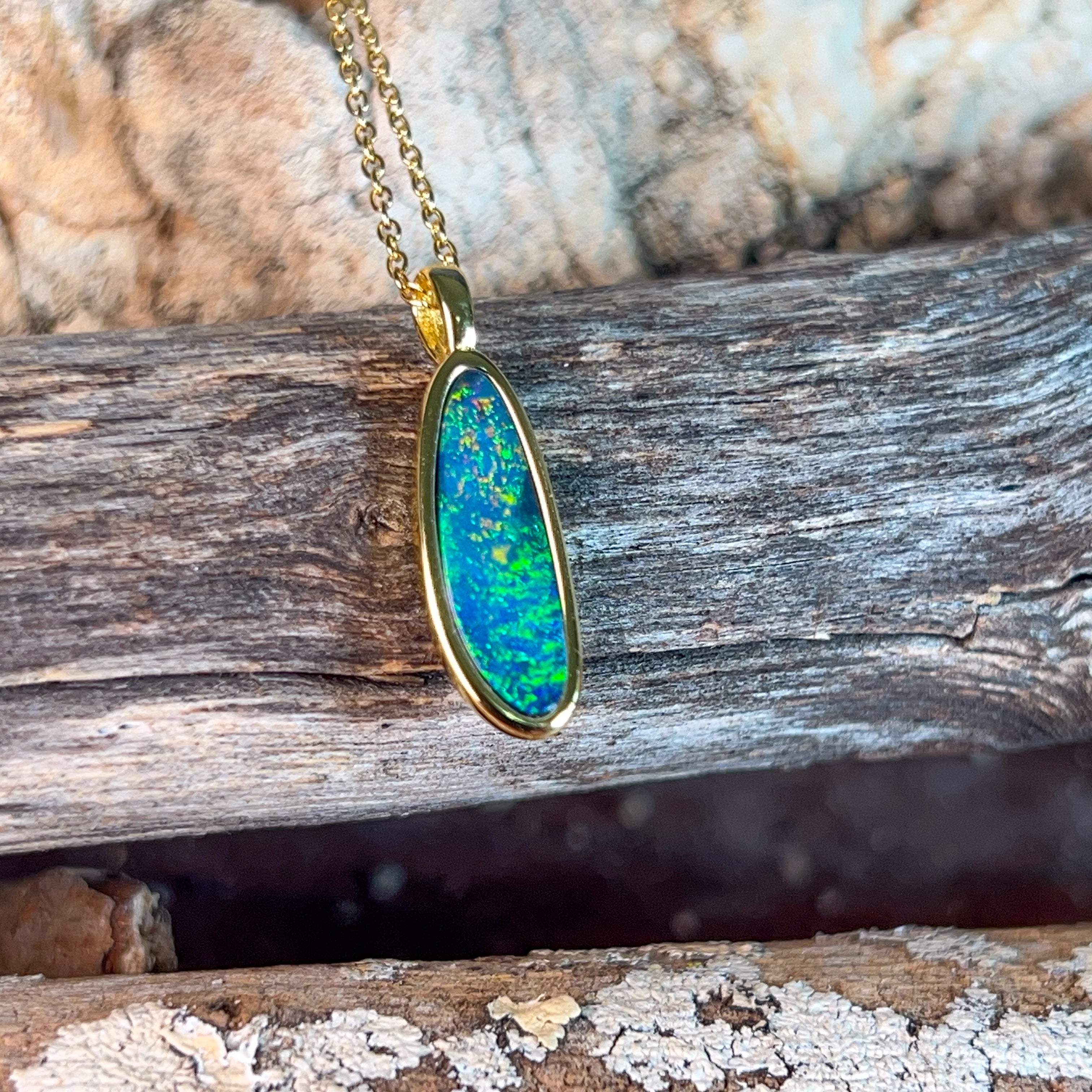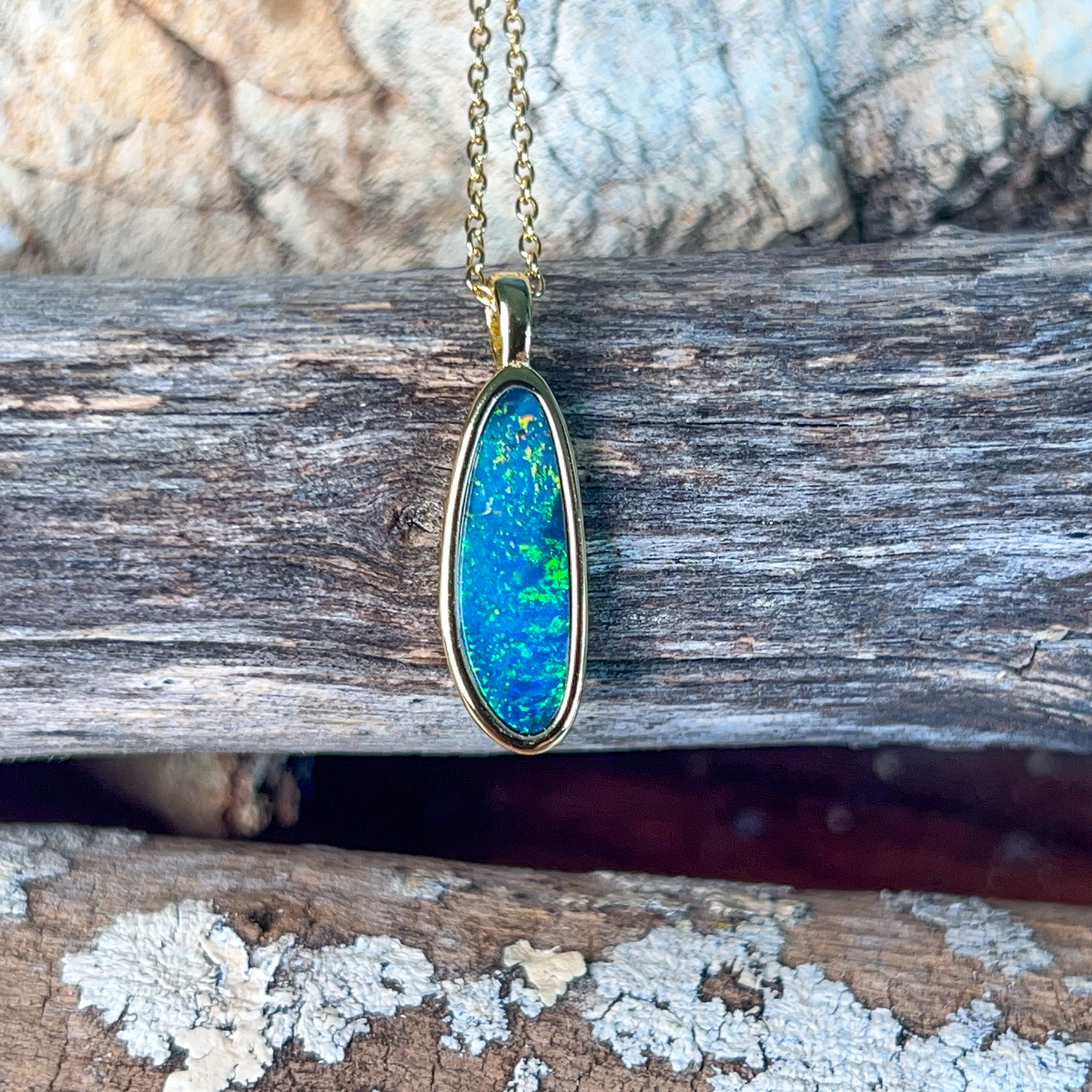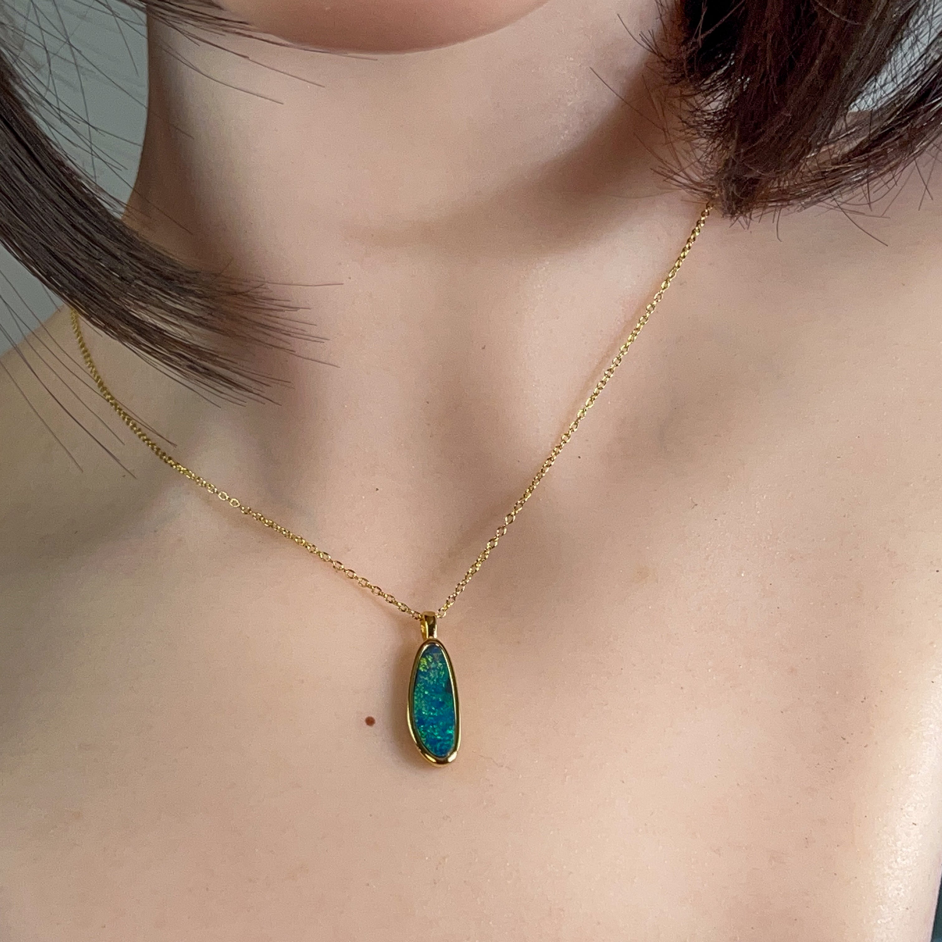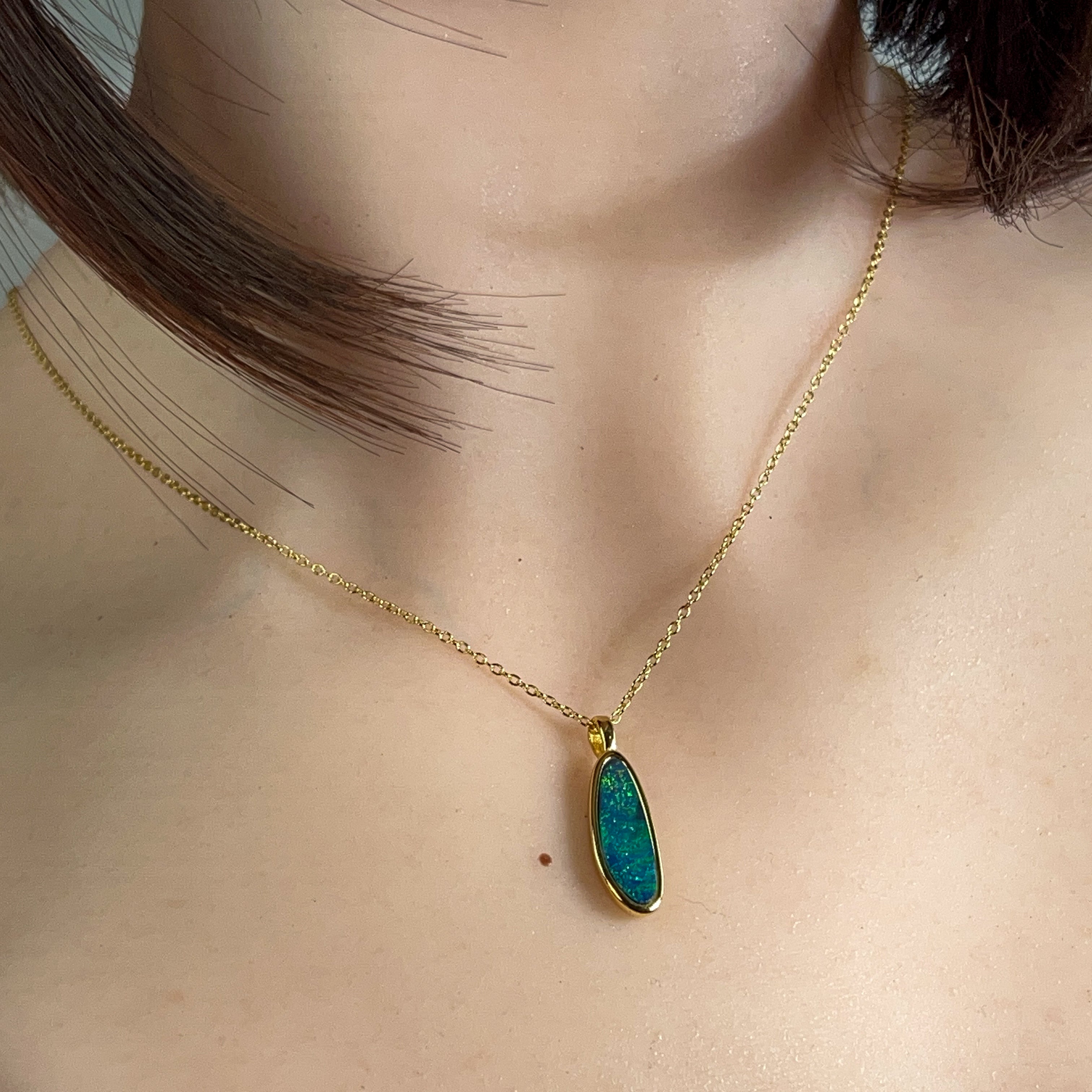 Gold plated silver opal doublet 18x8mm pendant
