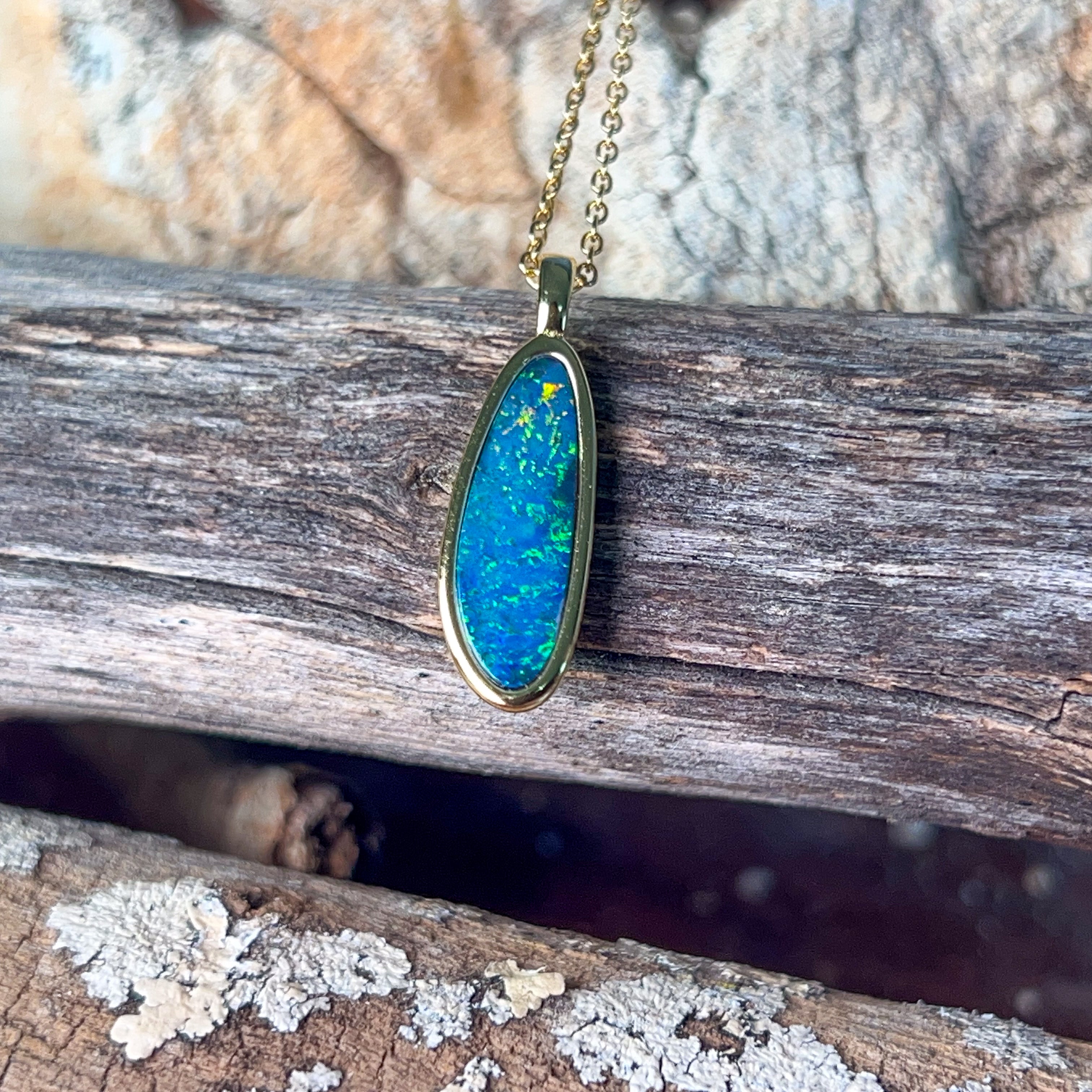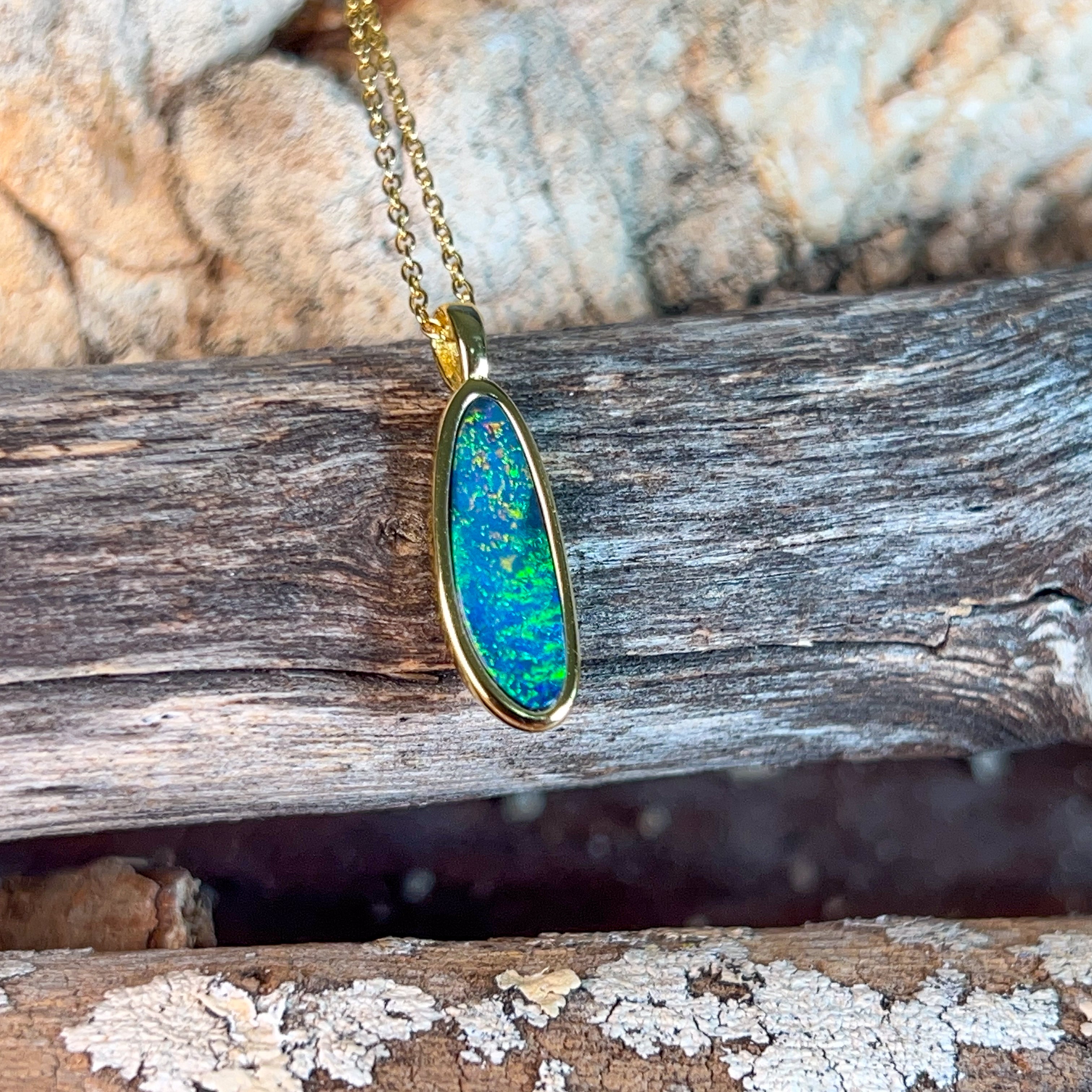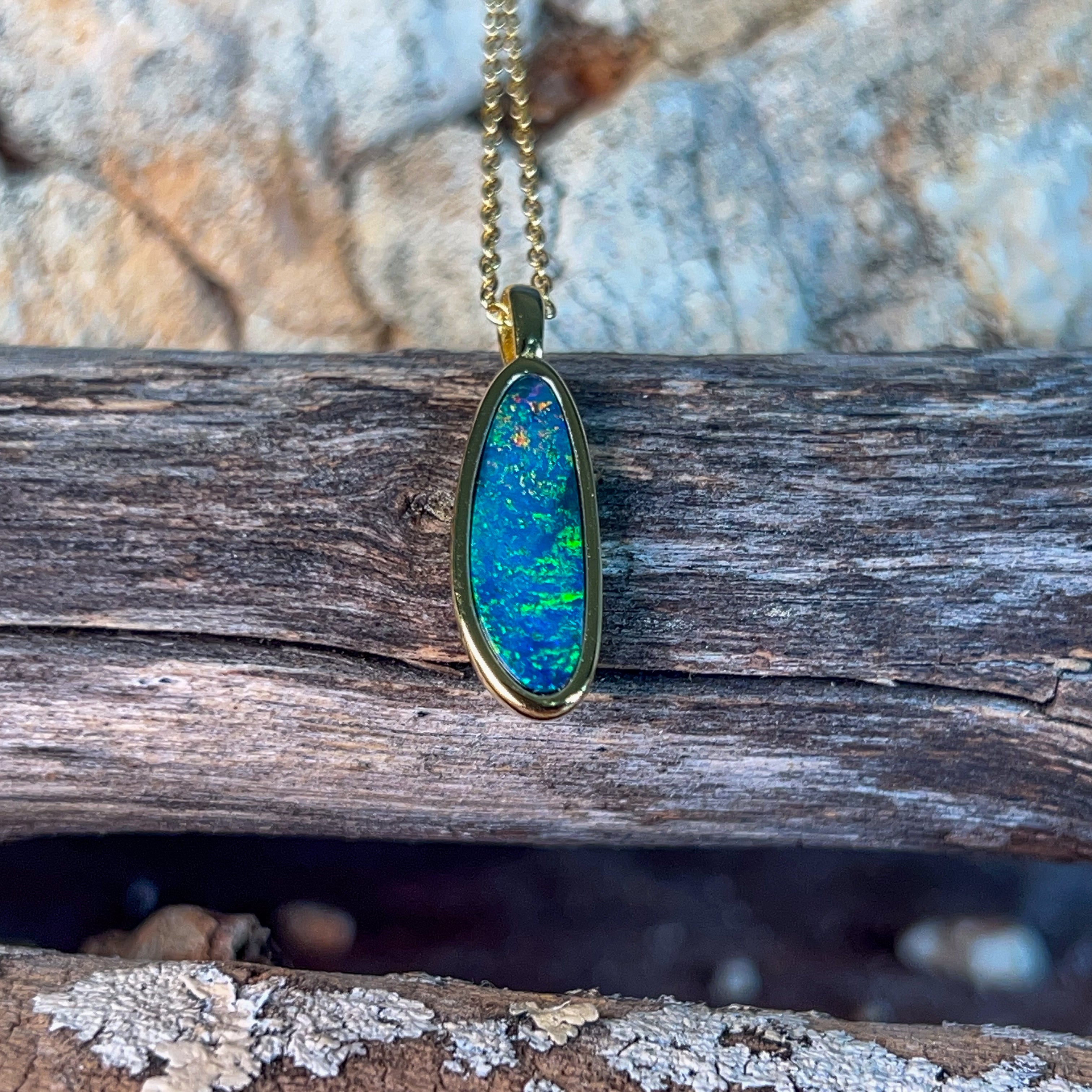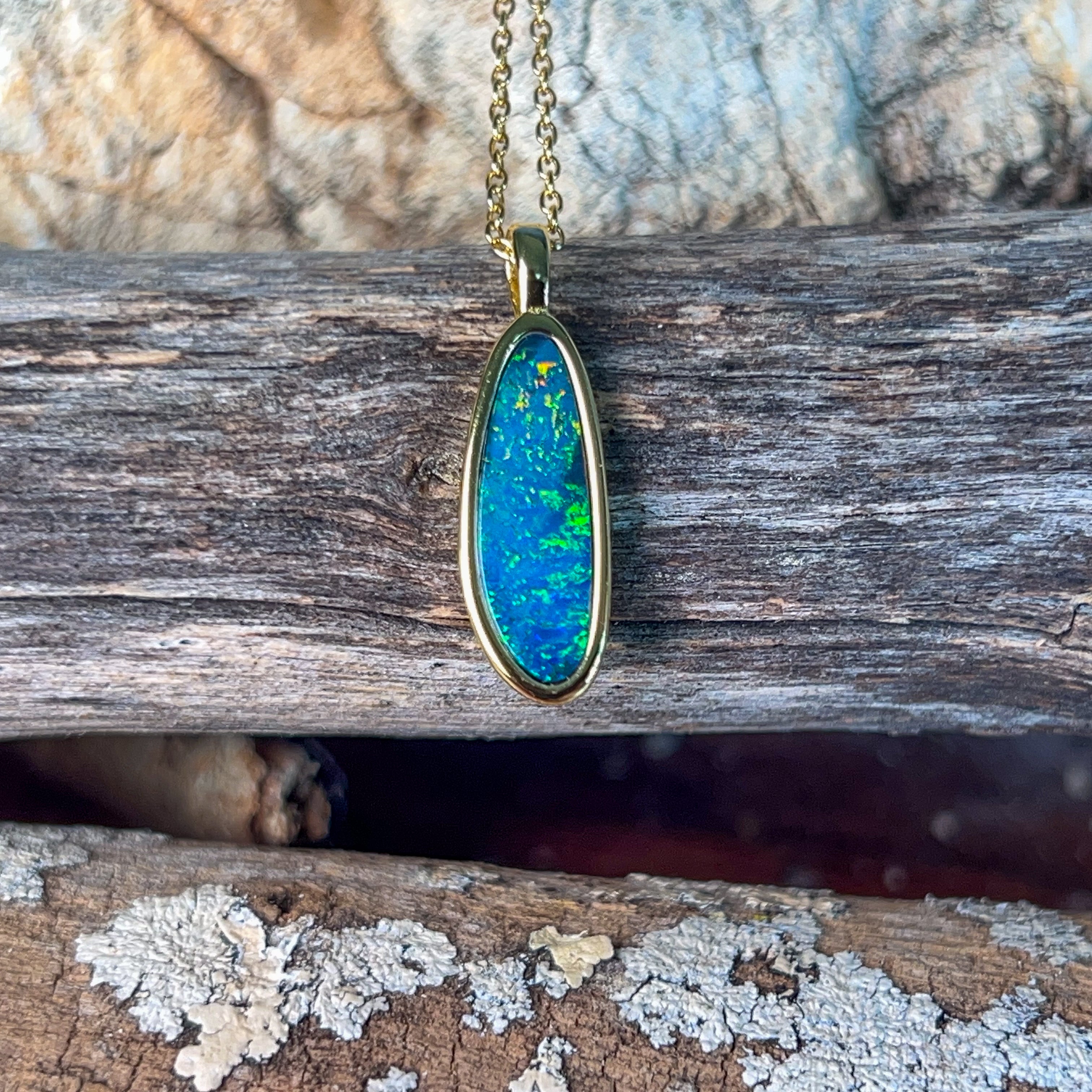 Gold plated silver opal doublet 18x8mm pendant