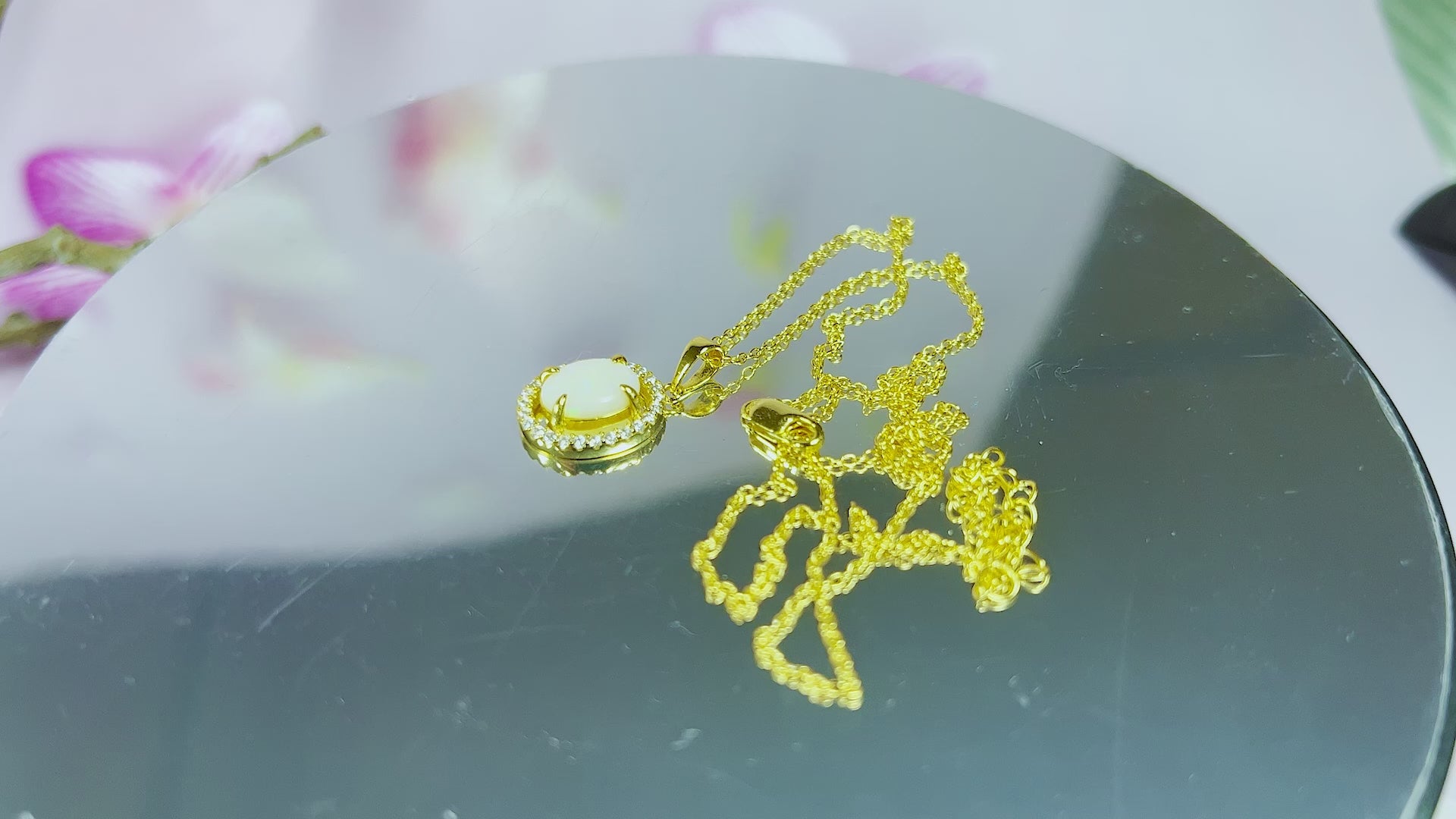 Gold plated Sterling Silver 9x7mm White Opal halo pendant
